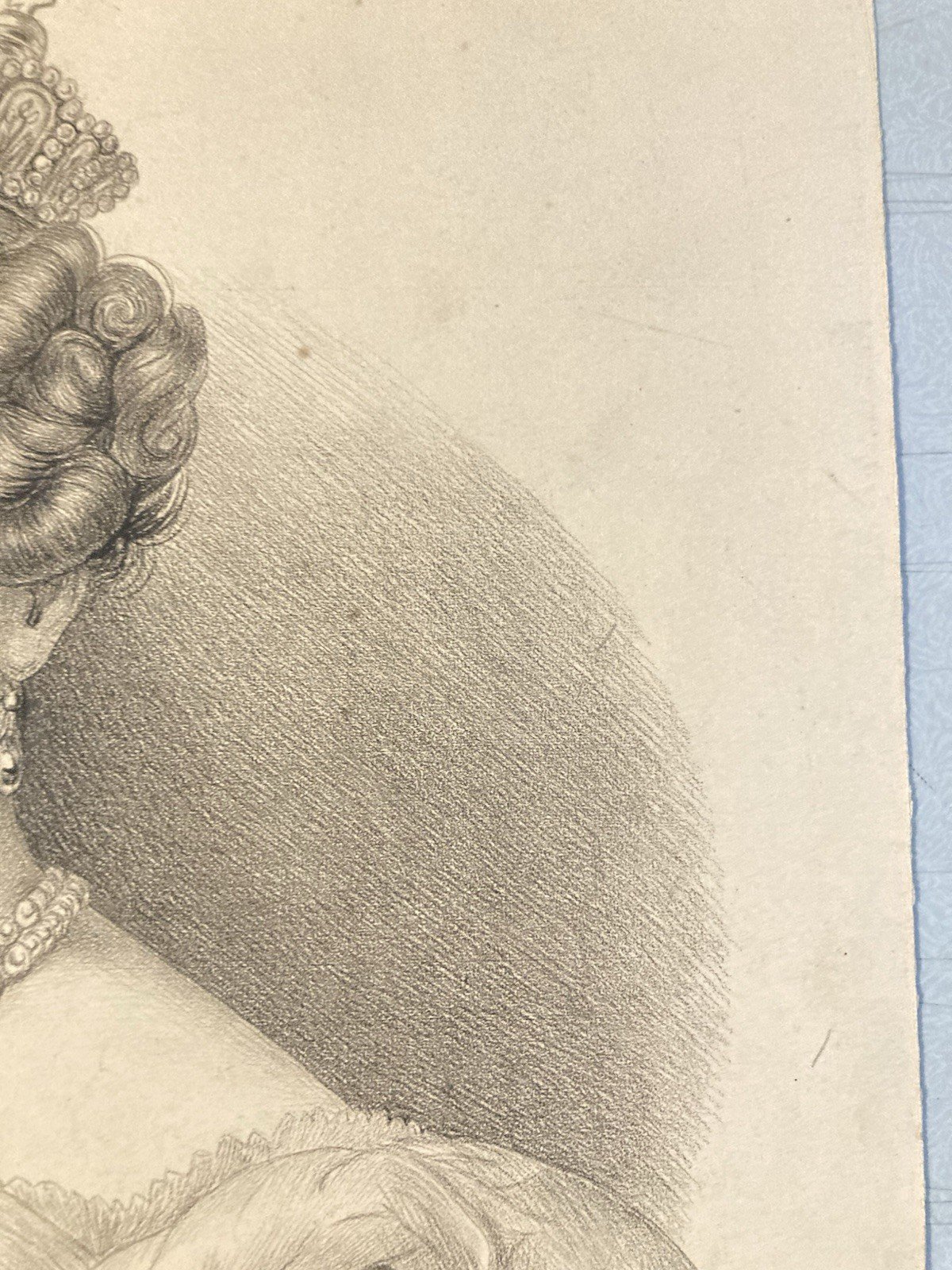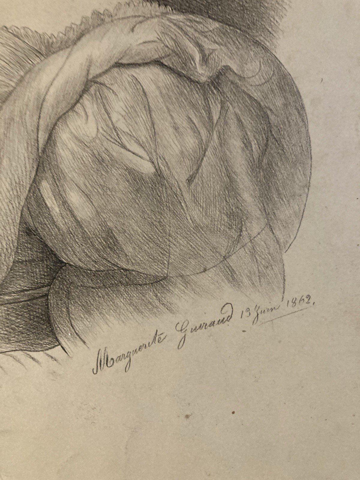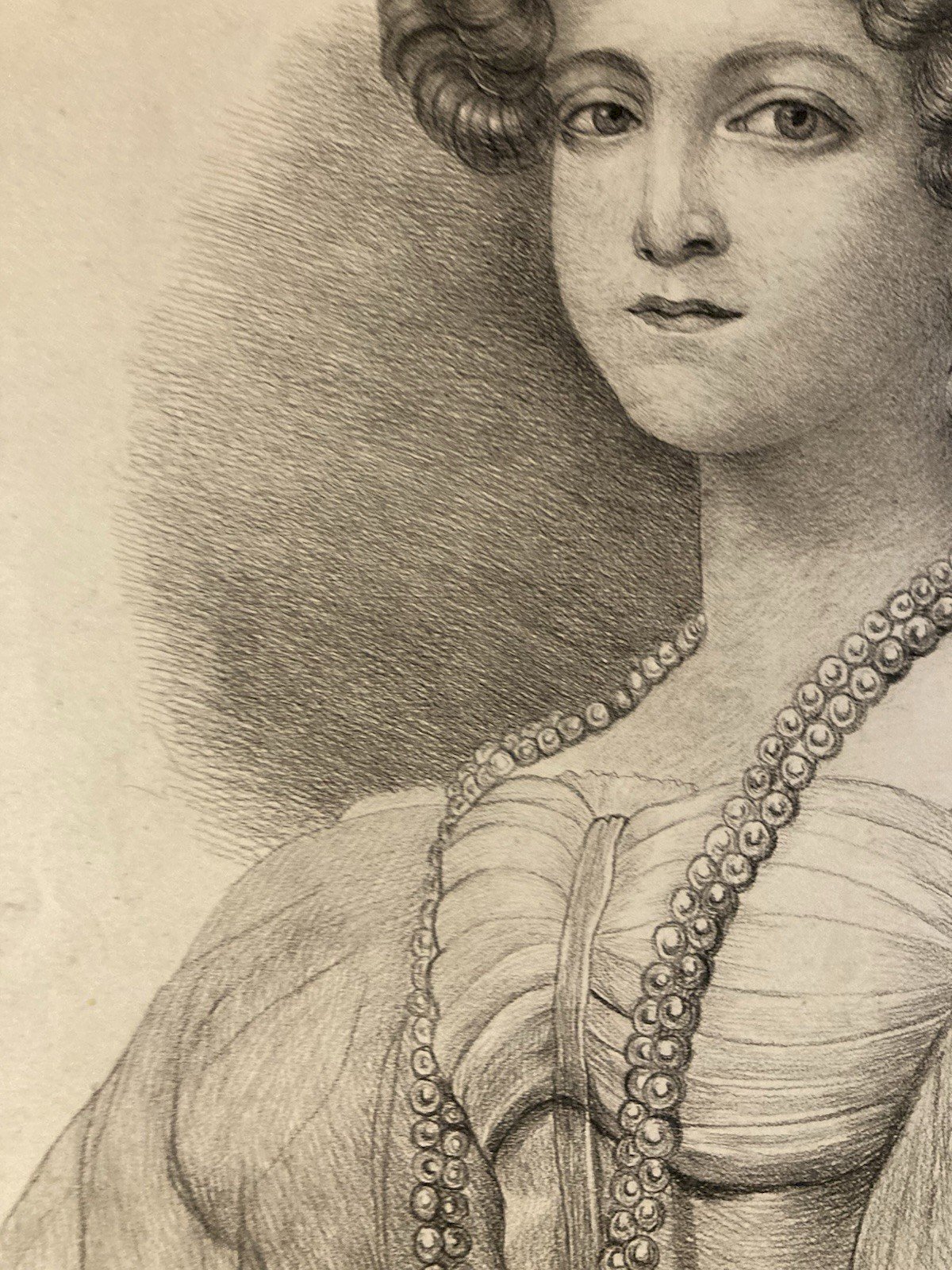 Dessin Crayon Portrait Tête Buste Femme 1862 A Identifier Art Ancien