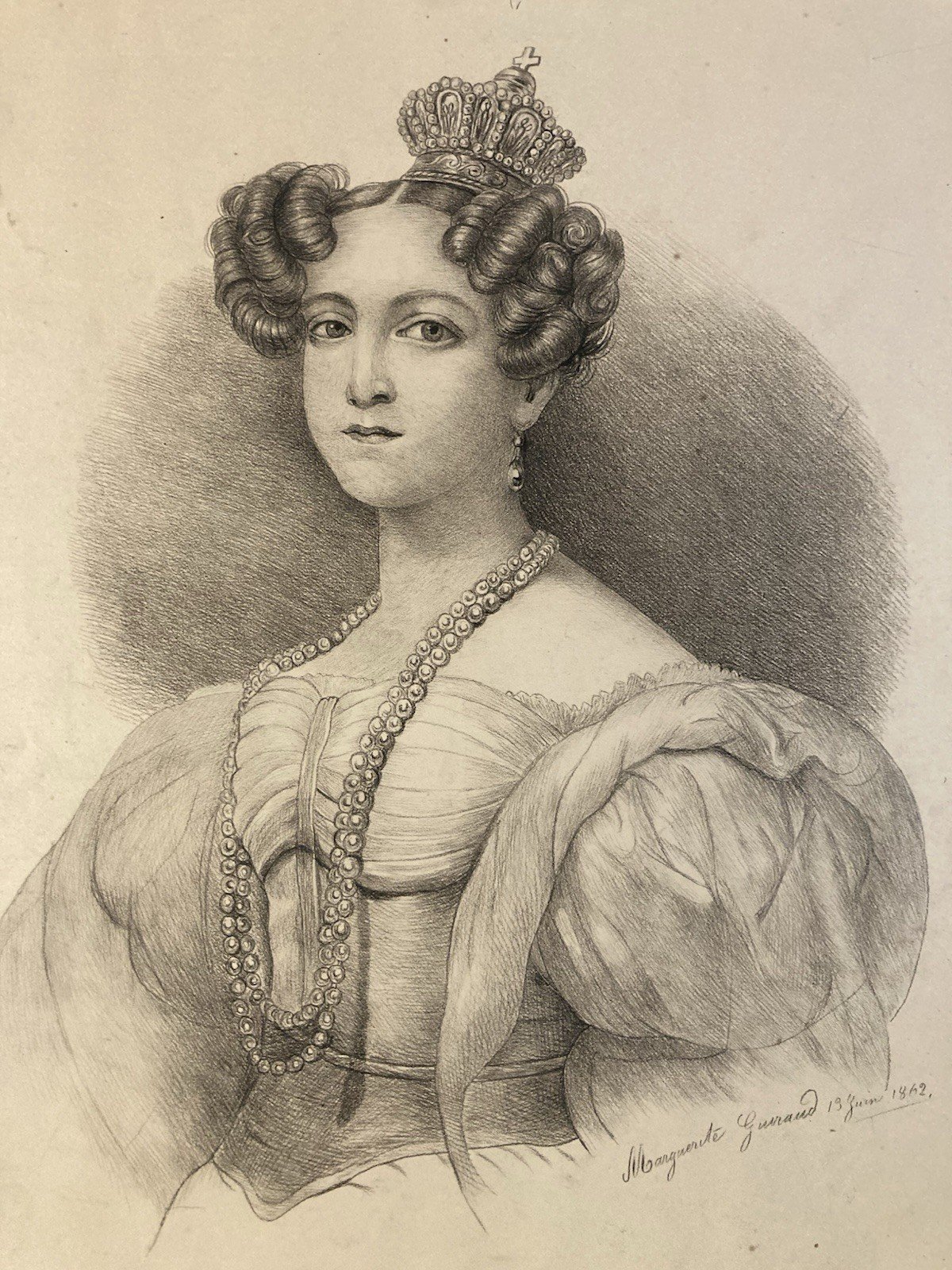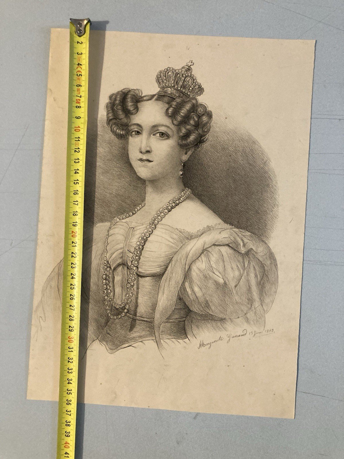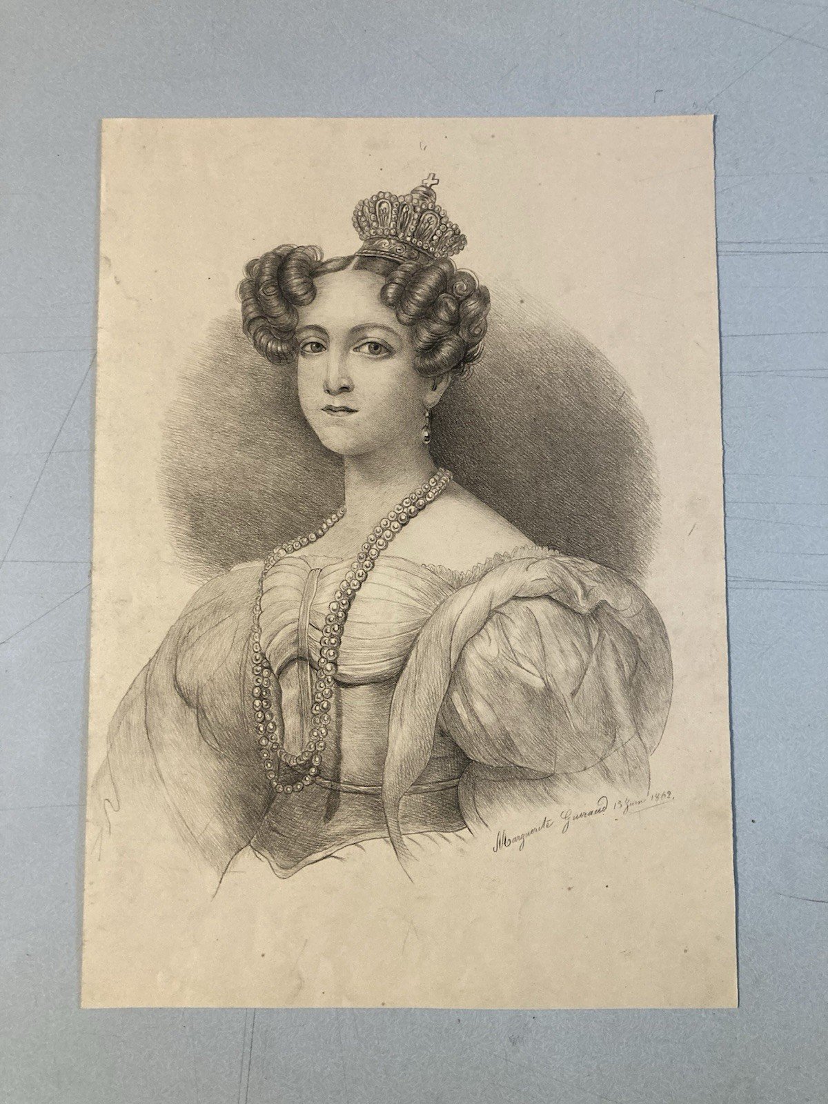 Dessin Crayon Portrait Tête Buste Femme 1862 A Identifier Art Ancien