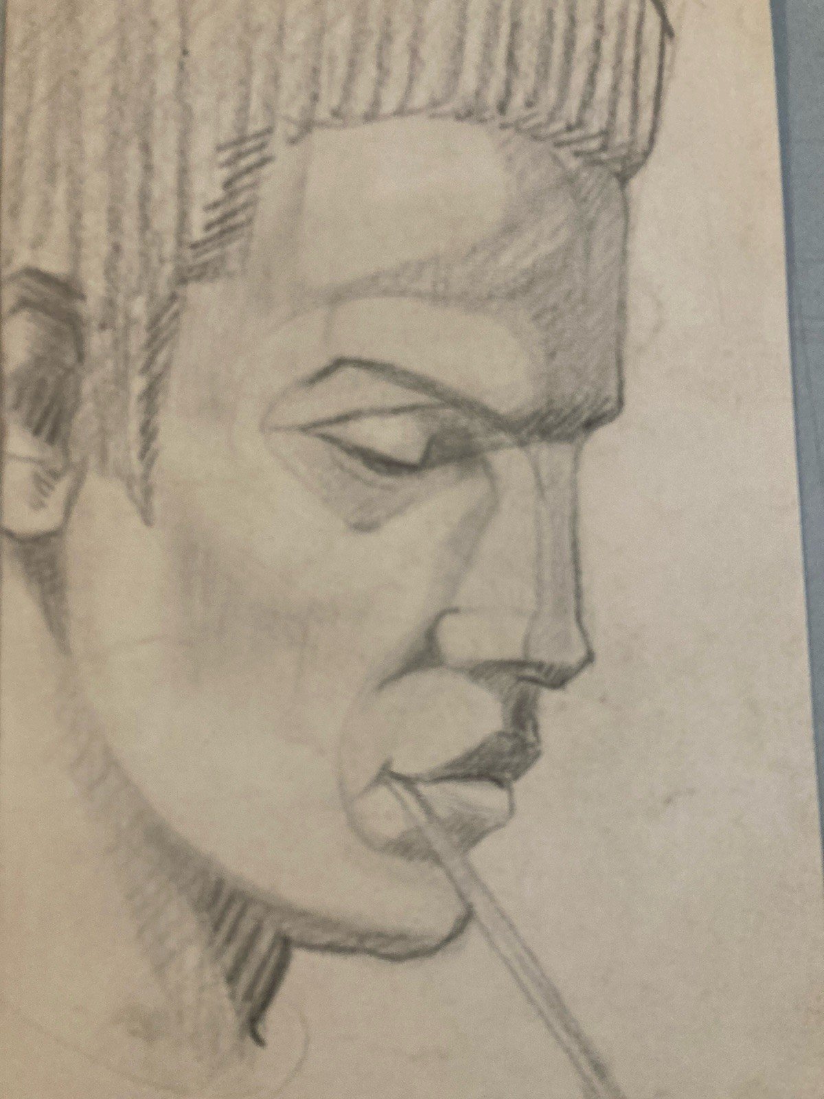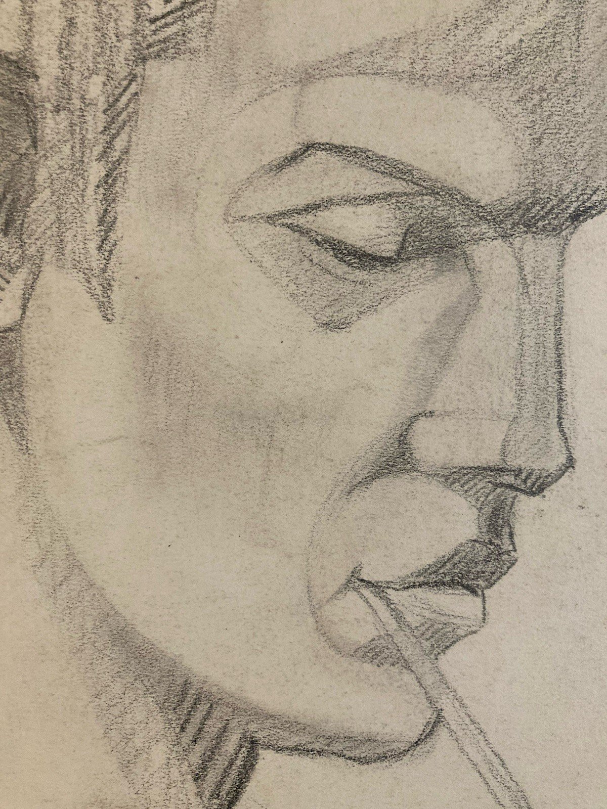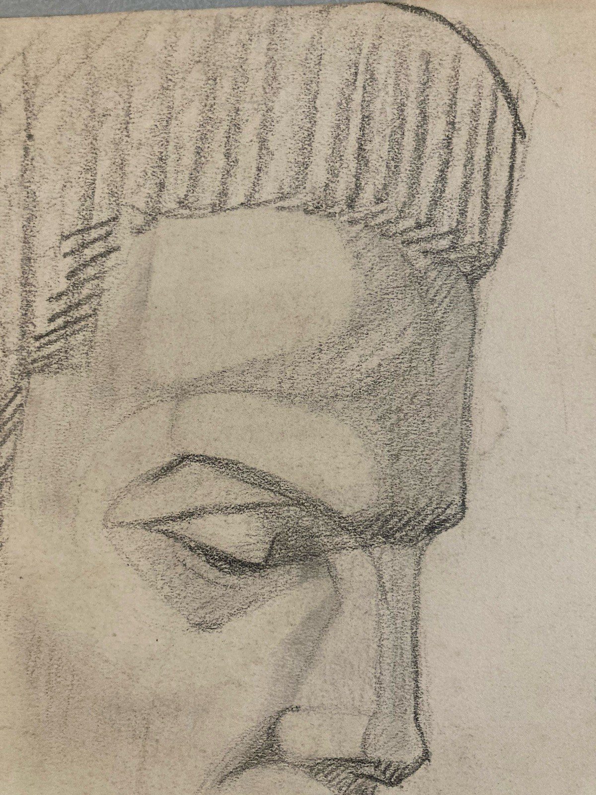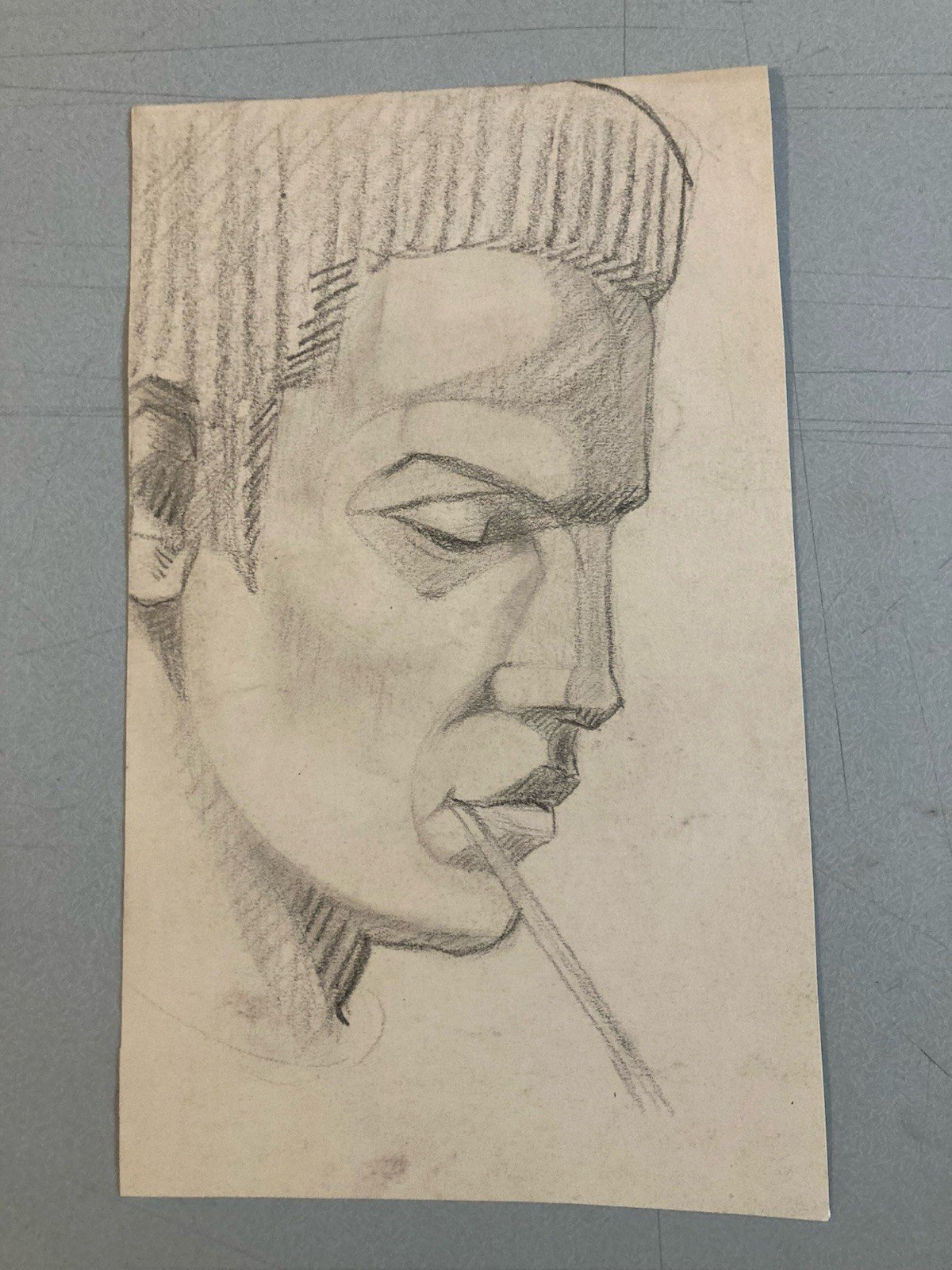 Dessin Crayon Portrait Tête Cubisme 1950 A Identifier Art Cubiste Ancien