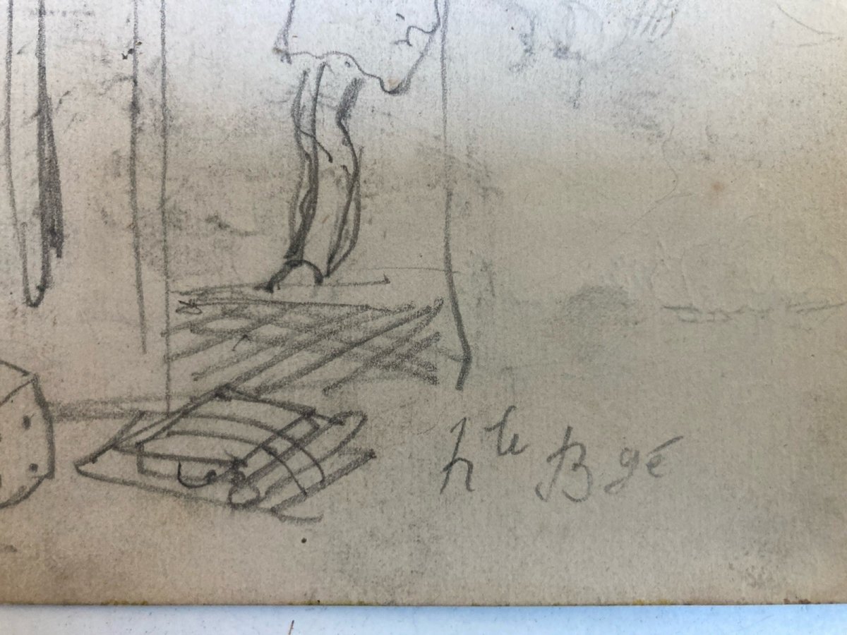Dessin Crayon Sur Papier XIXe Hippolyte BELLANGÉ Homme Train Wagon Ancien