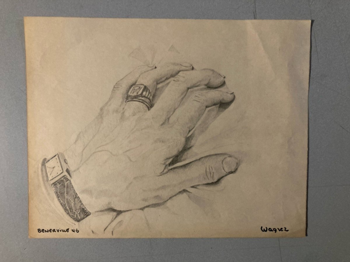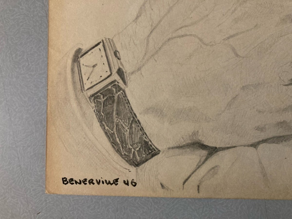 Dessin Curiosa anatomie main crayon Montre 1950 Curiosité Corps Art Ancien