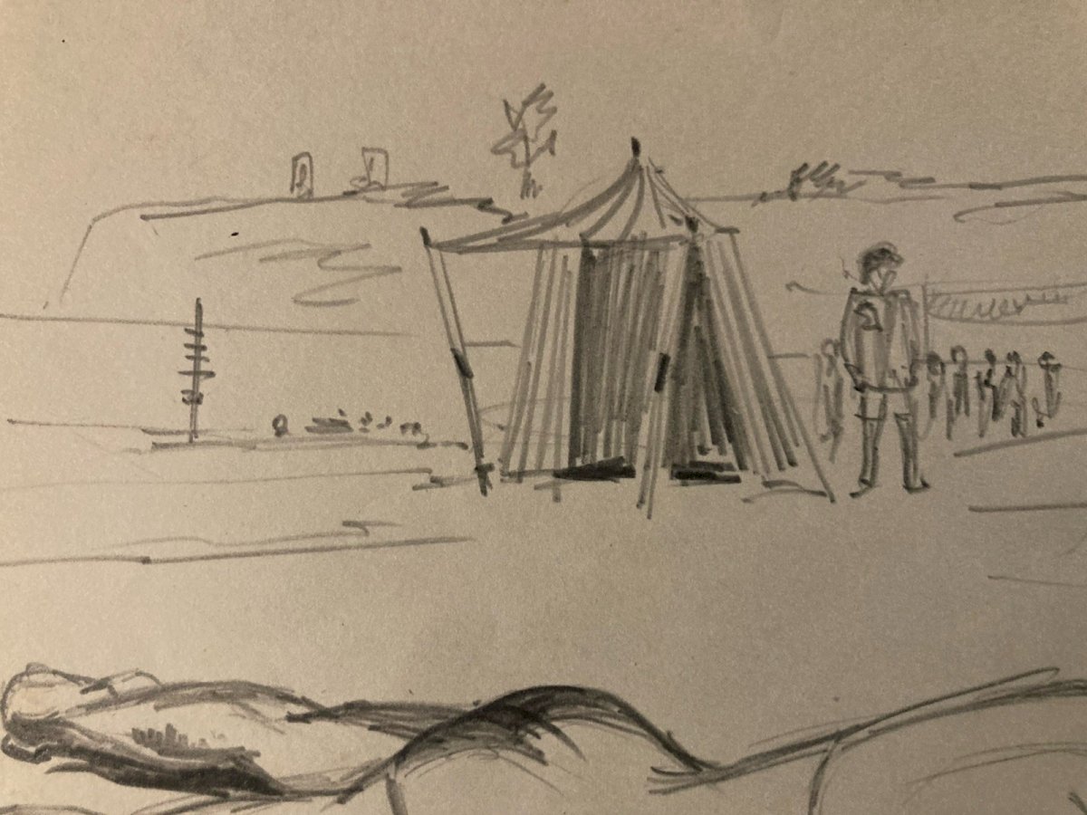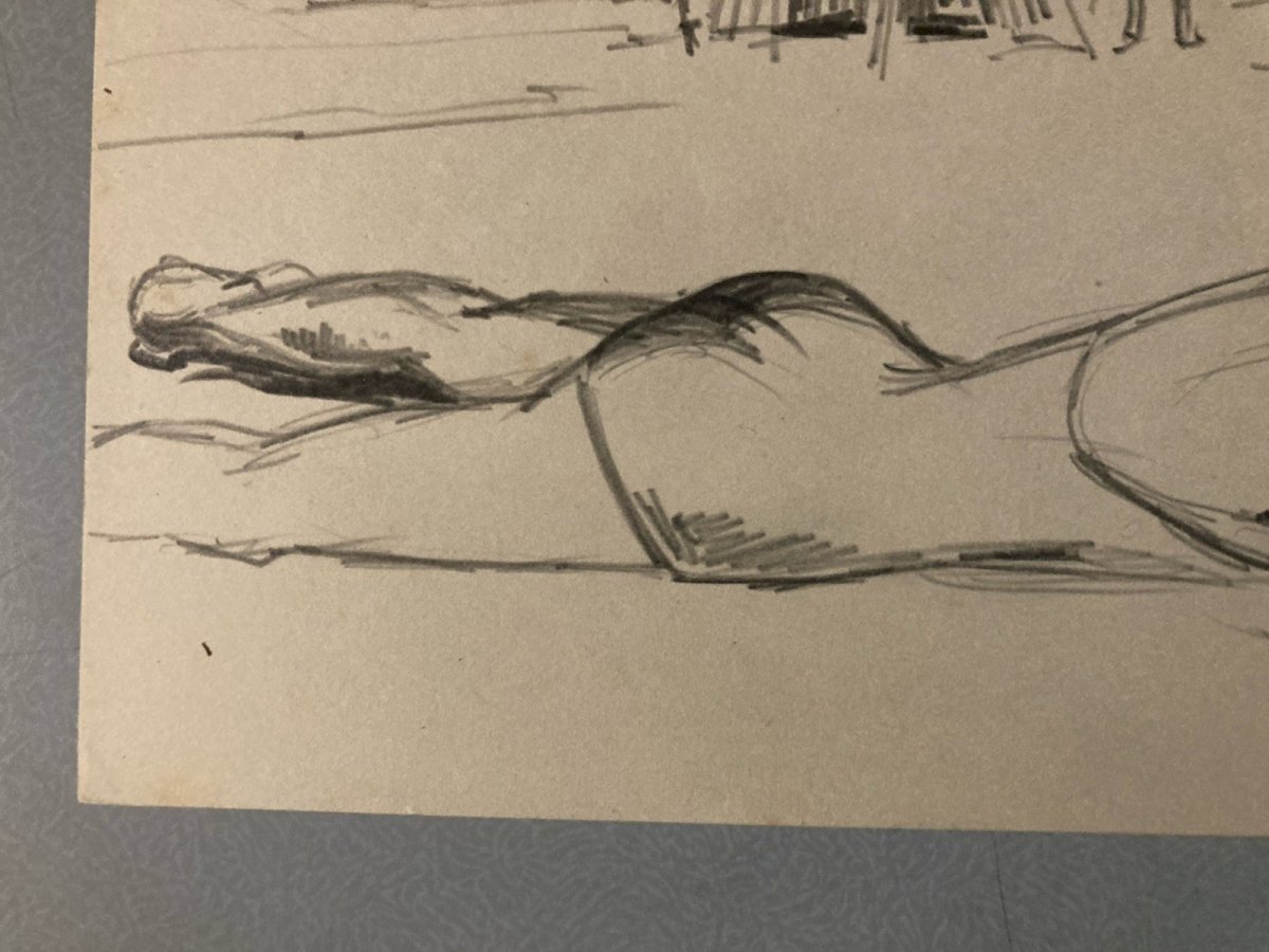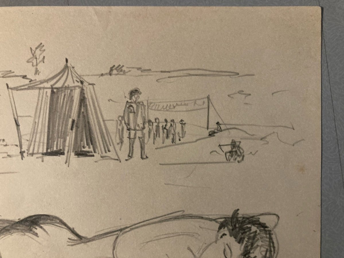 Dessin Encre 1943 Plage Mer Papier Personnage Grotesque A Identifier