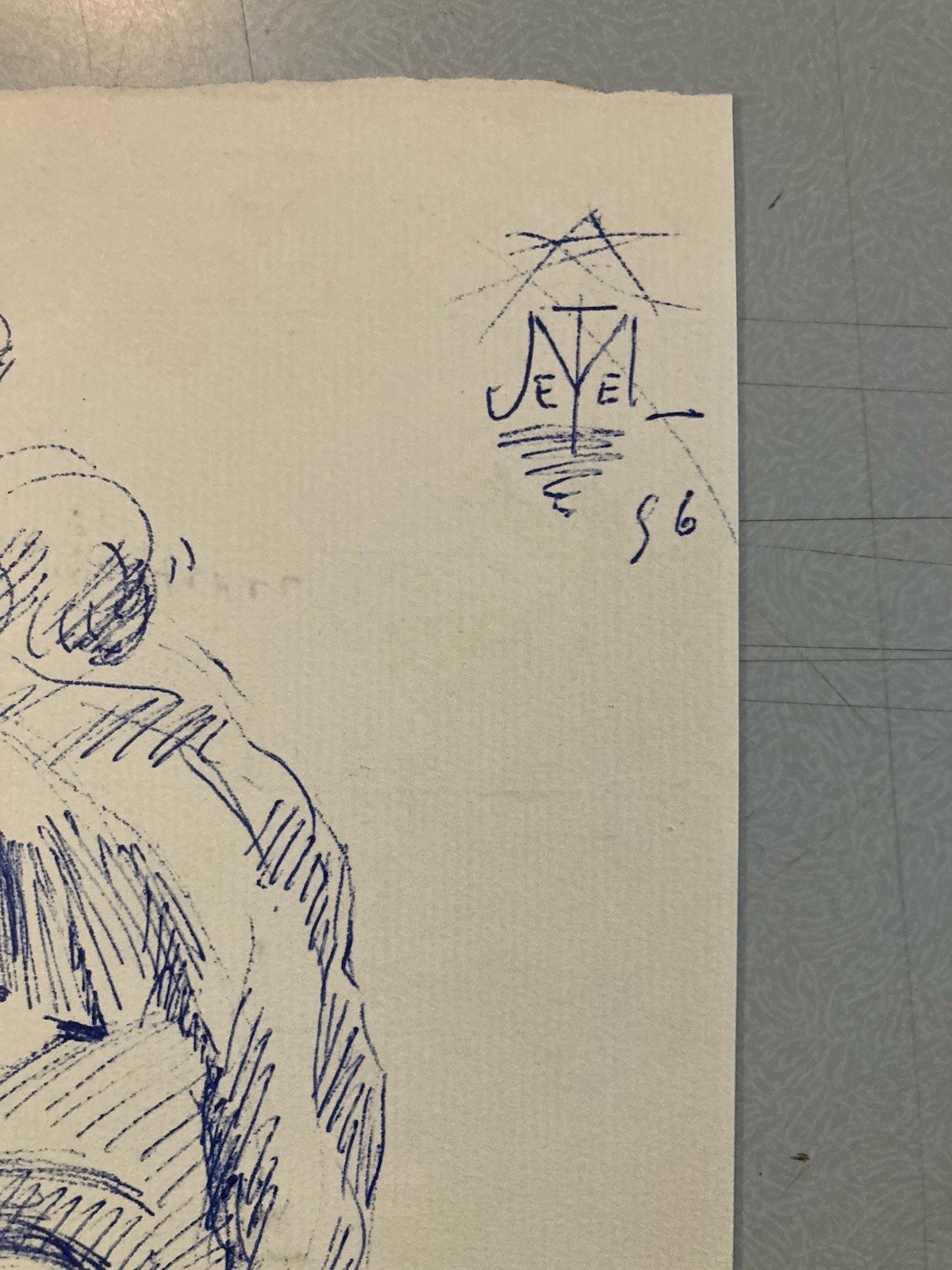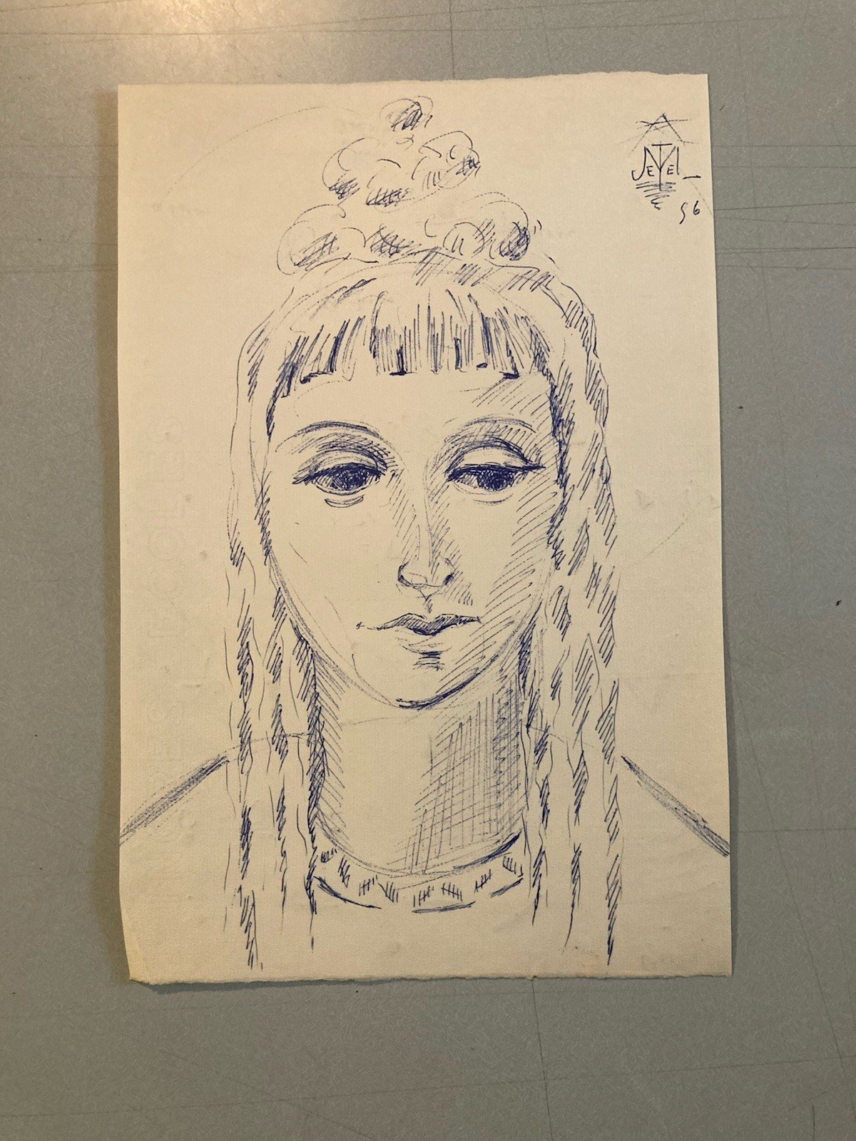 dessin Encre Papier Jeune Fille Femme Portrait Buste Ancien 1956 A Identifier