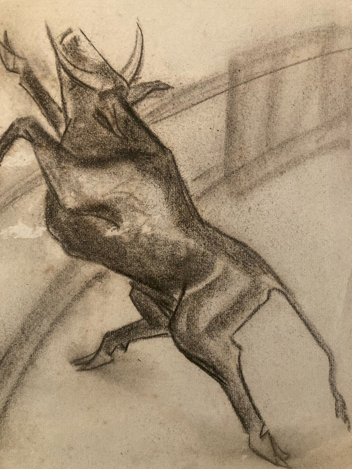 Dessin Fusain noir Vache art Corrida Tauromachie 1960 Animal Taureau Drawing Old
