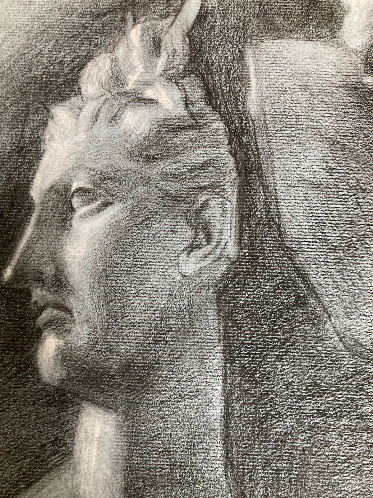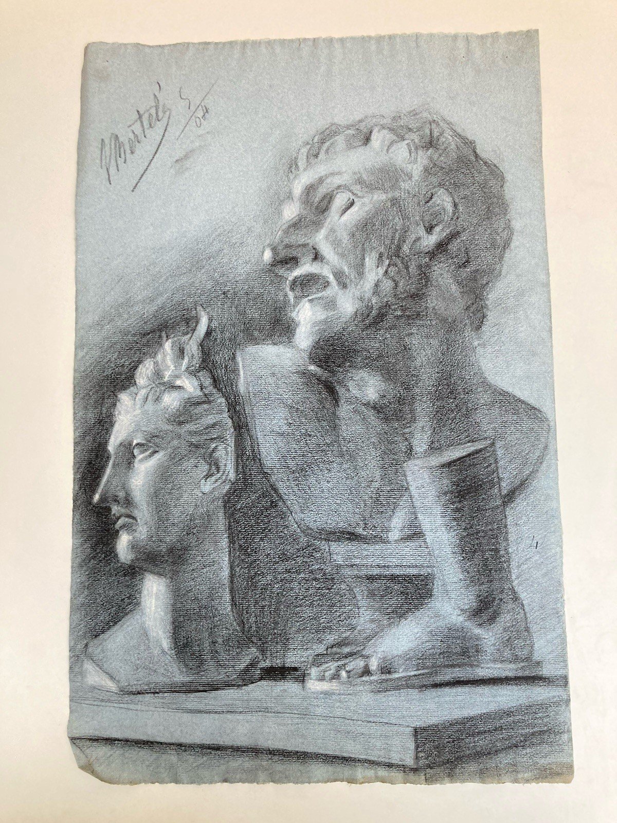 dessin fusain XIXe Pied tete buste Homme Sculpture a identifier Ancien