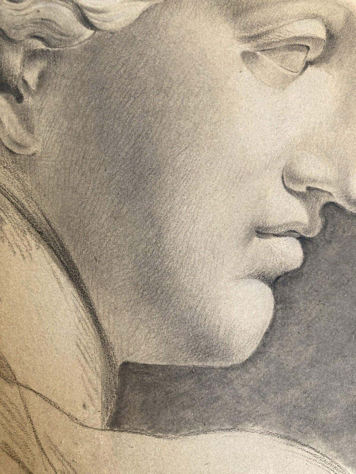 dessin fusain XIXe tete buste Femme Sculpture a identifier Ancien Tête