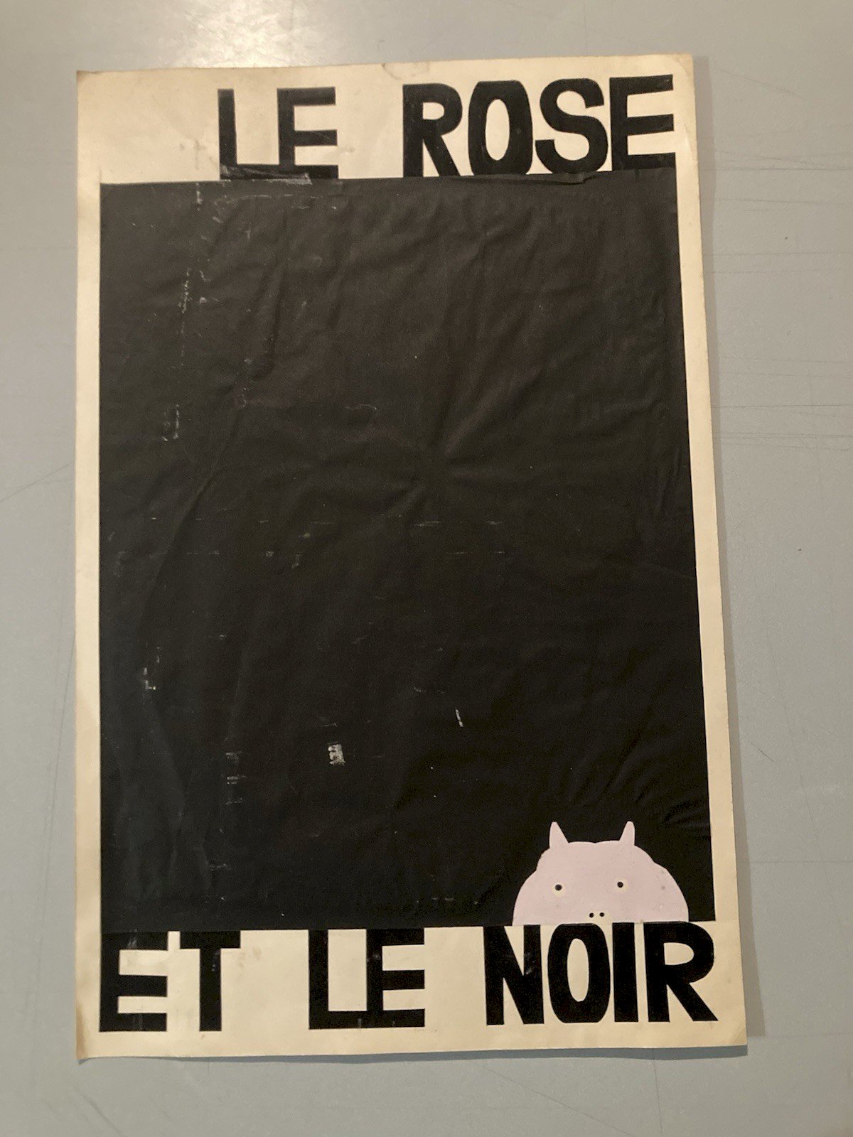Dessin Gouache Cochon Noir Et Rose Projet Publicité 1970 Publicitaire Art