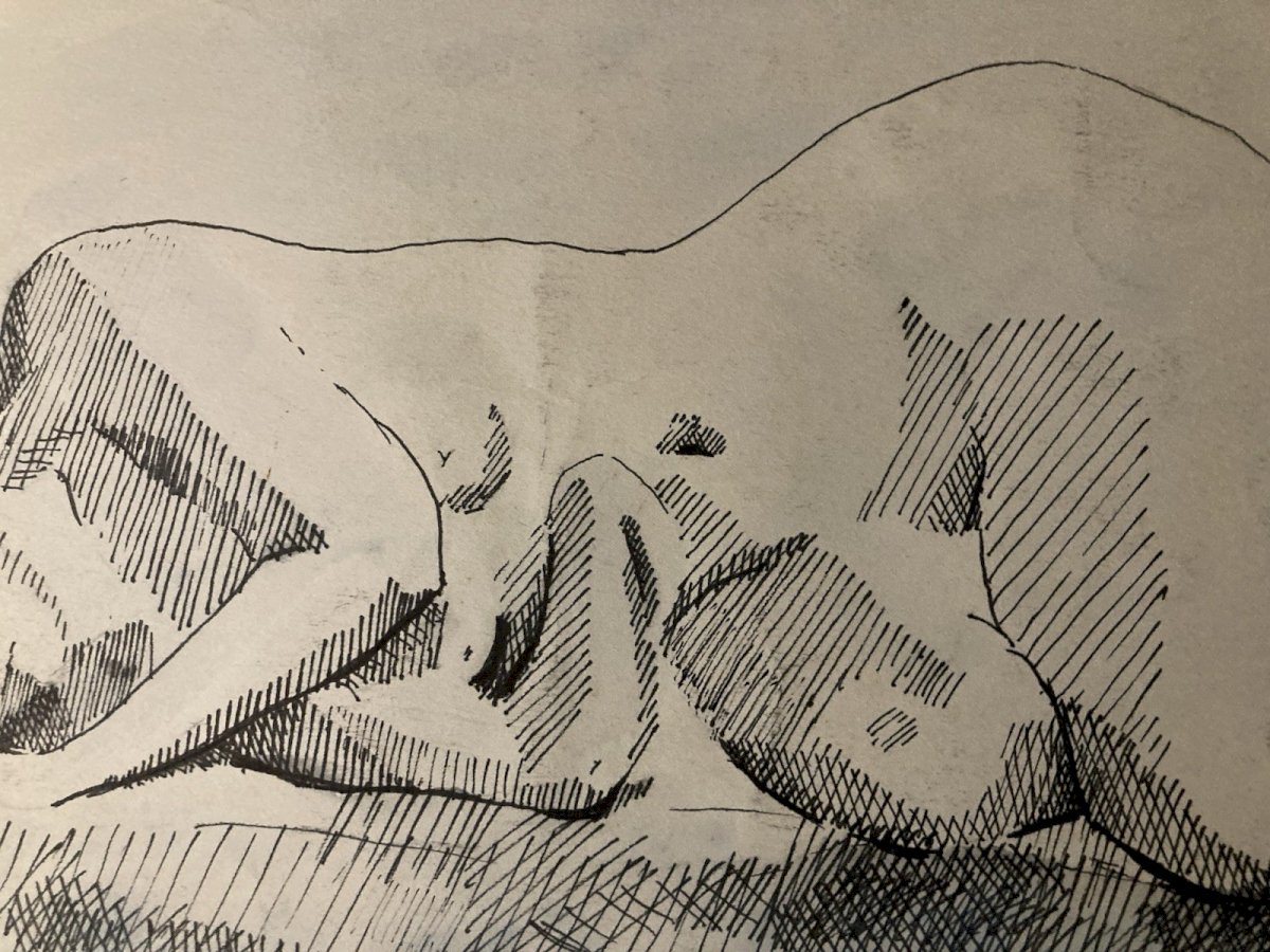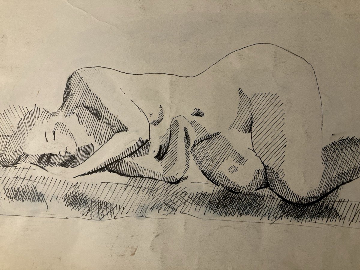 Dessin Lavis Encre Femme Nue Couchée Dos Nu Erotique 1970 A Identifier