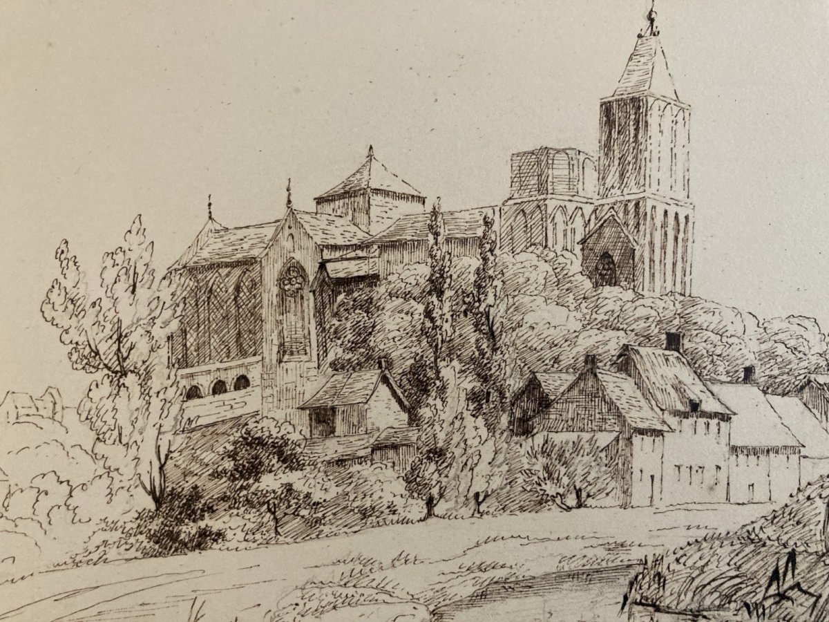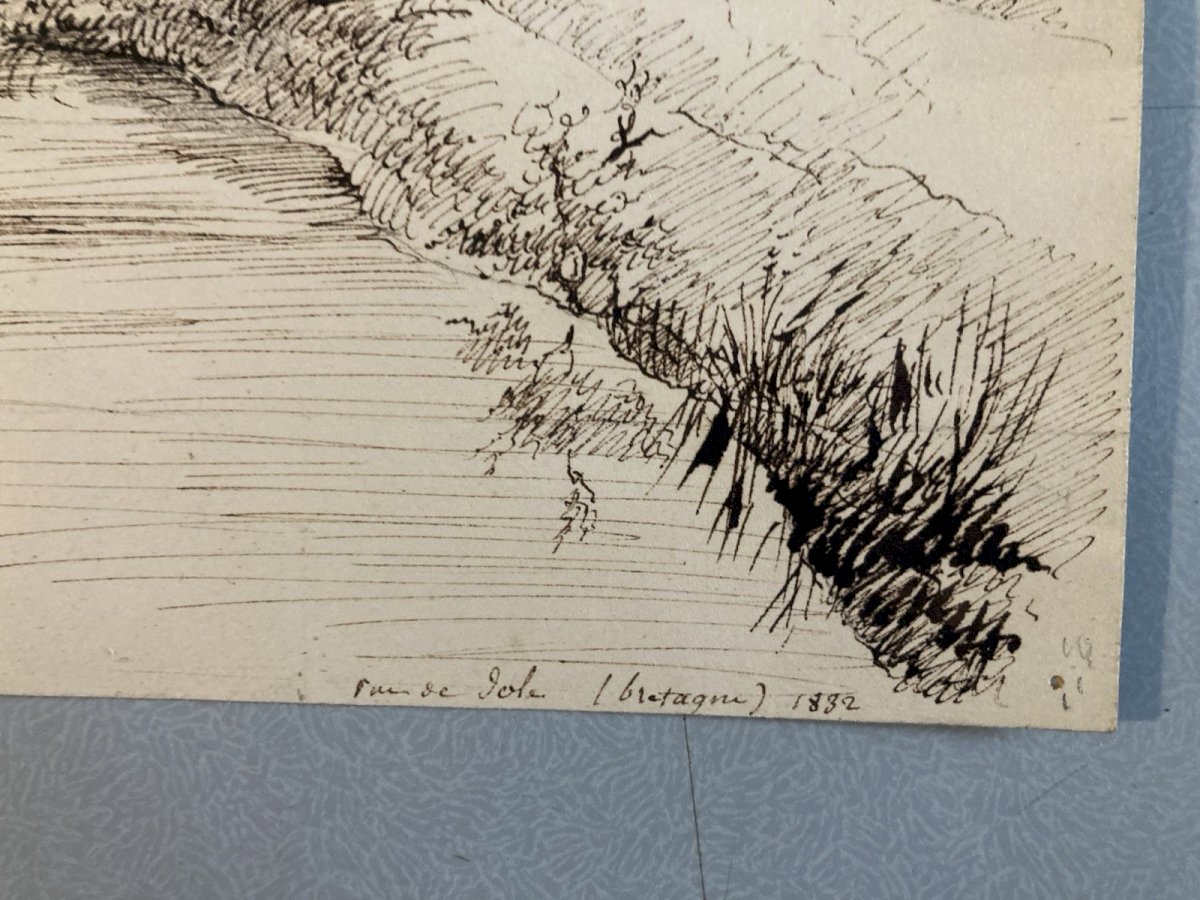 Dessin Lavis Encre Paysage 1832 Cathédrale Dole De Bretagne XIXe Art