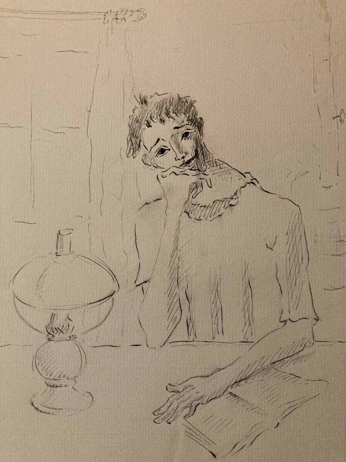 Dessin Lavis Encre Portrait Lecture Expressionniste 1950 A Identifier
