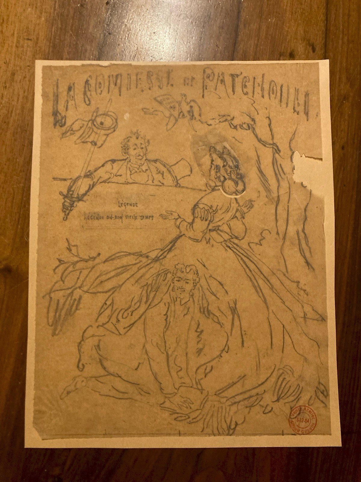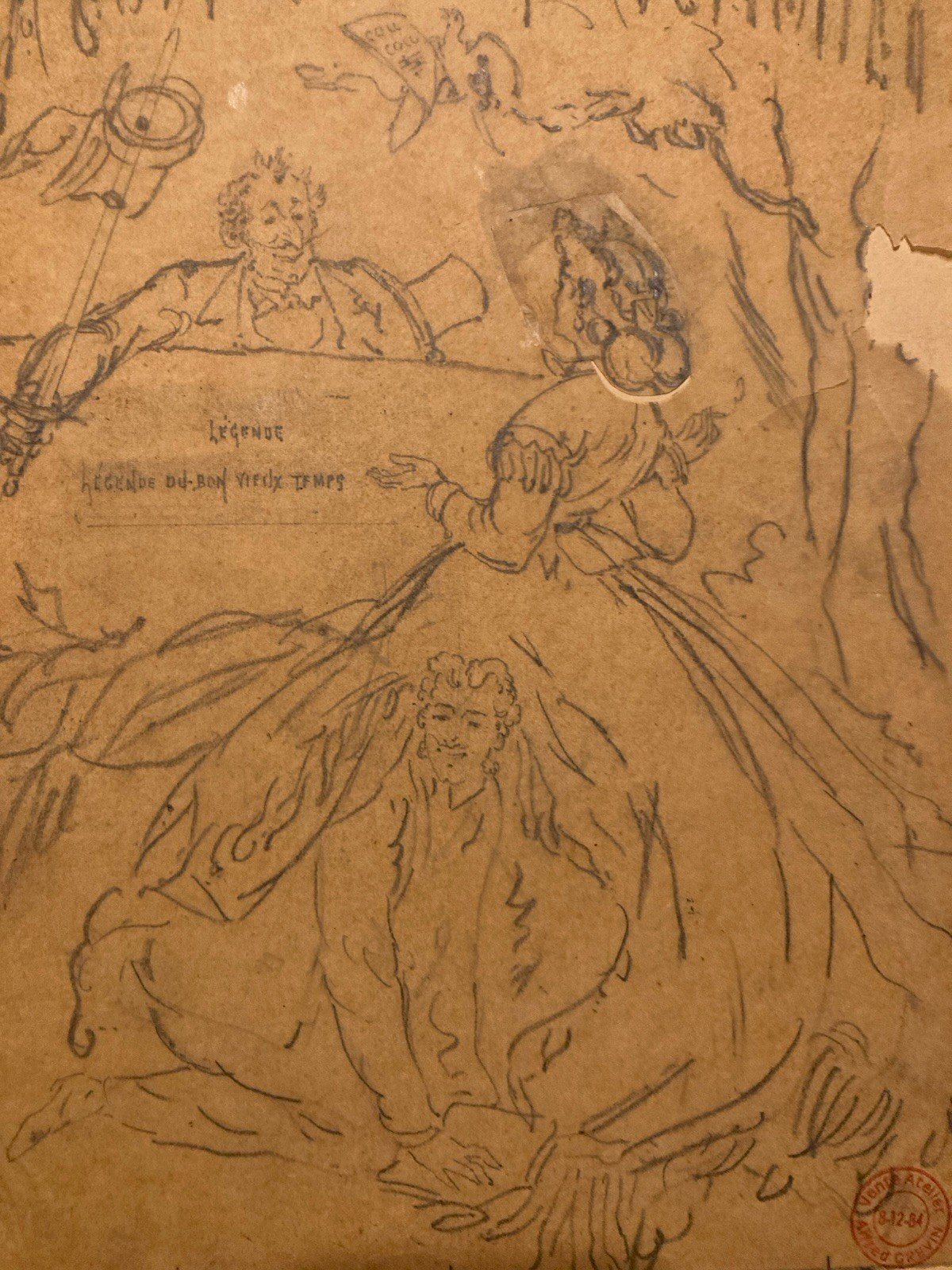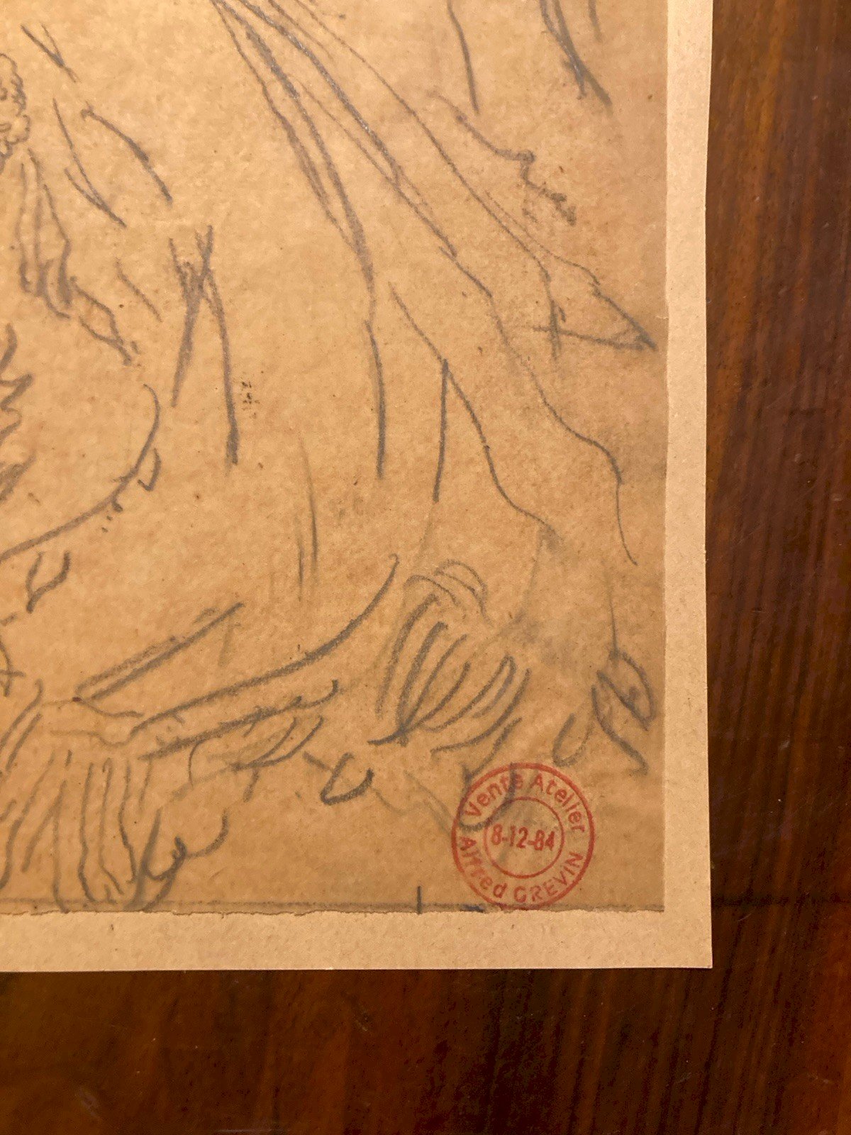 DESSIN ORIGINAL Alfred Grevin 1850 Étude Contesse Crayon Papier Art Ancien