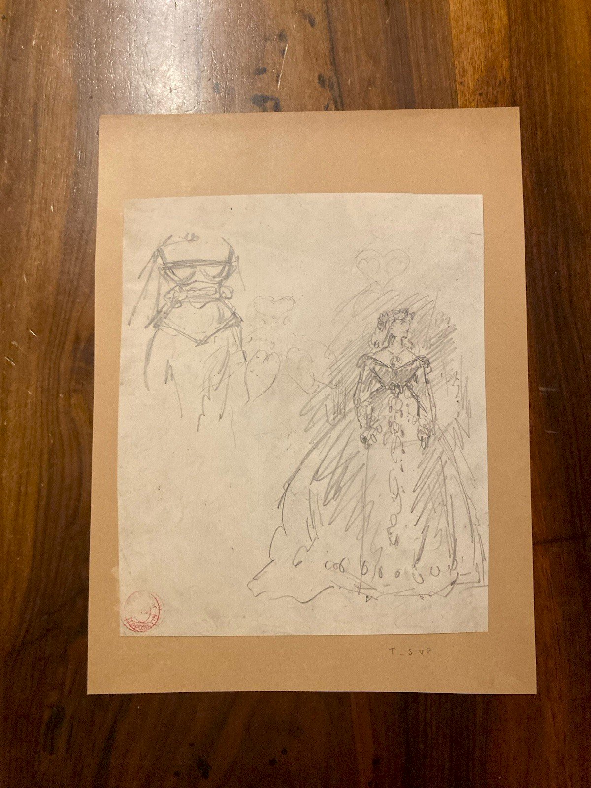 DESSIN ORIGINAL Alfred Grevin 1850 Étude Costume Crayon Papier Art Ancien