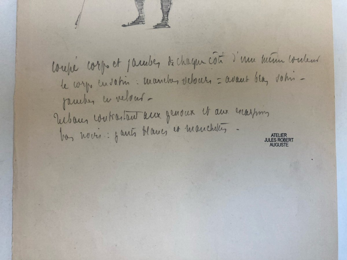 Dessin Original Crayon 1830 XIXe Jules Robert Auguste Étude Jeu Carte Art