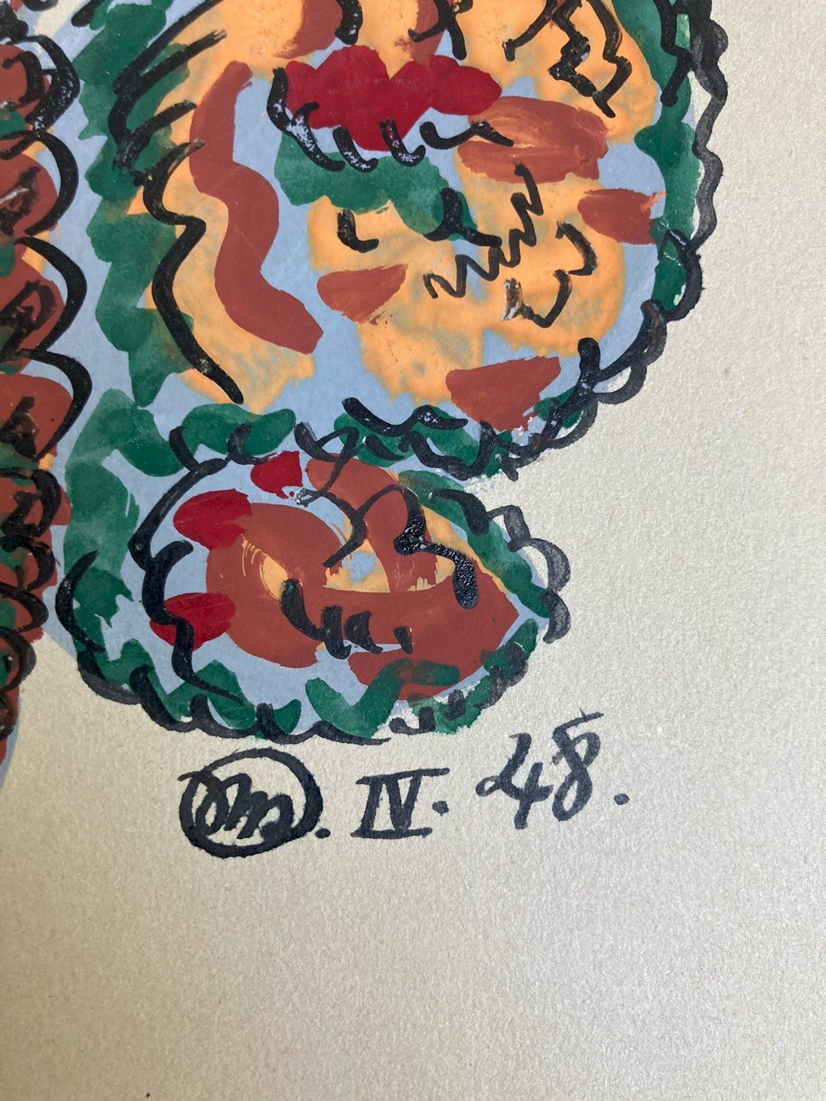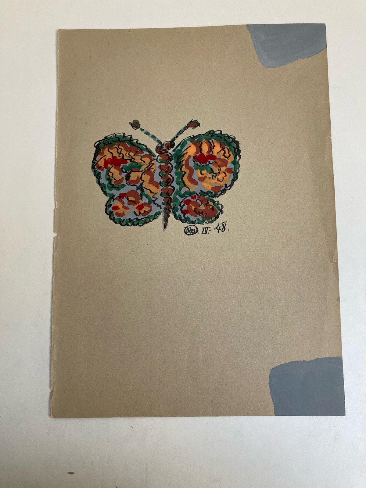 Dessin Papillon Gouache Peinture 1950 Papier Expressionniste Expressionnisme Art