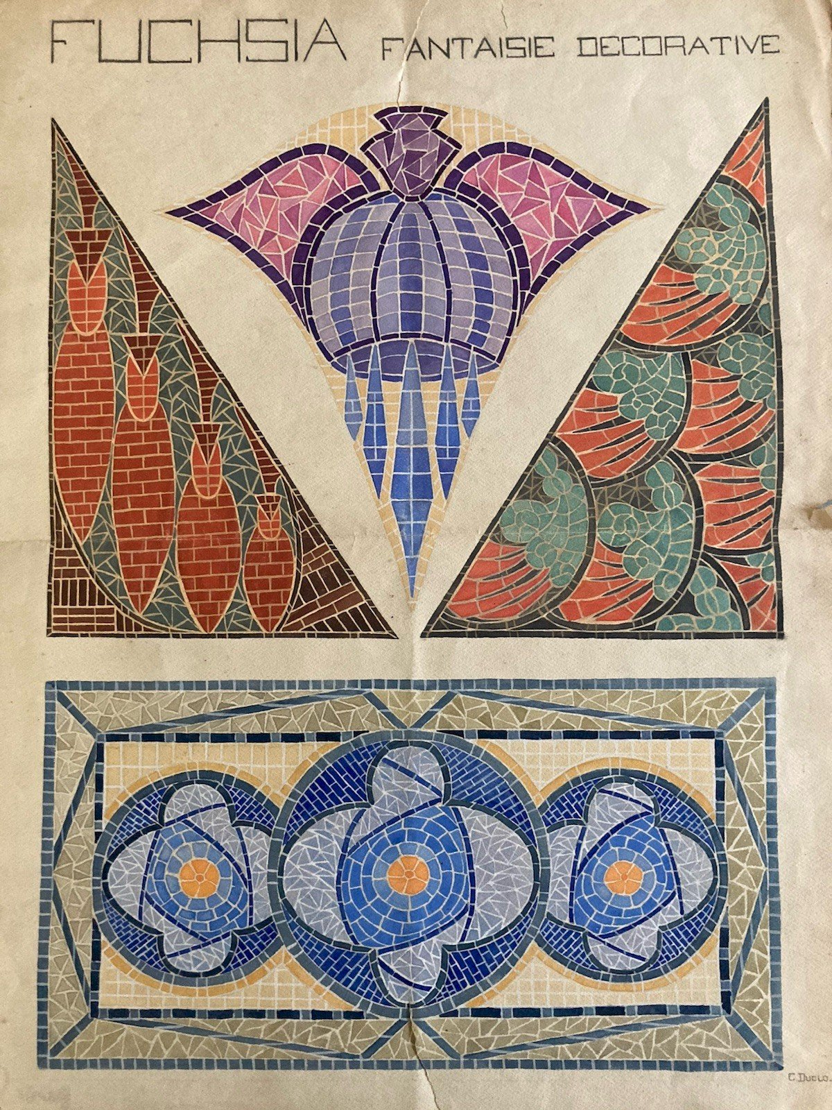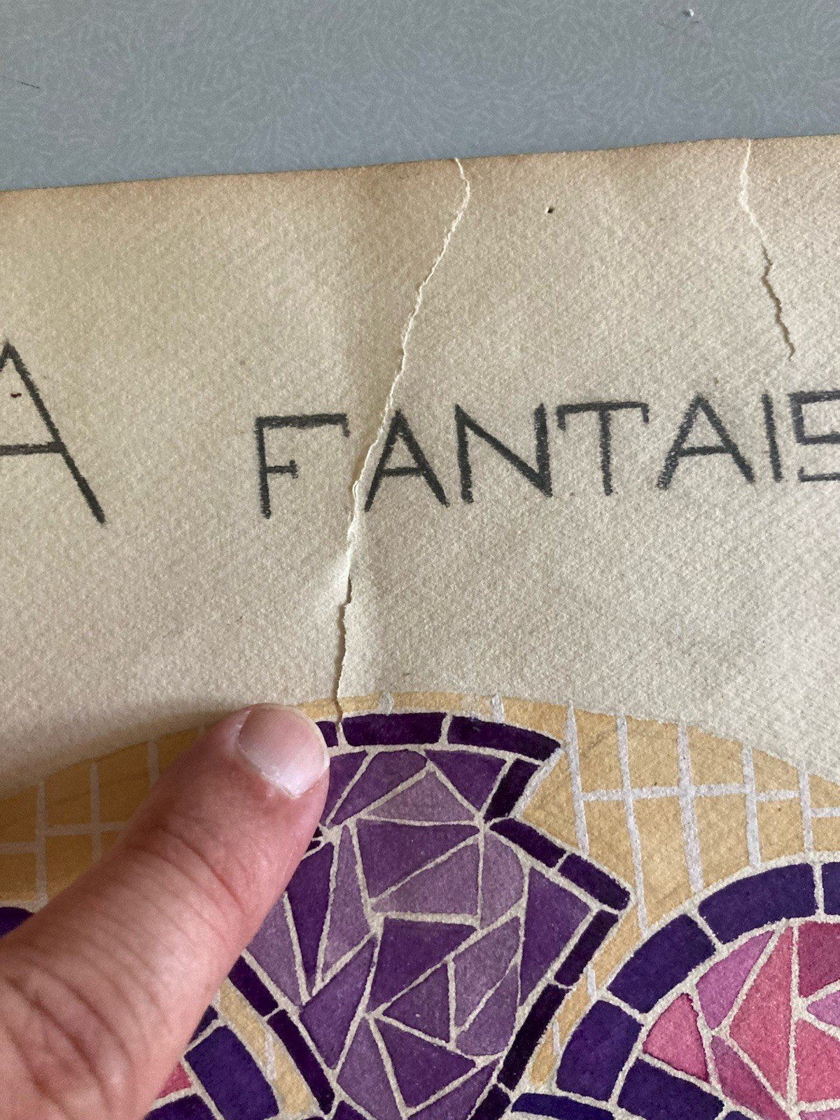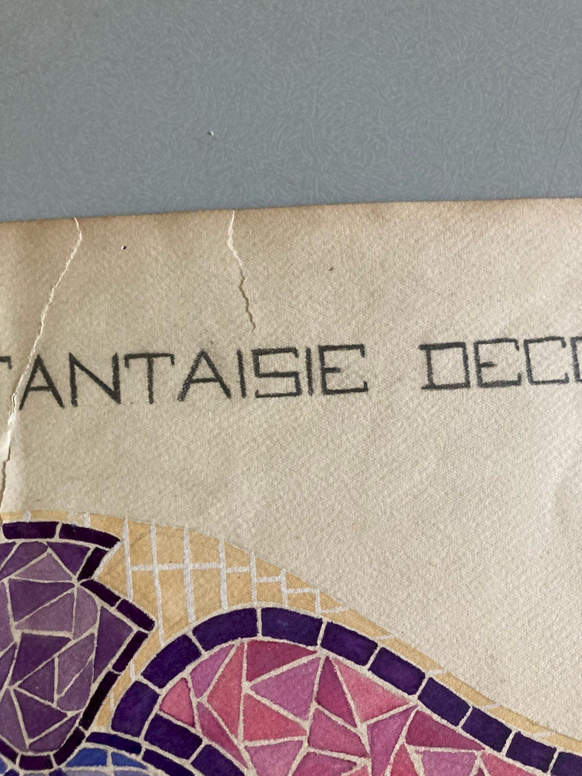 Dessin Peinture 1930 Original Art Deco Nouveau Gouache Papier Ancien Mosaïque