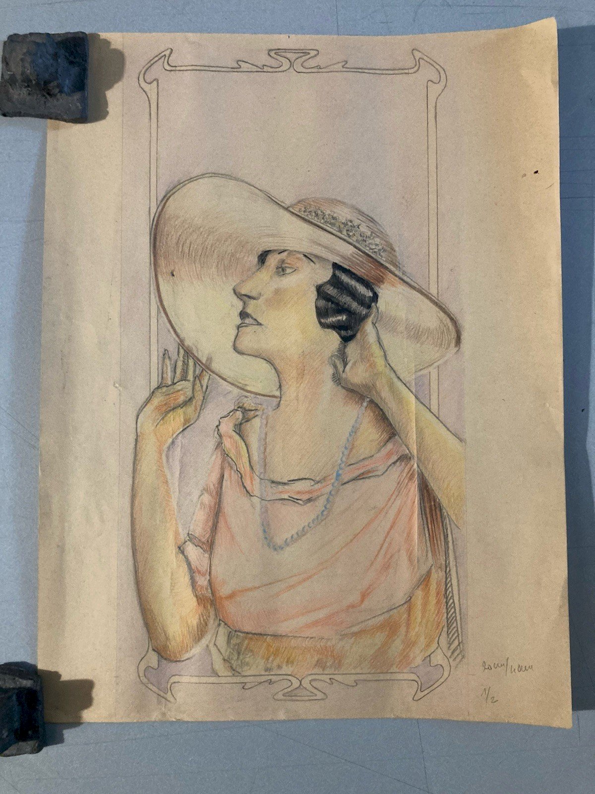 Service de livraison : lettre suivie Authenticité:Original Type:Dessin Période:XXème et contemporain Matériau:Crayon Style:1930 Genre:Art déco Thème:Personnage Pays d'origine:France