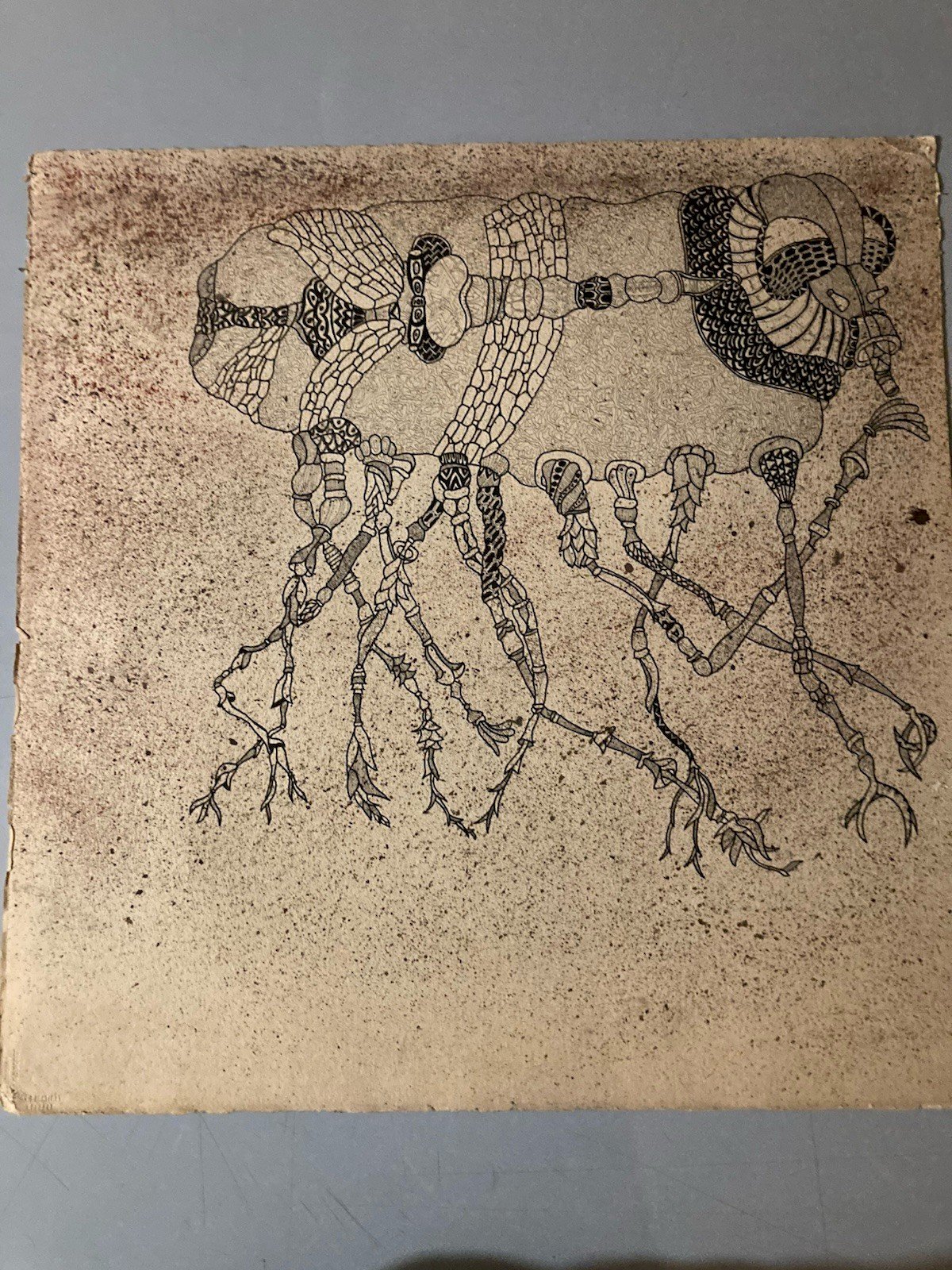 Dessin Squelette Insecte 1960 Curiosité Art Encre Surréaliste Ancien