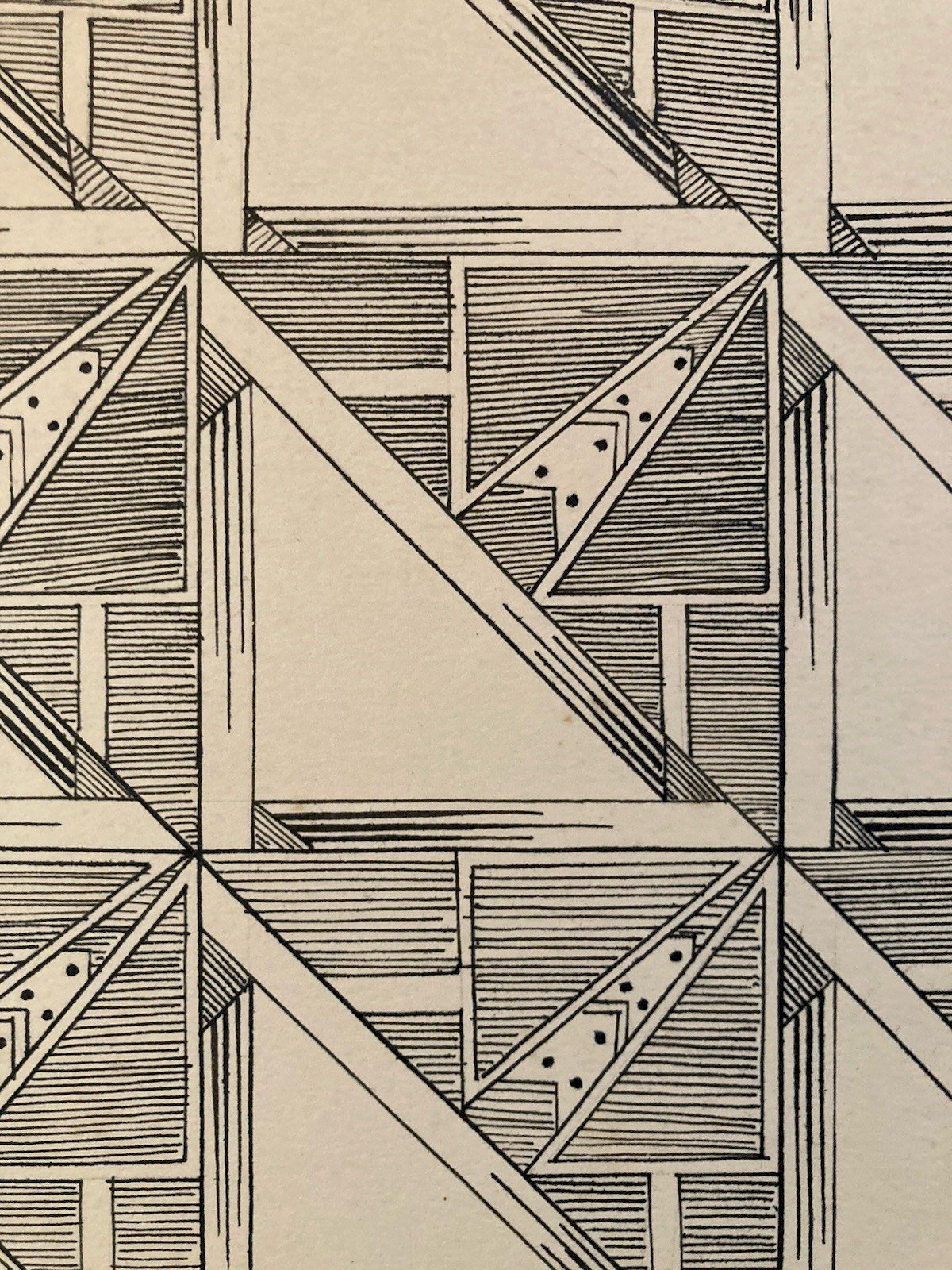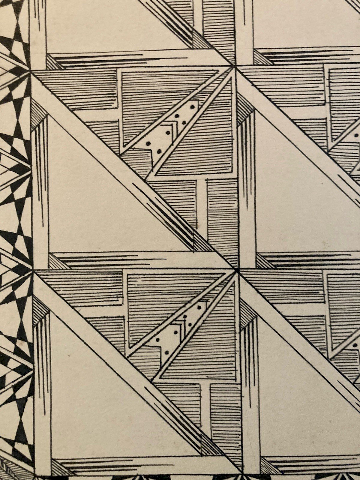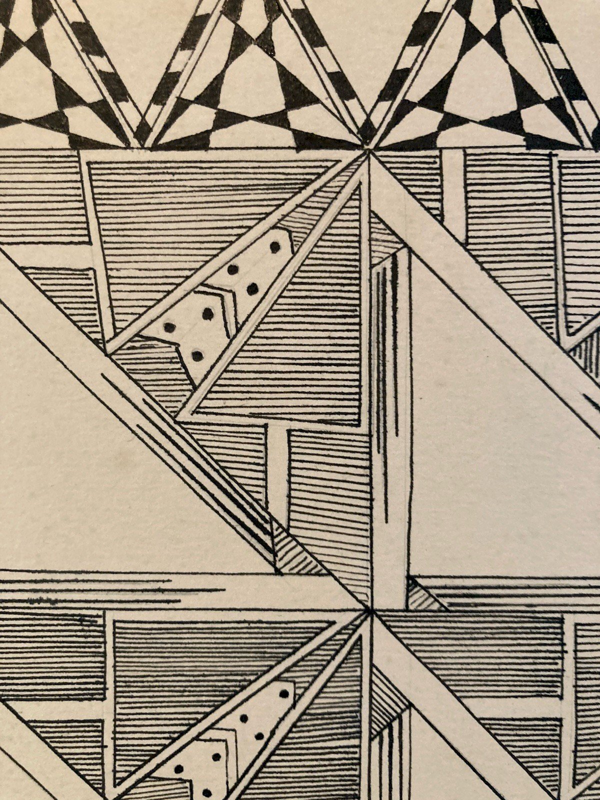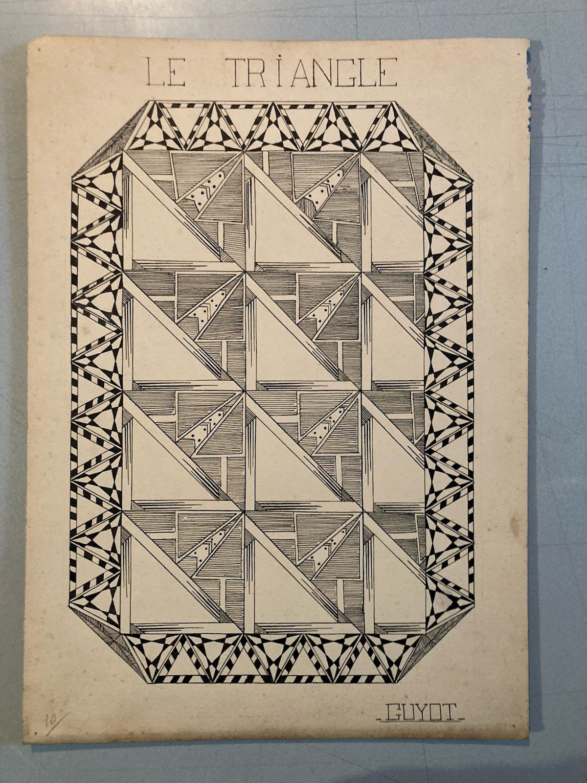 Dessin Triangle Encre 1950 Original Art Deco Motif Crayon Papier Ancien XXe