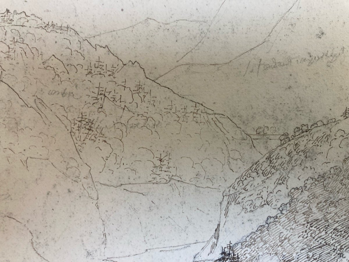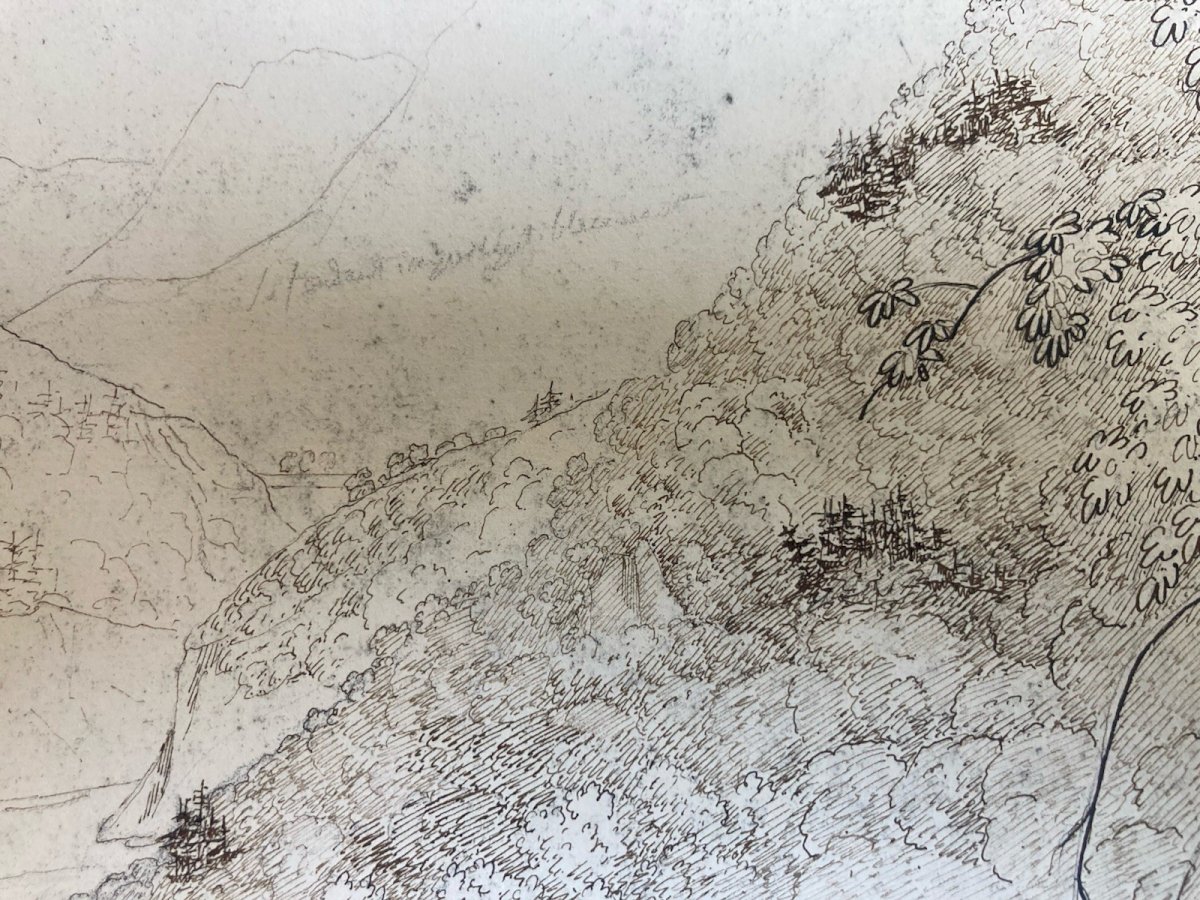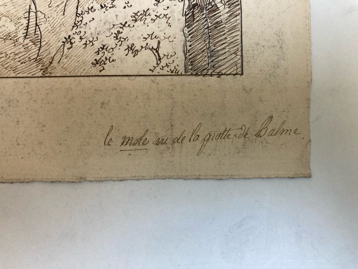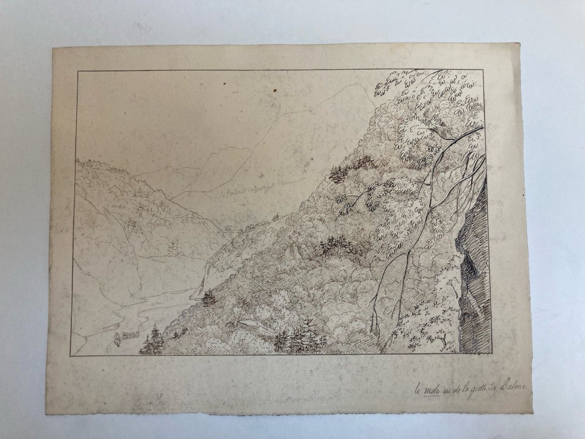 Dessin XIXe 1820 Encre Crayon Montagne Le Mole Grotte De Balme Ancien