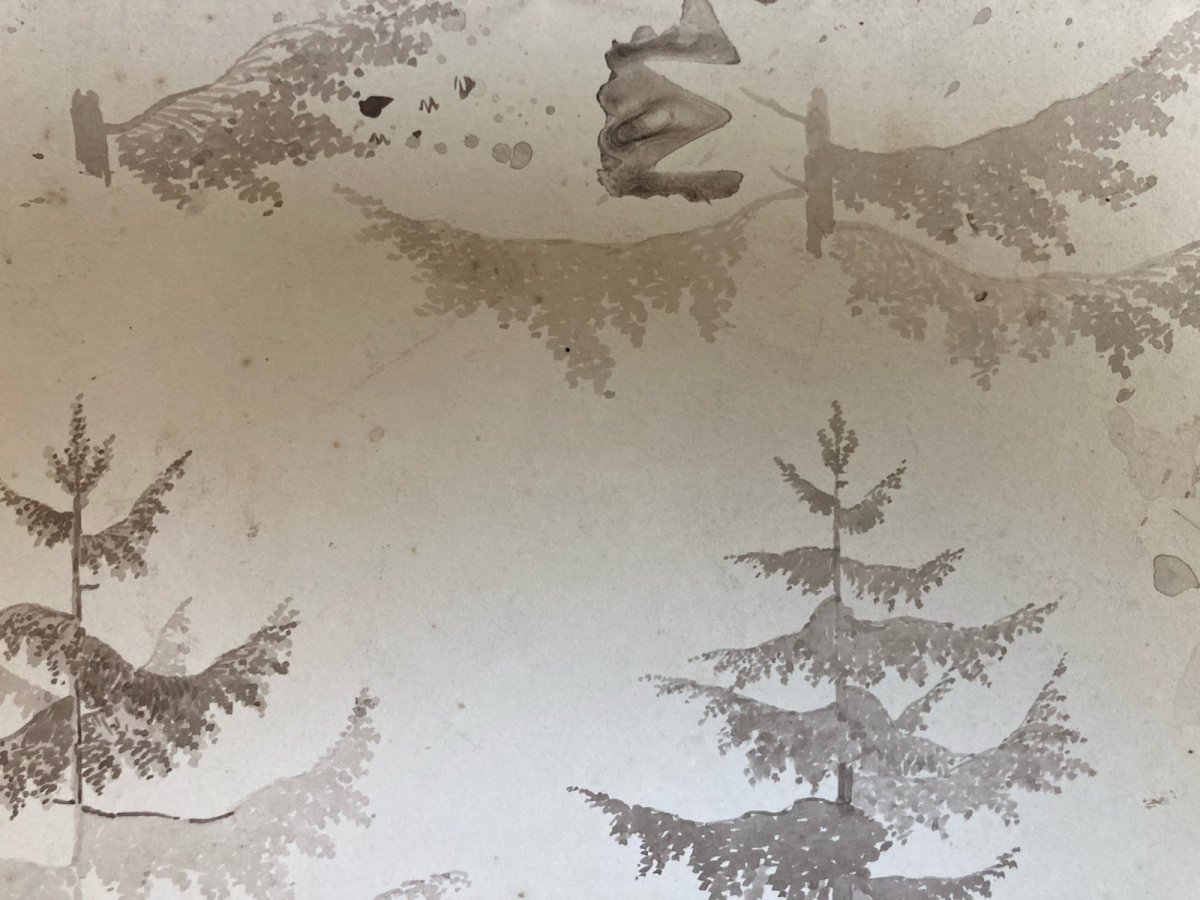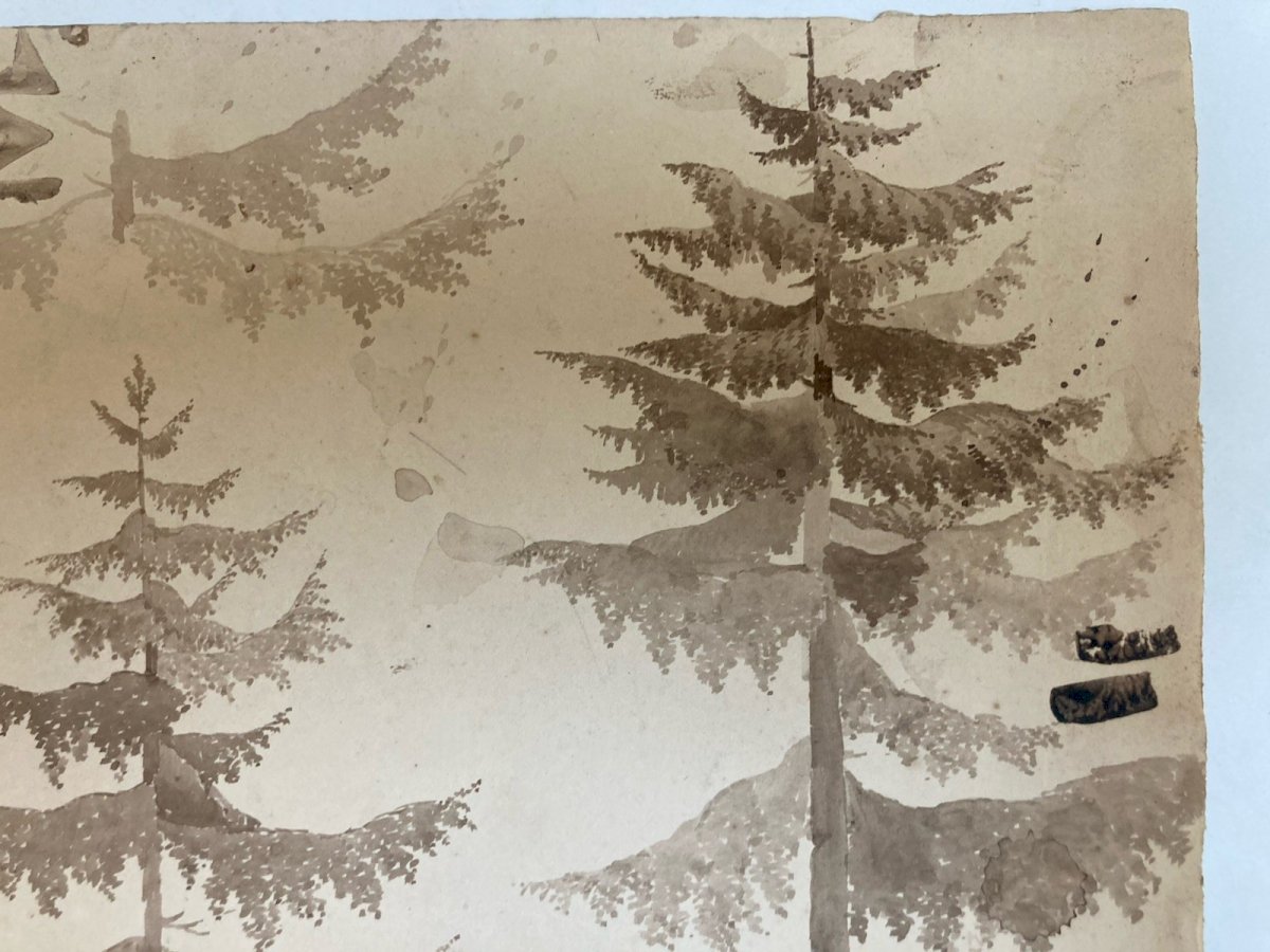 Dessin XIXe 1820 Encre Lavis Étude Ancien Arbre Sapin Art Feuille