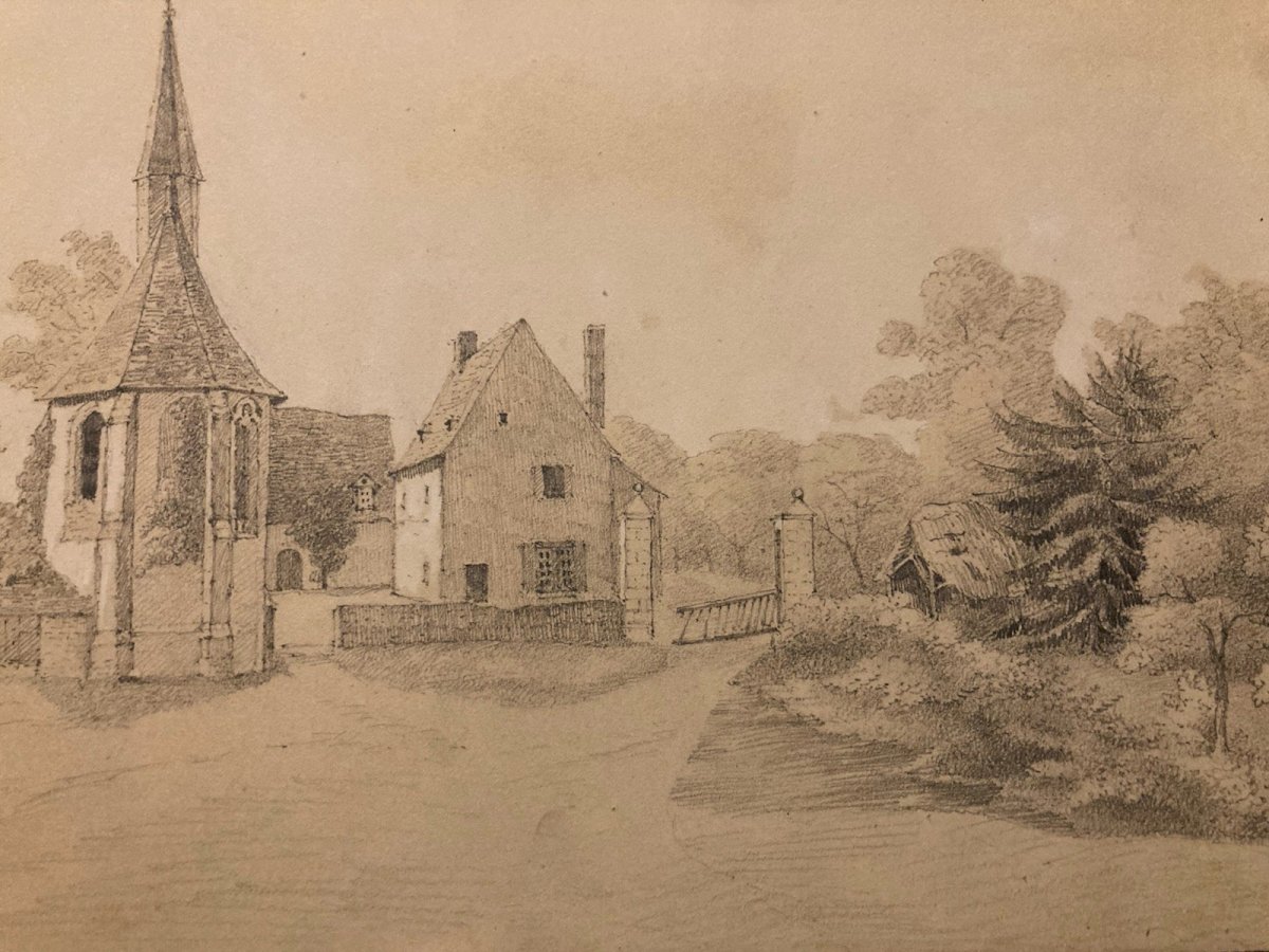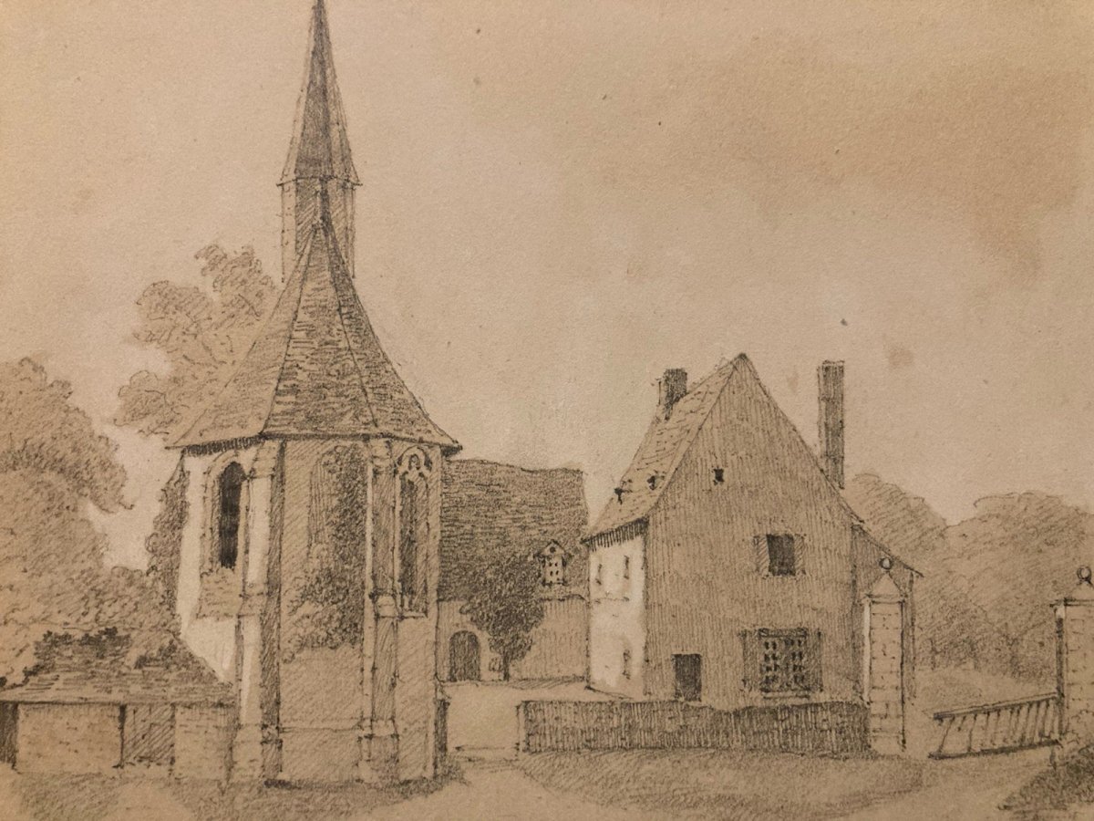 Dessin XIXe 1830 Crayon Savoie ? Village A Identifier Montagne Art Ancien