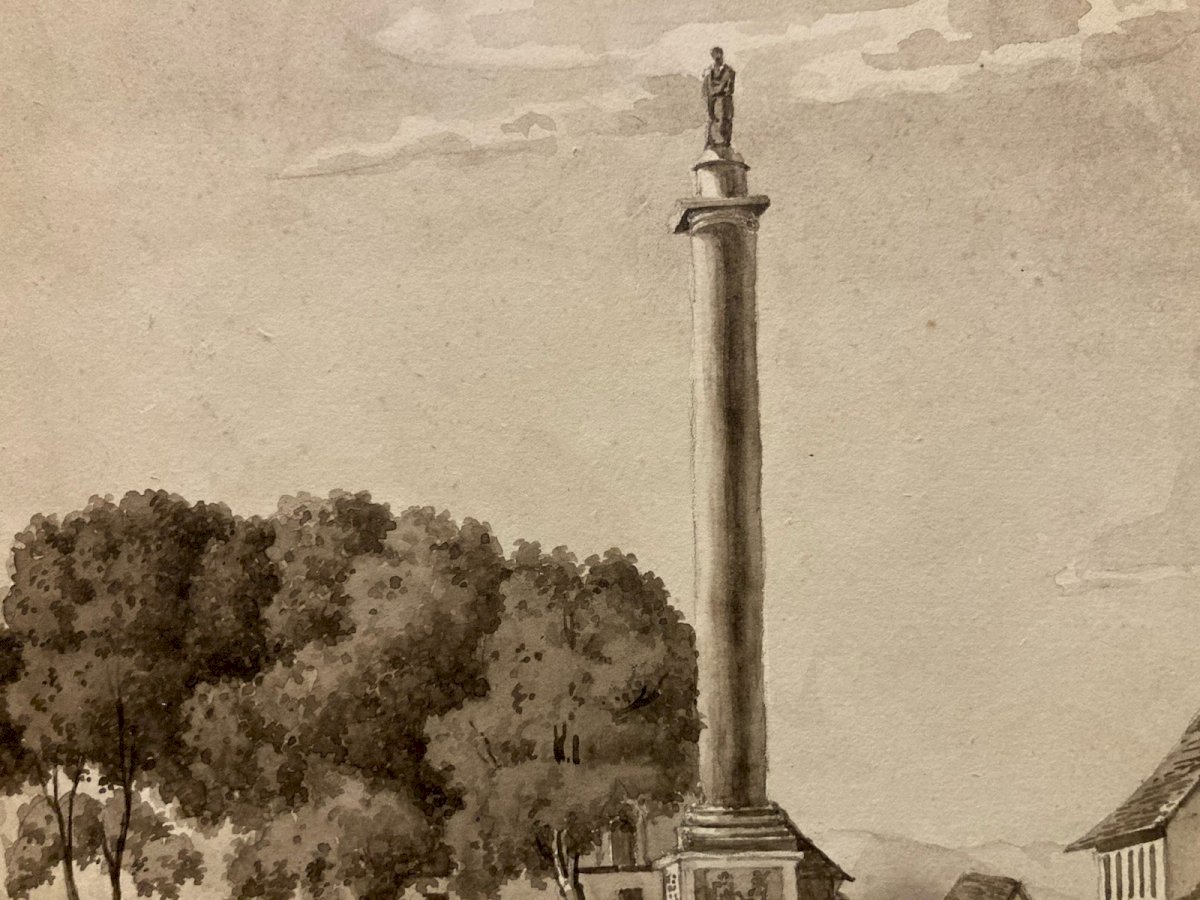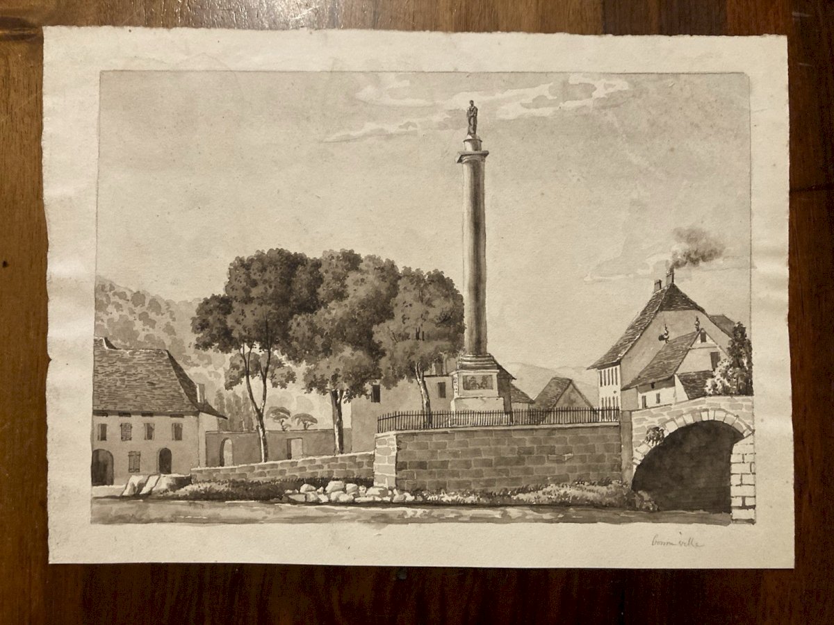 Dessin XIXe 1830 Encre Lavis Colonne Charles Félix Bonneville Savoie