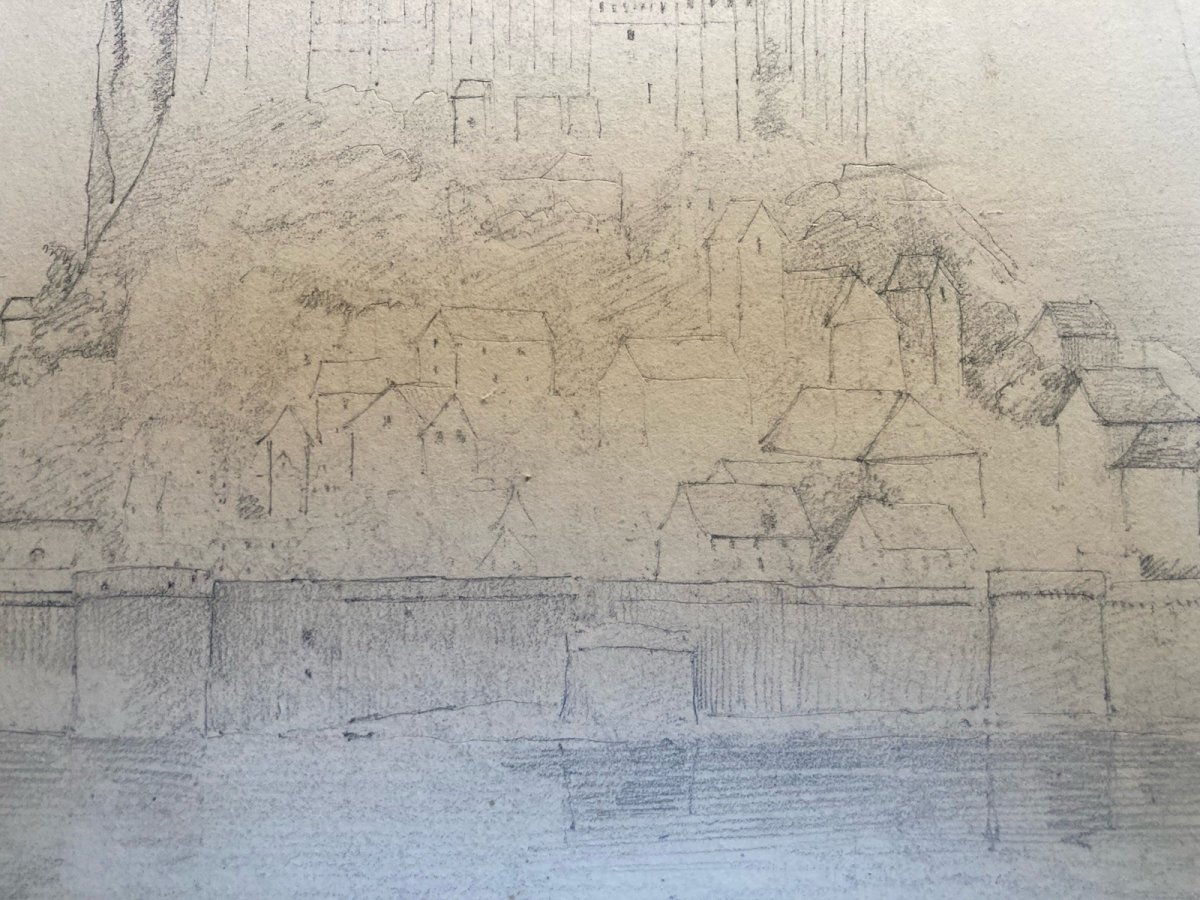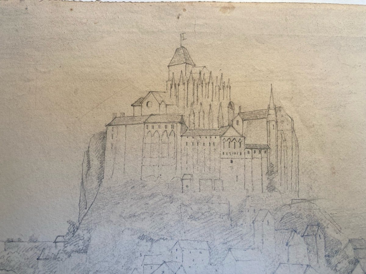 Dessin XIXe 1830 Mont Saint Michel Art Église Cathédrale Ancien Mer Océan