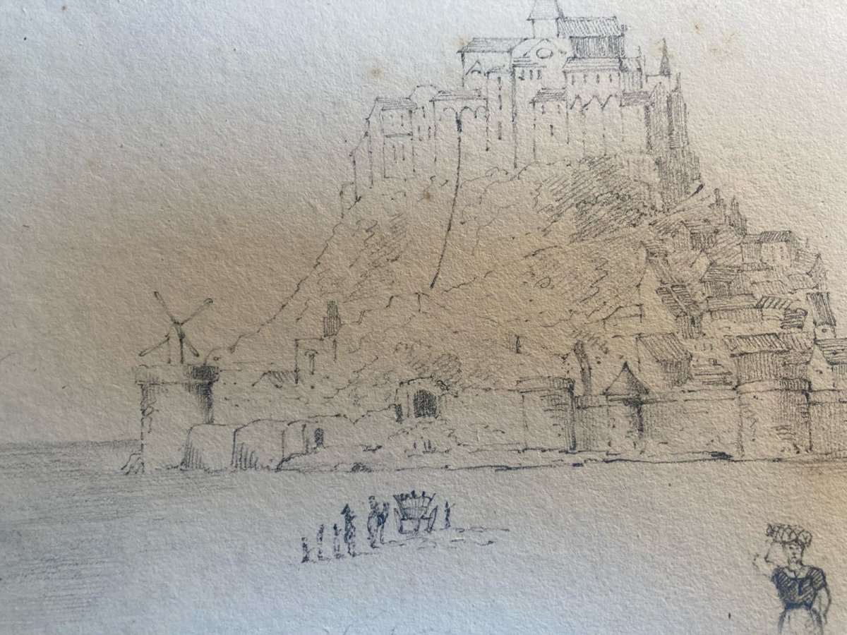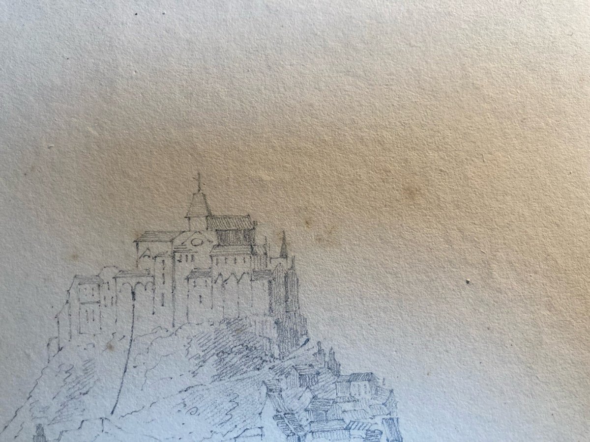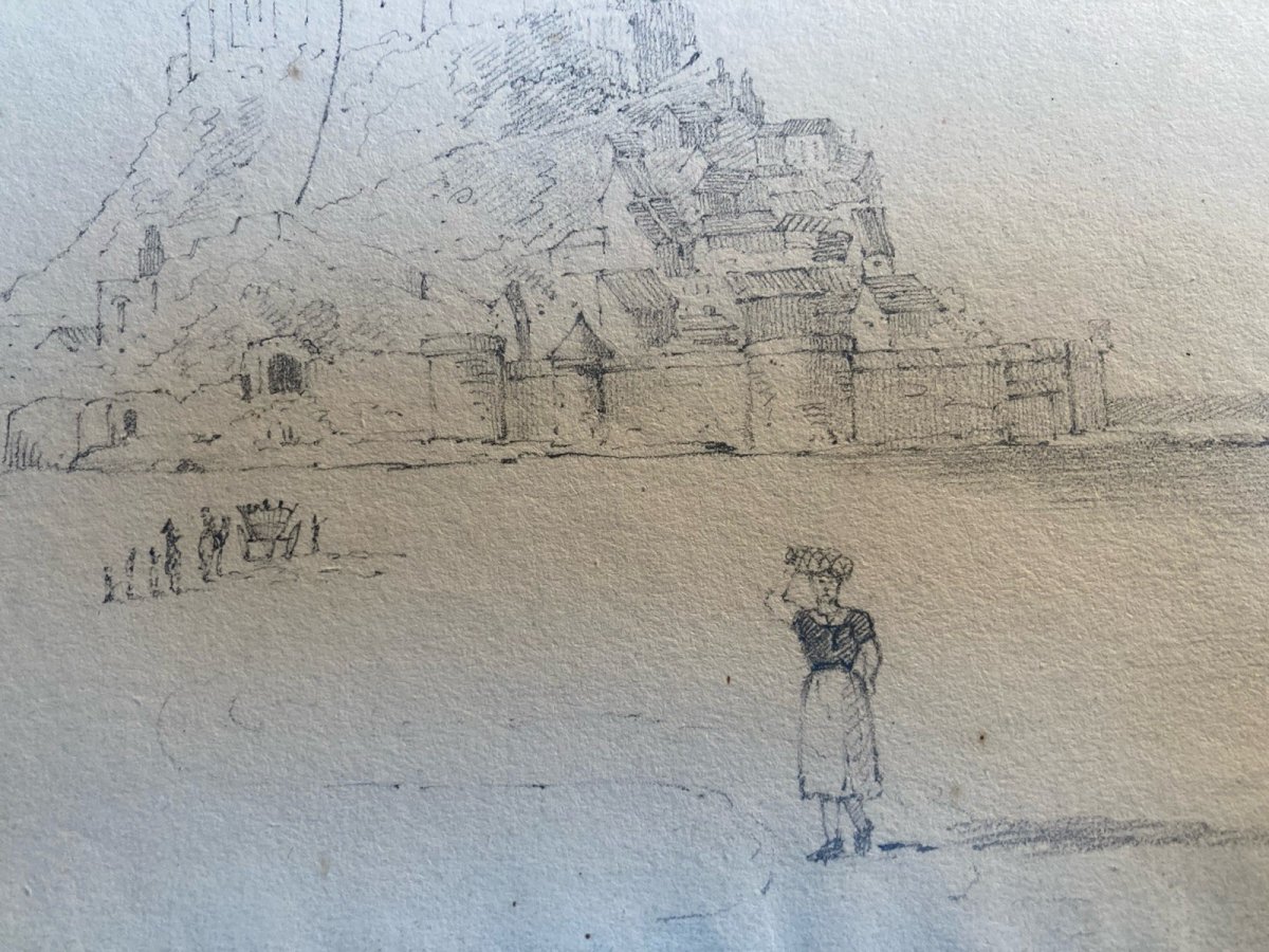 Dessin XIXe 1830 Mont Saint Michel Art Église Goémon Ancien Mer Océan Goemond