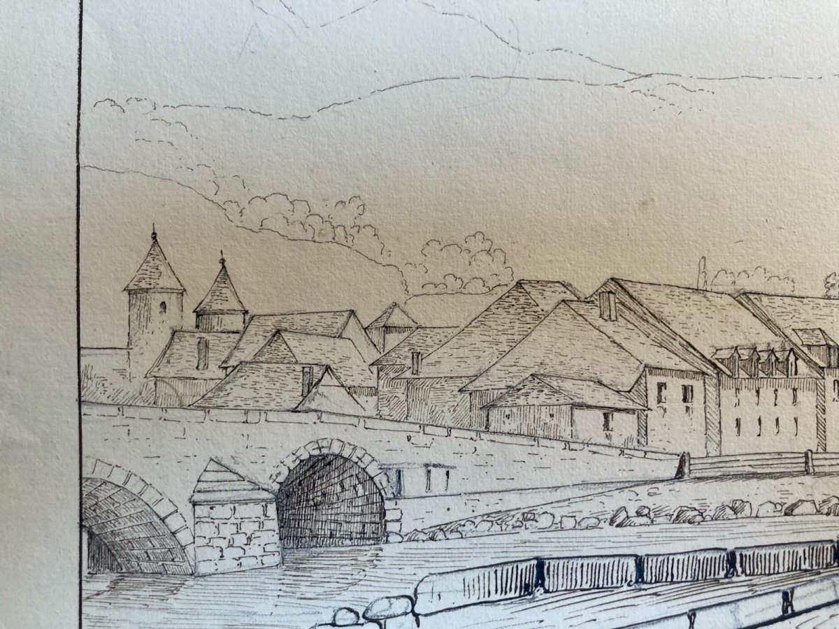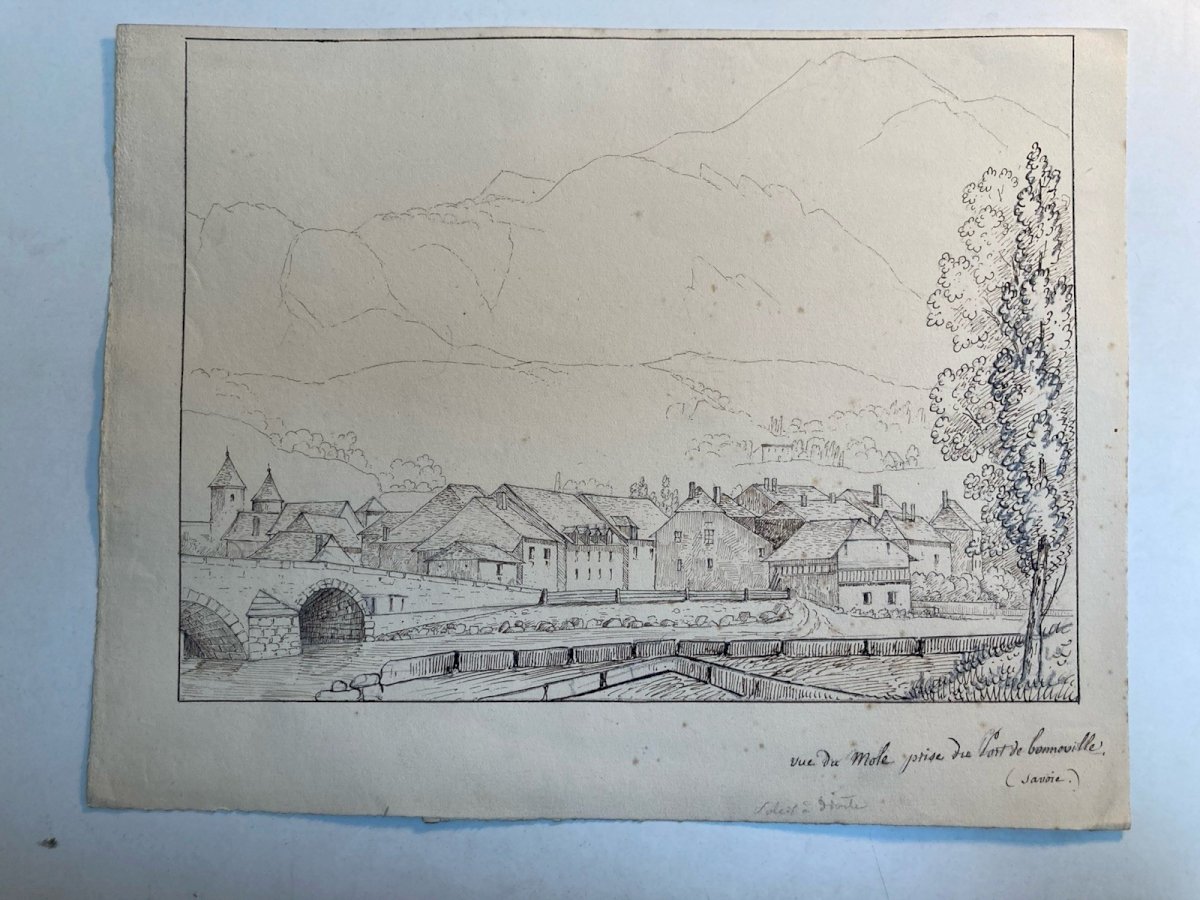 Dessin XIXe 1830 Vue Du Mole Môle Port De Bonneville Crayon Montagne Savoie Art