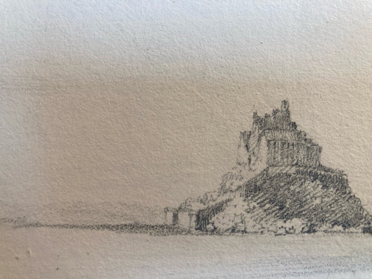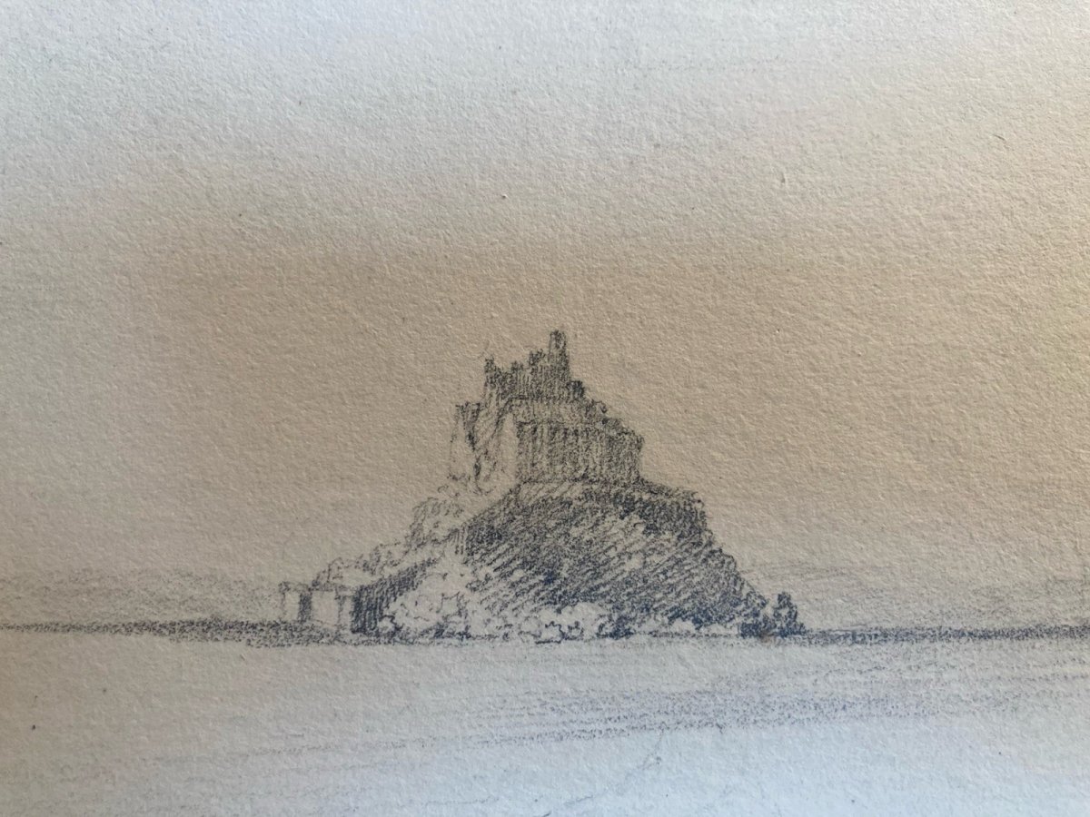 Dessin XIXe 1830 Vue Du Mont Saint Michel Art Église Cathédrale Ancien Mer Océan