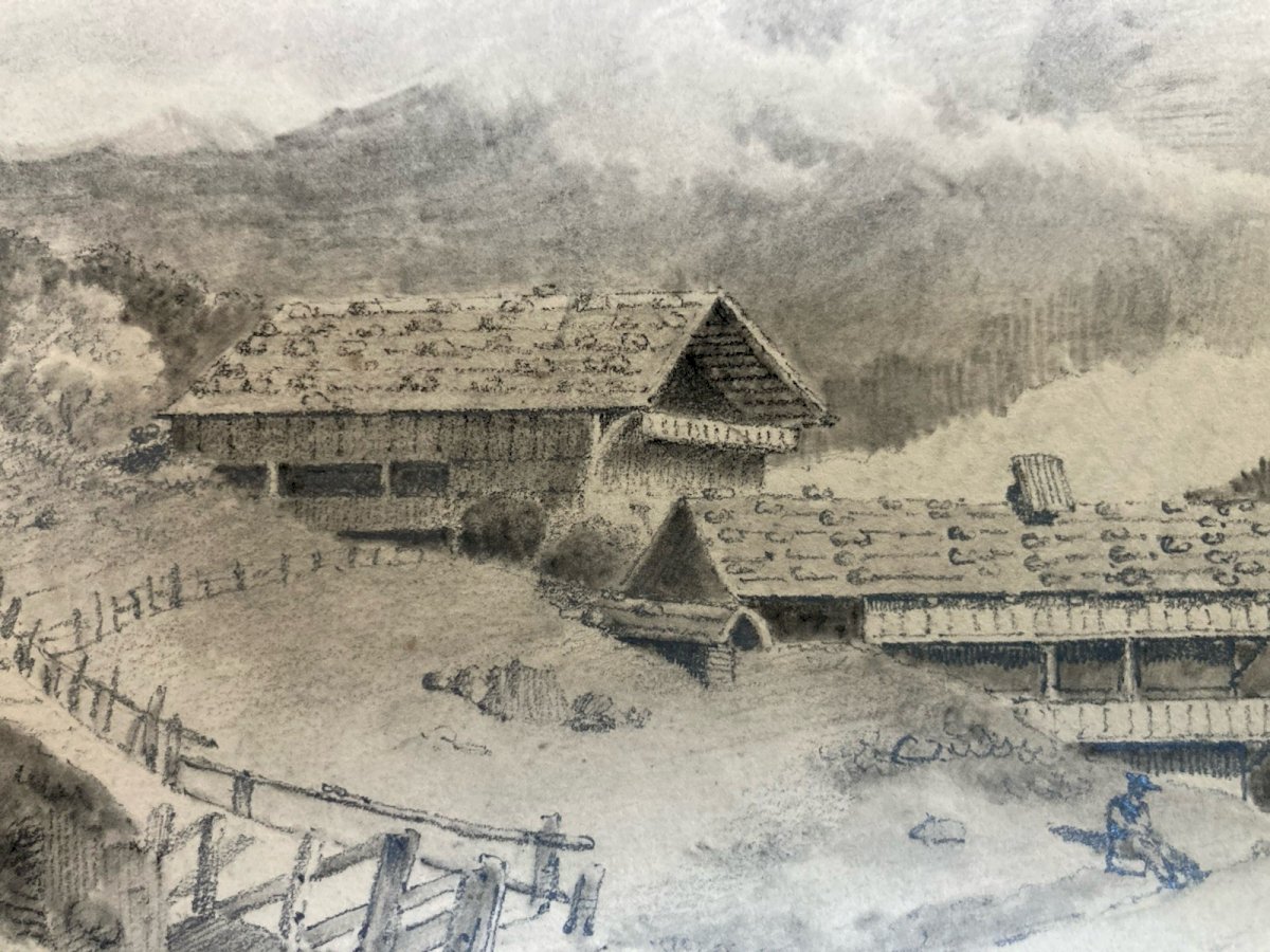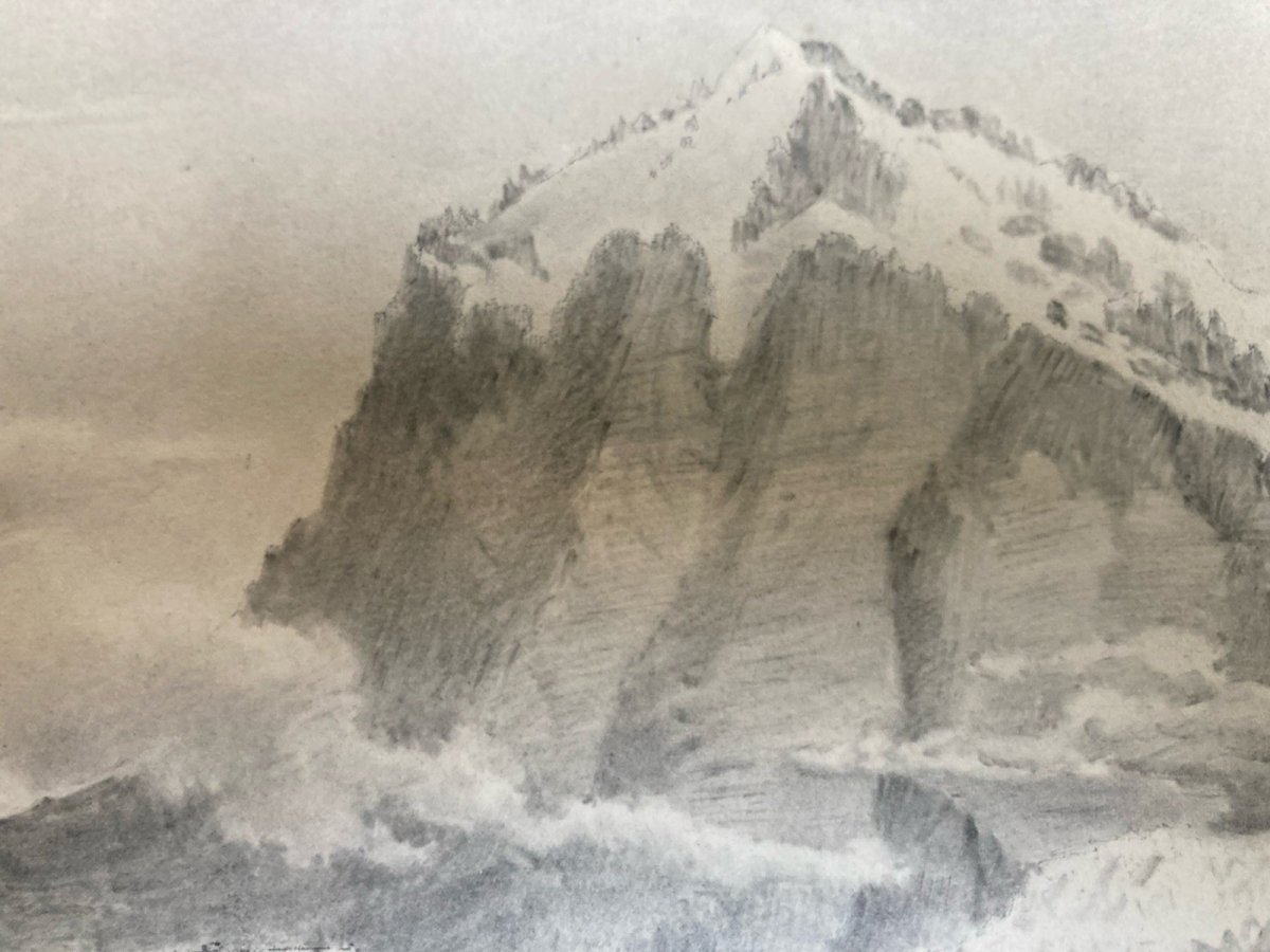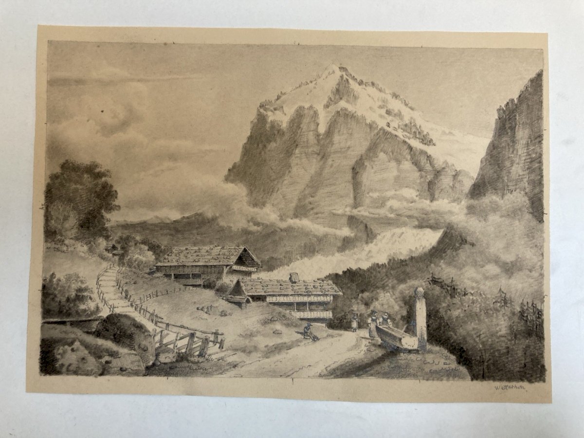 Dessin XIXe 1830 Vue Wetterhorn Crayon Montagne Suisse Alpinisme Art Ancien Mont