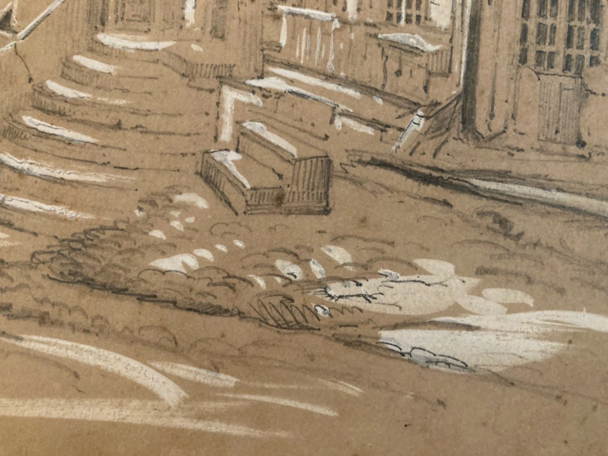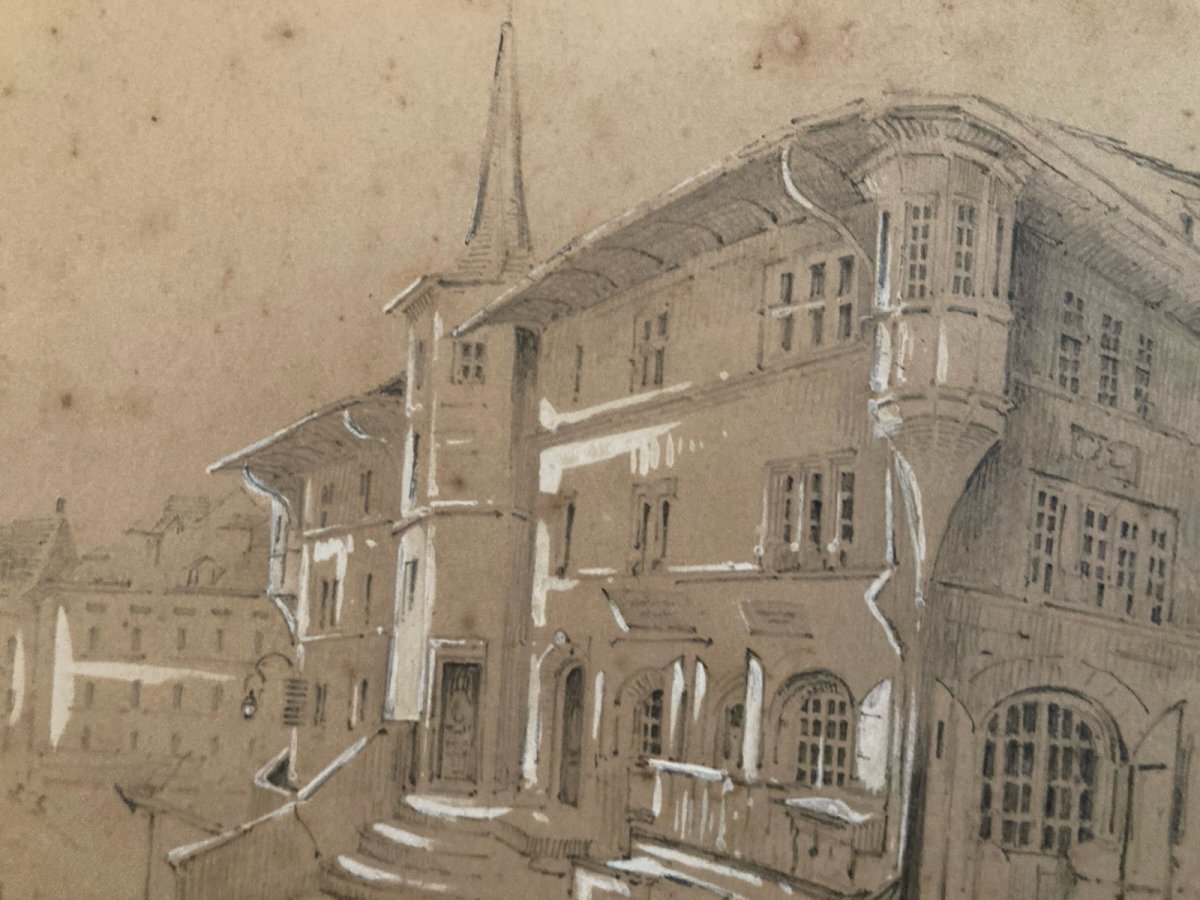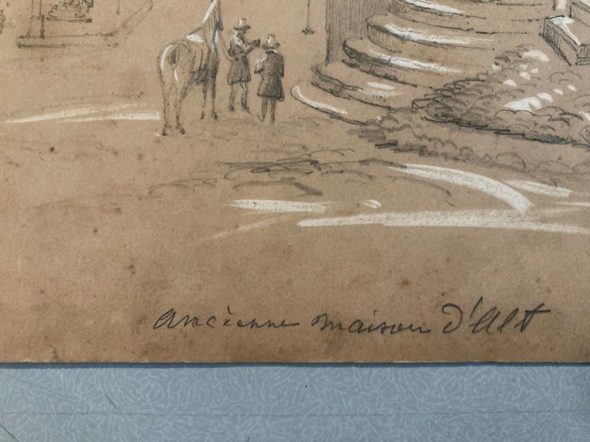 Dessin XIXe 1850 Encre Lavis Ancien Maison D Art Homme A Identifier