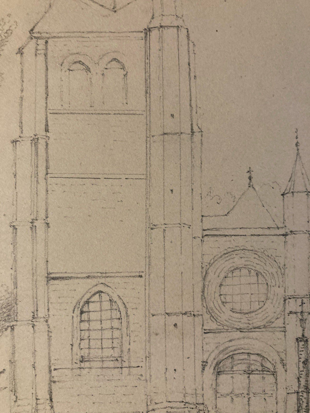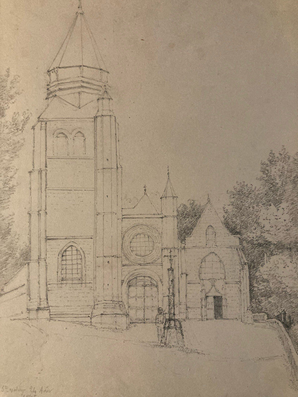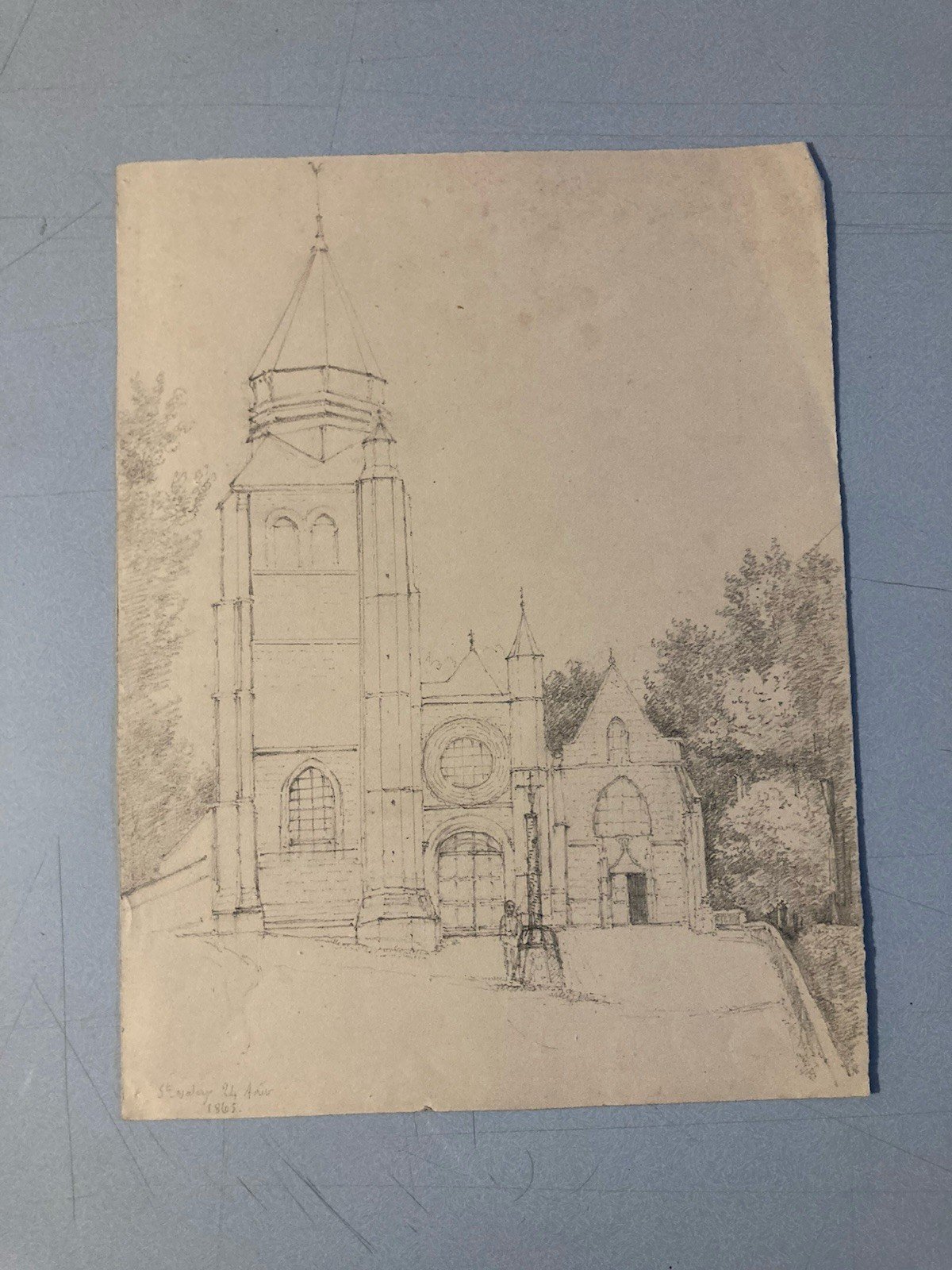 Dessin XIXe 1865 crayon Paysage Saint Valery Sur Somme Ancien Art