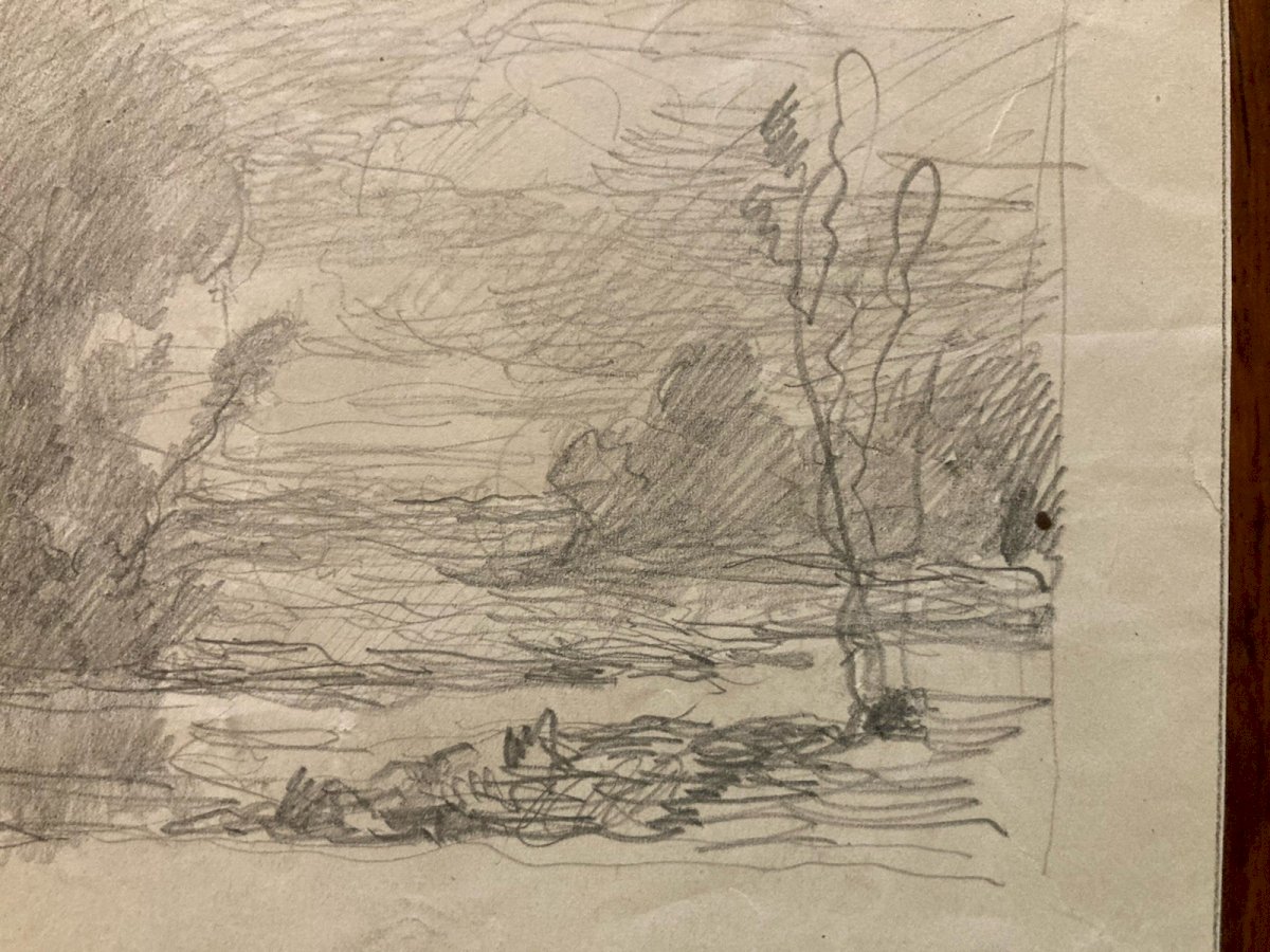 Dessin XIXe Crayon Alexandre Portais Art Ancien Paysage Arbre Signé Académisme