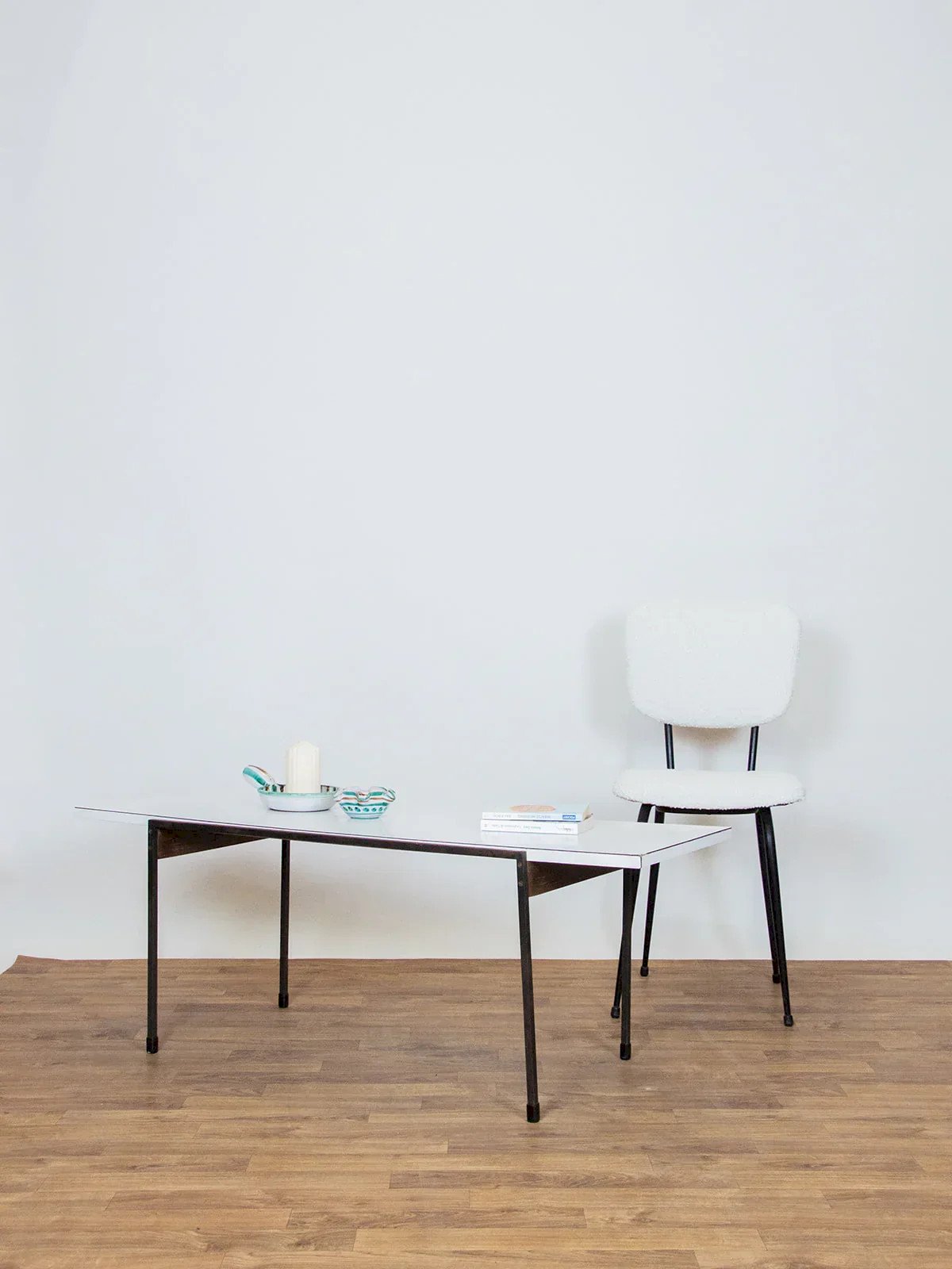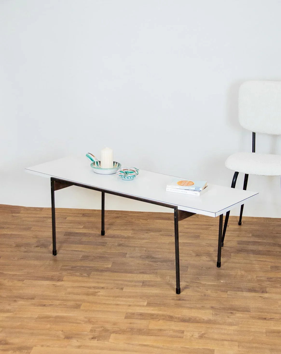 Découvrez cette table basse moderniste qui allie élégance et fonctionnalité. Sa structure mêle métal et bois, rehaussée de pieds au charme patiné, tandis que le plateau en mélaminé blanc apporte une touche lumineuse à l’ensemble. Marquée par le temps avec quelques rayures et un coin abîmé, elle conserve tout son caractère et témoigne de son histoire depuis 1967. Une pièce unique qui apportera une belle note vintage à votre intérieur. Exclusivité web, la rencontre se fera chez vous ! Largeur : 120 cm Hauteur : 45 cm Profondeur : 43 cm État:Occasion: Objet ayant été utilisé. Objet présentant quelques marques d'usure superficielle, ...Occasion: Objet ayant été utilisé. Objet présentant quelques marques d'usure superficielle, entièrement opérationnel et fonctionnant correctement. Il peut s'agir d'un modèle de démonstration ou d'un objet retourné en magasin après une courte période d'utilisation. les éventuelles imperfections. Marque:Debongout Type:Produit chiné Matériau:Bois, Métal Style:Contemporain Personnalisé:Tables basses