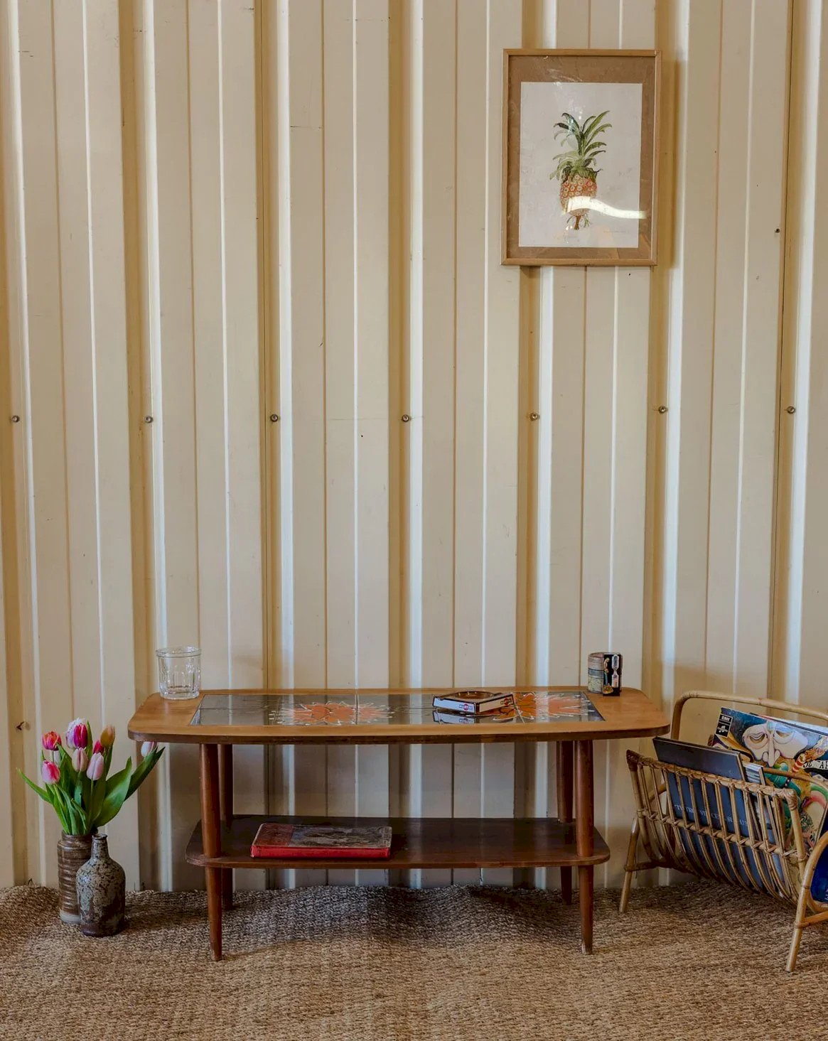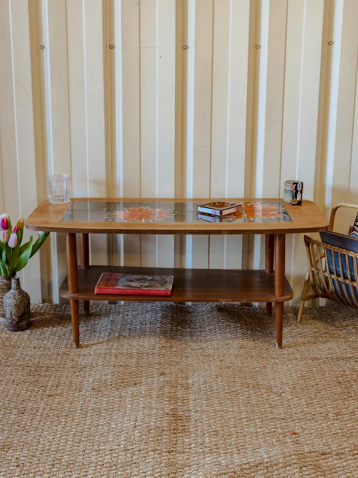 Ajoutez une touche d'élégance naturelle avec cette table basse en bois au plateau décoré de délicates fleurs peintes, un détail artisanal qui capte le regard. Son sous-plateau propose un rangement discret pour magazines, livres ou plaids, et le veinage chaleureux du bois apporte une patine authentique. Ses proportions s'intègrent facilement à un salon cosy pour créer une atmosphère conviviale et raffinée. Quelques traces du temps présentes. Longueur : 101 cm Largeur : 46 cm Hauteur : 44 cm Hauteur de la niche : 26 cm État:Occasion: Objet ayant été utilisé. Objet présentant quelques marques d'usure superficielle, ...Occasion: Objet ayant été utilisé. Objet présentant quelques marques d'usure superficielle, entièrement opérationnel et fonctionnant correctement. Il peut s'agir d'un modèle de démonstration ou d'un objet retourné en magasin après une courte période d'utilisation. les éventuelles imperfections. Marque:Debongout Type:Produit chiné Matériau:Bois Style:Contemporain Personnalisé:Tables basses