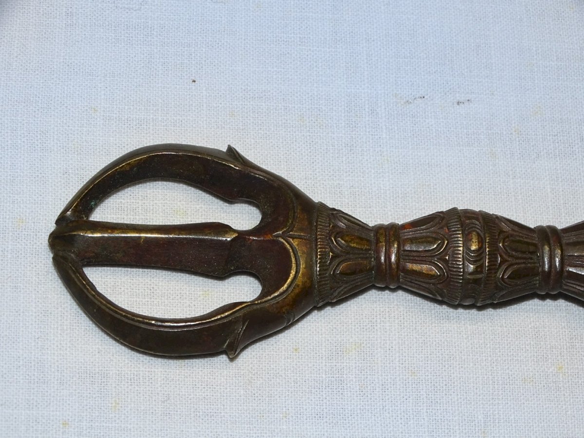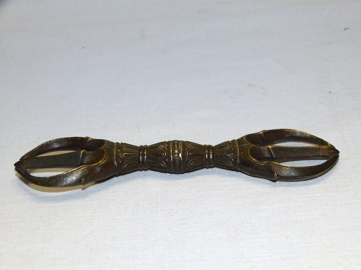 Dorje Bouddhiste - Instrument rituel Tibétain symbole spirituel puissant en Bronze XVIII/XIXe - jus de grenier, en bon état et belle patine (voir photos) - Réf. 1V240216/222 - Longueur 14 cm - largeur max 3,7 cm - Poids 121 g - Pour me contacter mon adresse mail : EXPEDITION POSSIBLE EN MONDIAL RELAY ou COLISSIMO sur demande TRES BON EMBALLAGE GARANTI MERCI de BIEN REGARDER TOUTES les PHOTOS car ELLES FONT PARTIE INTEGRANTE de la DESCRIPTION et PERMETTENT de VOIR l'OBJET AU MIEUX avec SES PETITS DEFAUTS EVENTUELS - État:Occasion: Objet ayant été utilisé. Consulter la description du vendeur pour avoir plus de détails ...Occasion: Objet ayant été utilisé. les éventuelles imperfections. Type:Bouddhisme Matière:Bronze