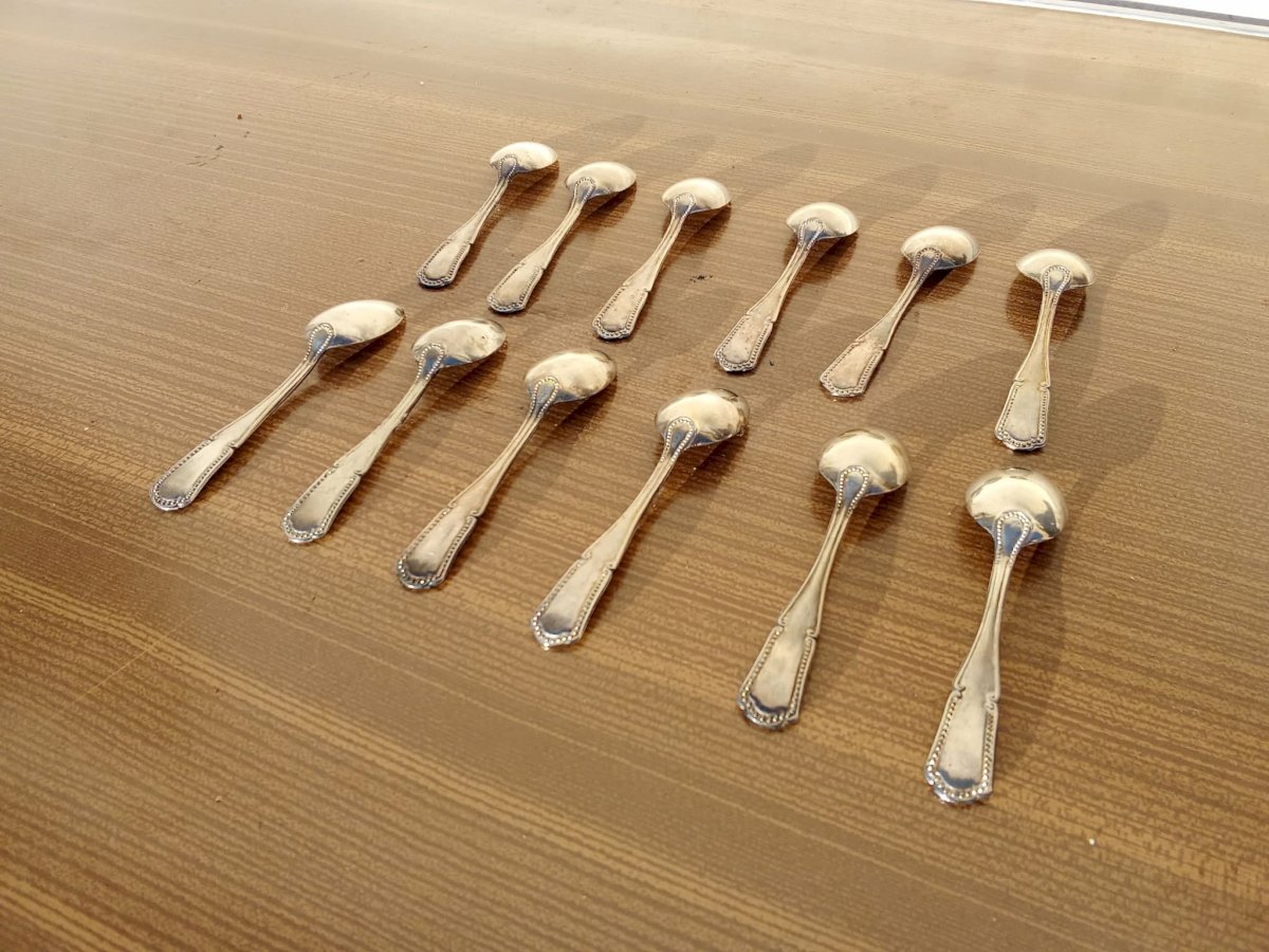 Série complète 12 cuillères à moka de style Louis XV métal argenté signé Hermès