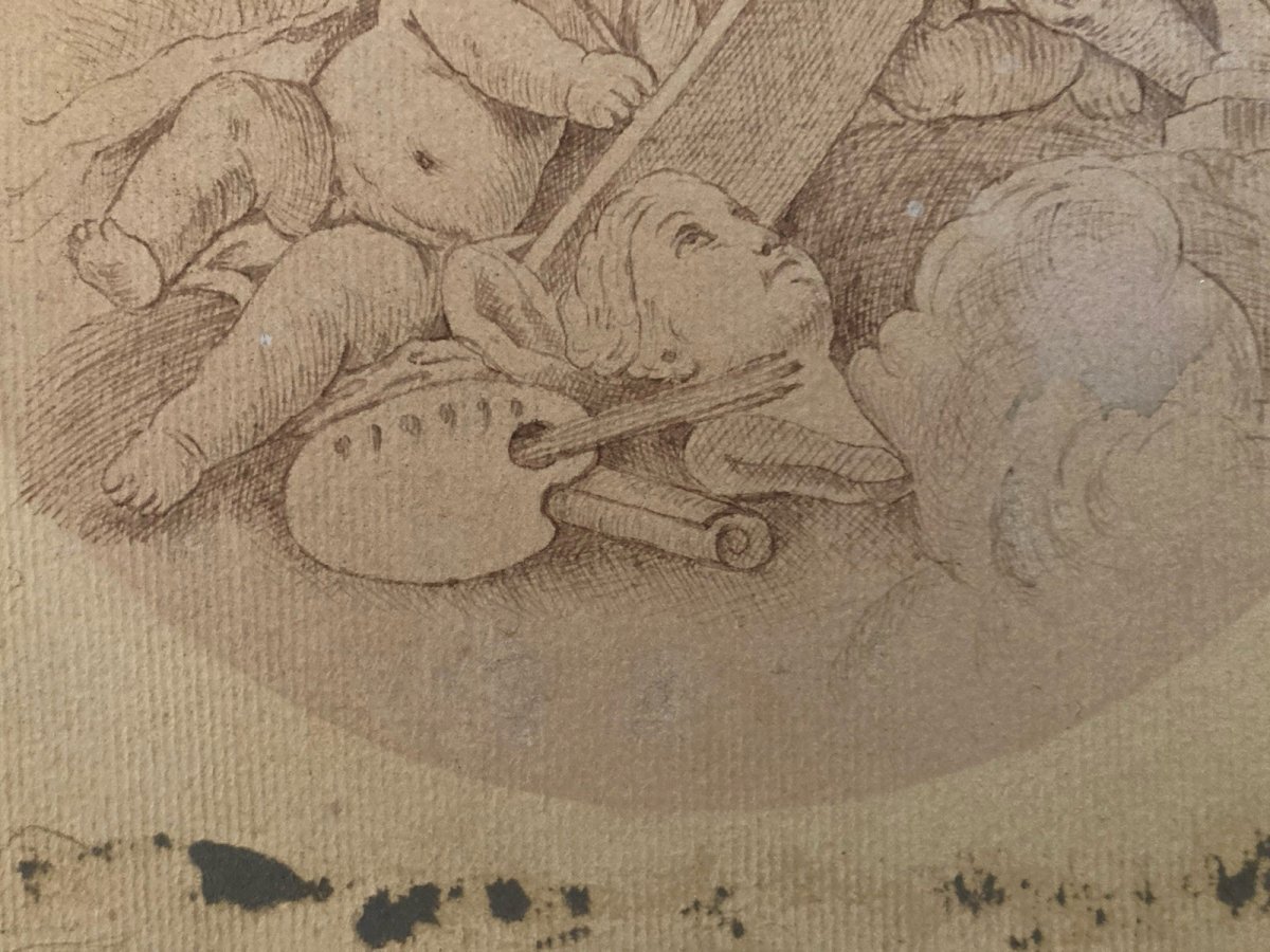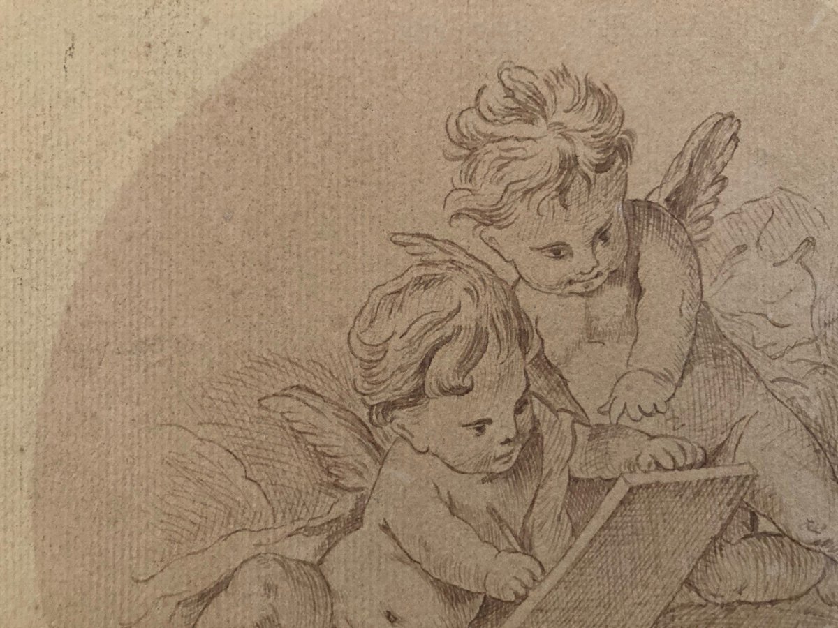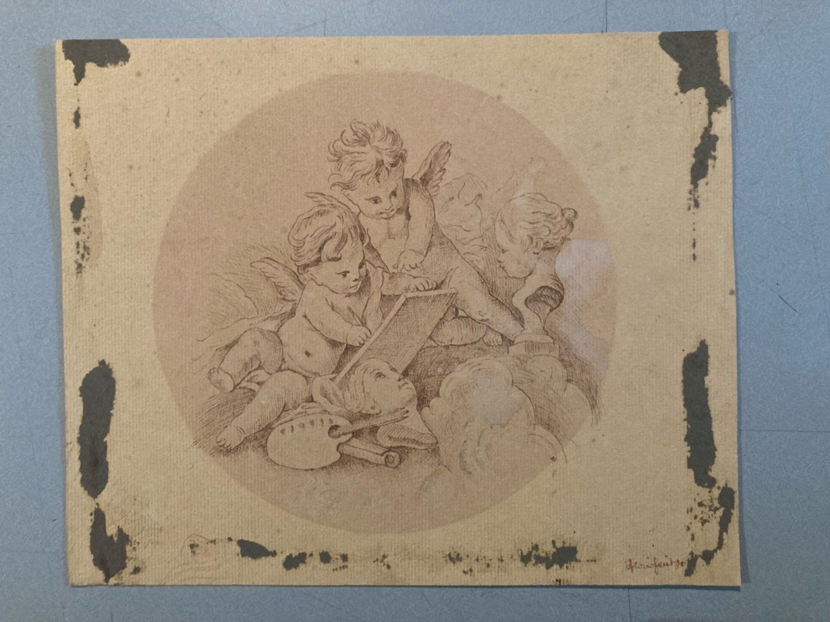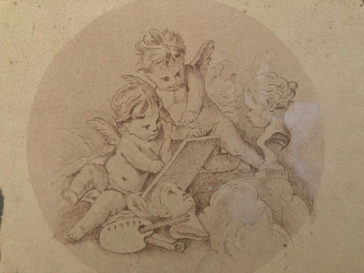 Drawing Dessin Encre Circa 1920 Ange Putti Angelot Peinture Ancien Old Classique