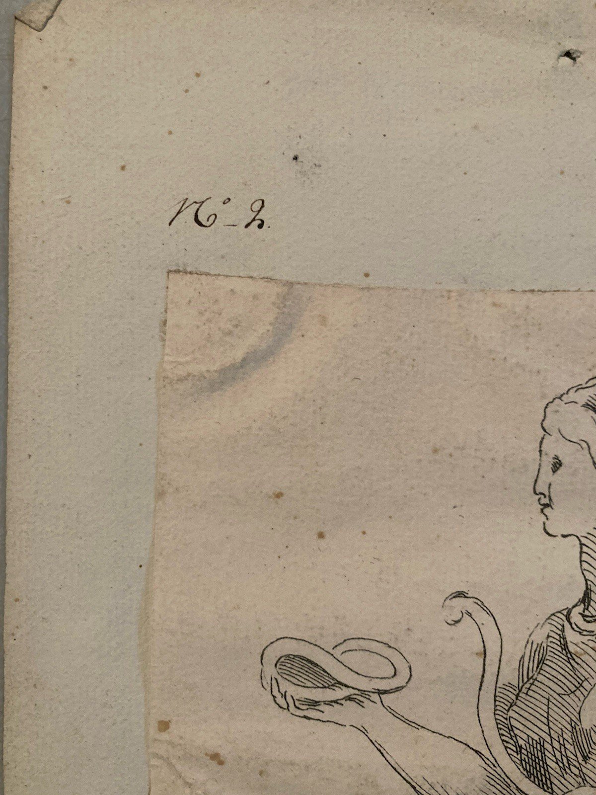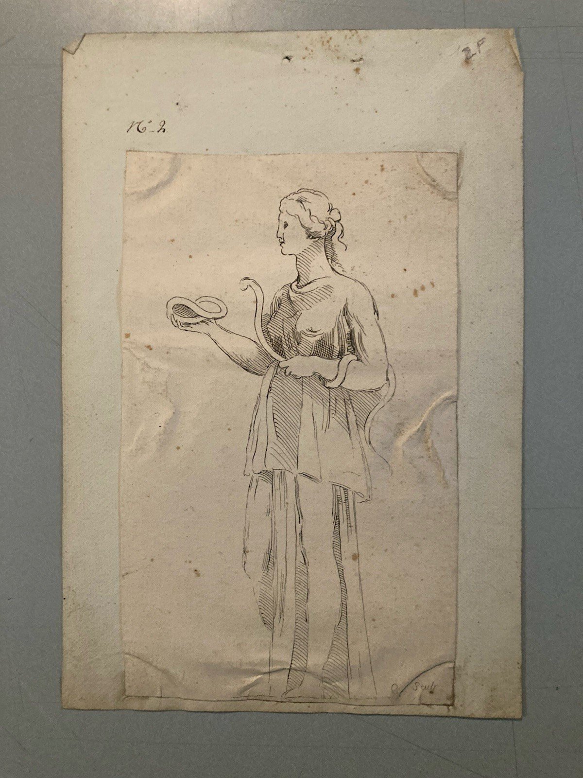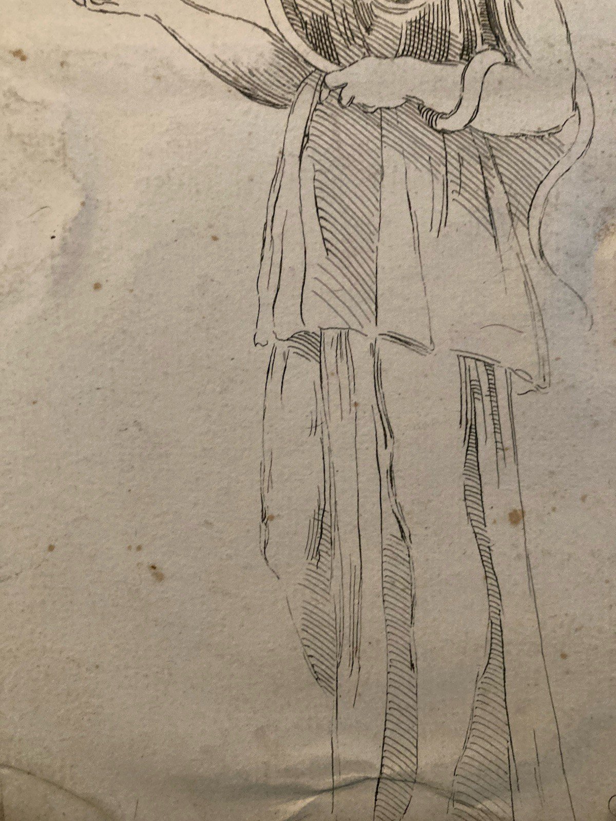Drawing Dessin Encre XVIIIe d’ Hygie (Hygieia) Grec Grecque Santé Serpent Old