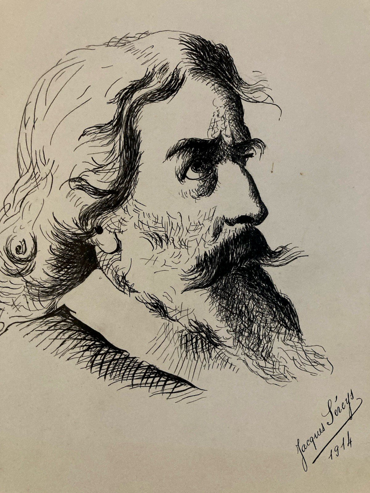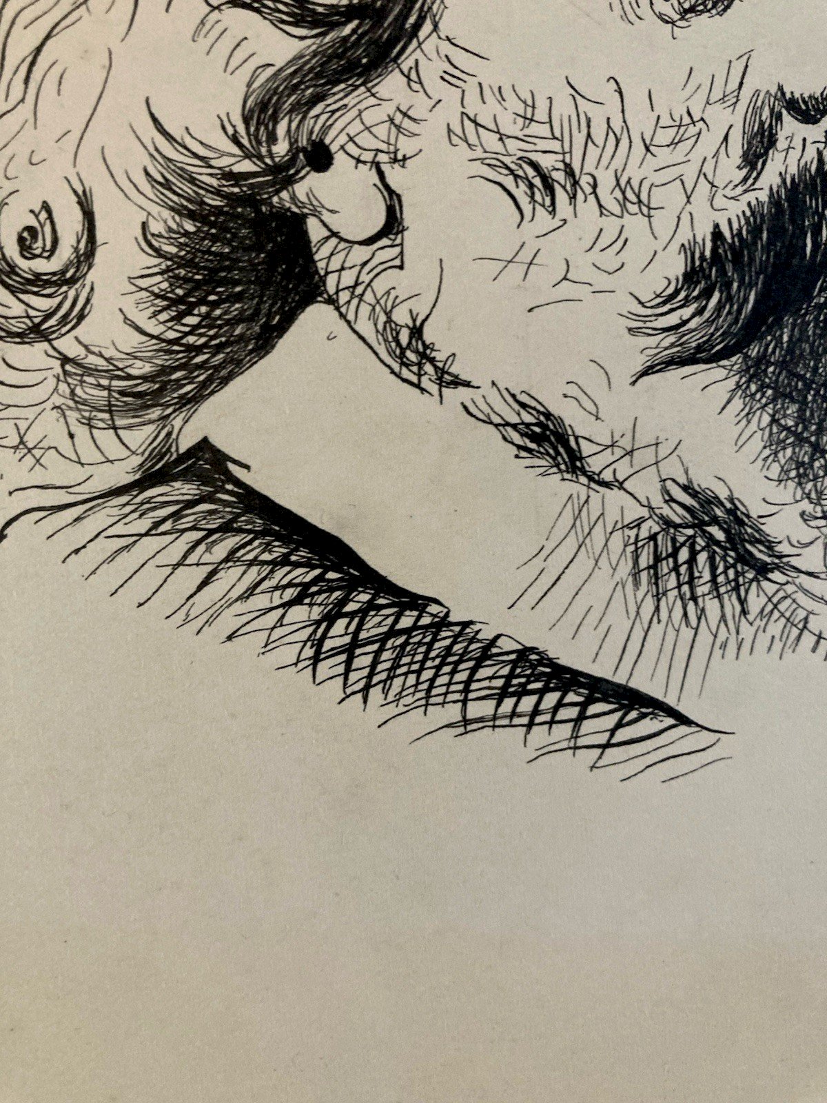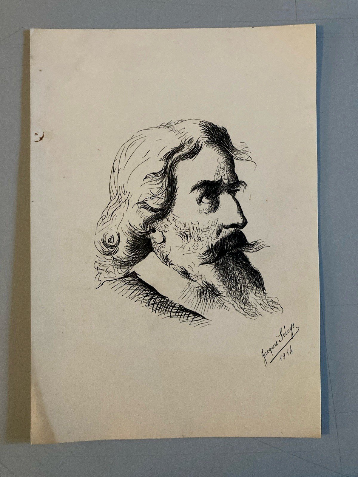 Drawing Dessin Peinture Encre Sur Papier 1914 Portrait Homme Old Ancien Barbe