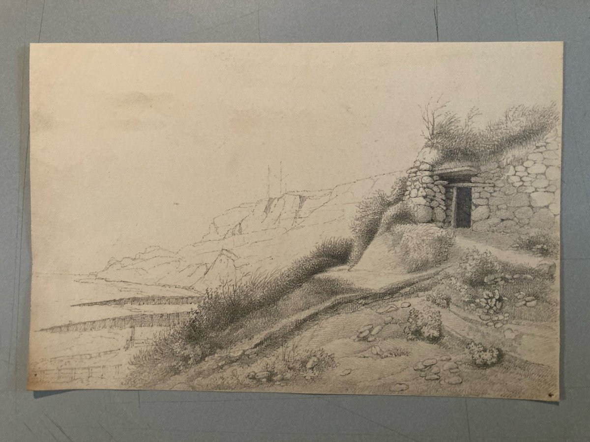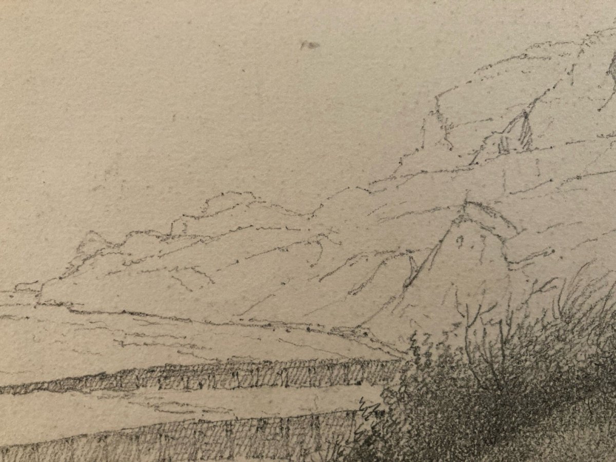 Drawing Dessin XIXe 1850 crayon Paysage Plage Bretagne Mer Ocean Art Ancien Old