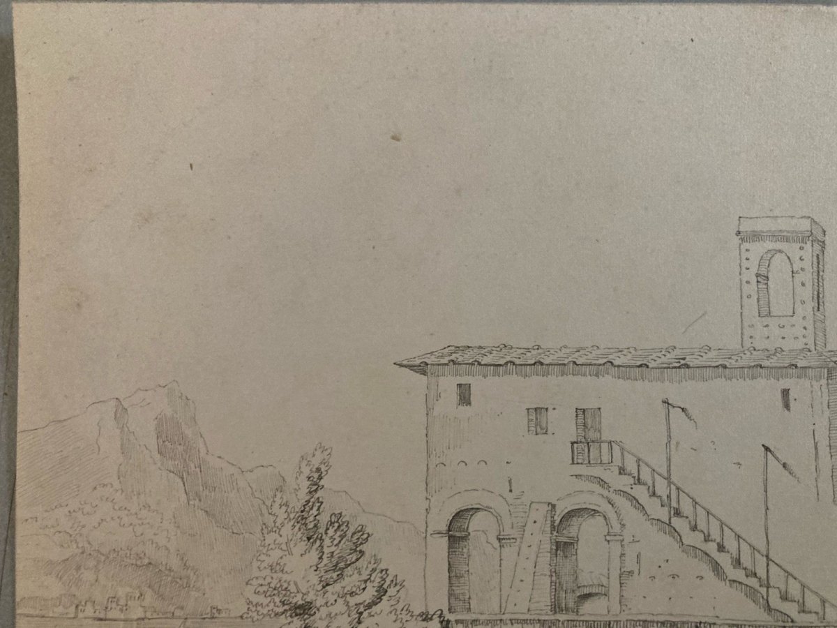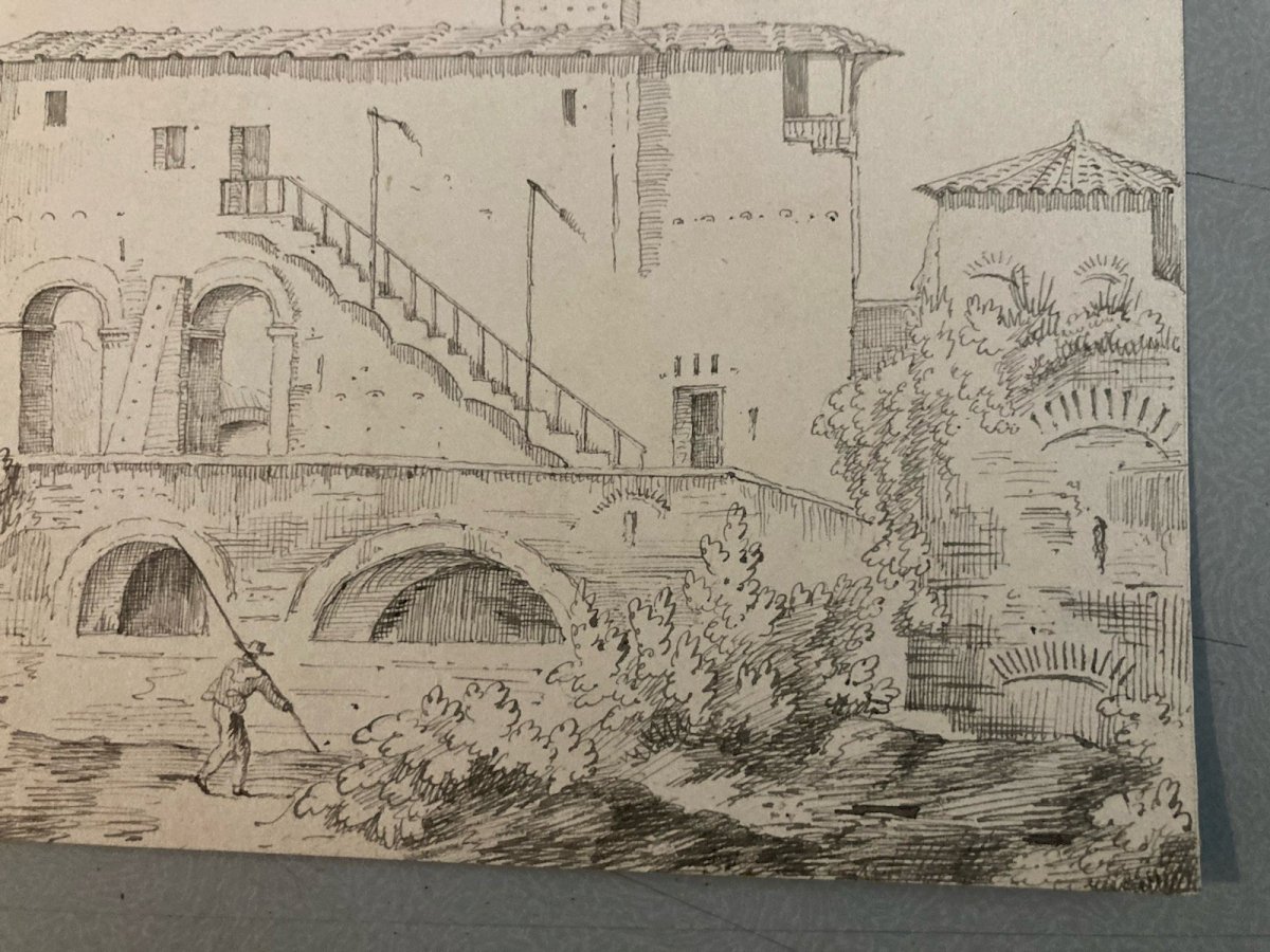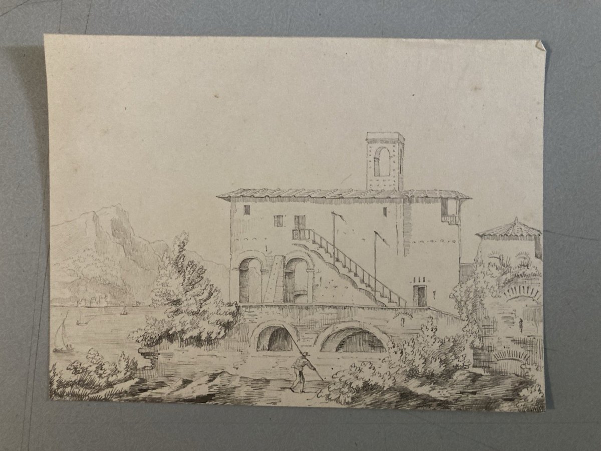 Drawing Dessin XIXe 1850 Encre A Identifier Paysage Lac De Come ? Italie Ancien