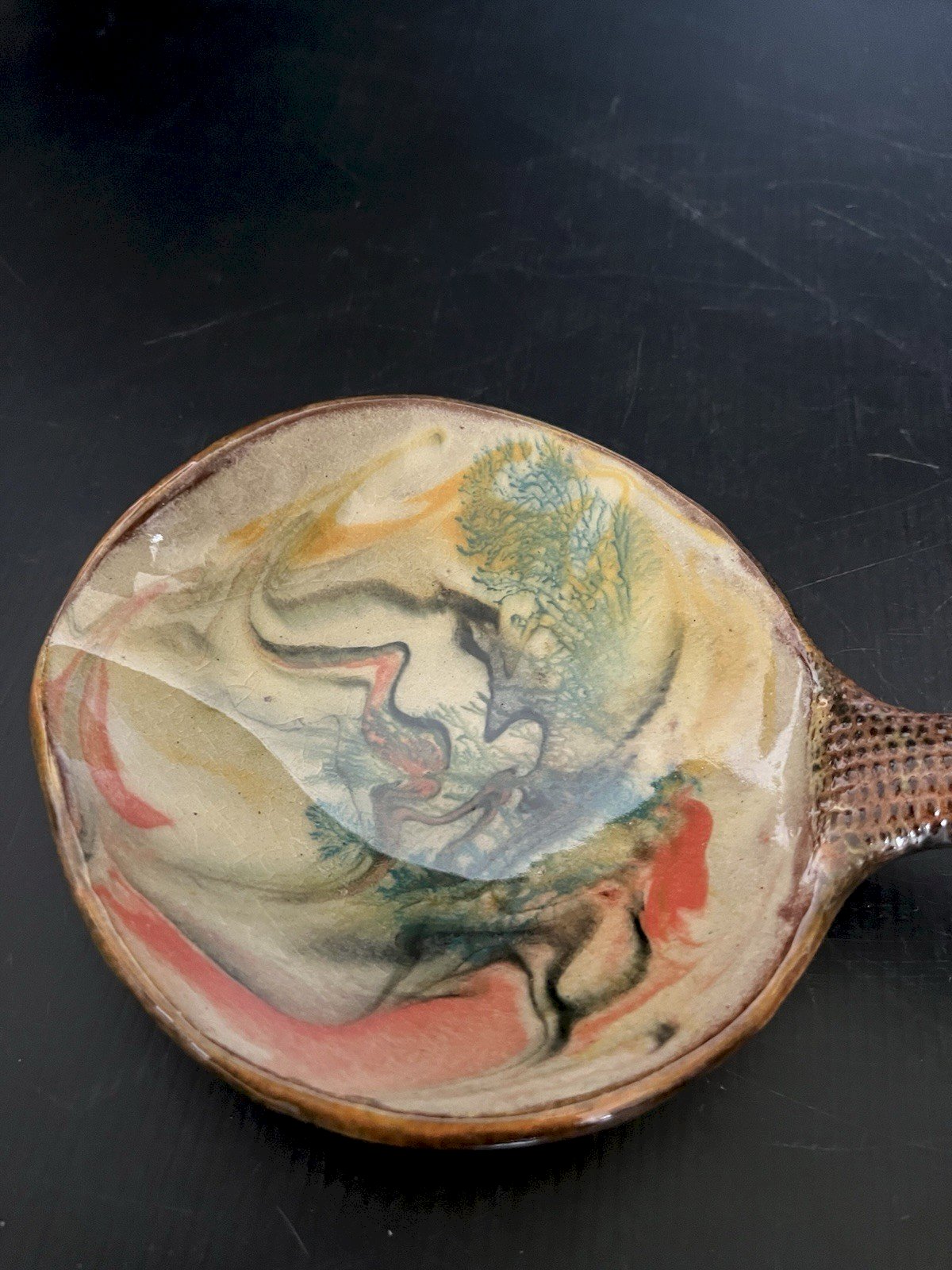 ecuelle vide poche terre cuite vernissée signé P du Cabirou Aude Languedoc