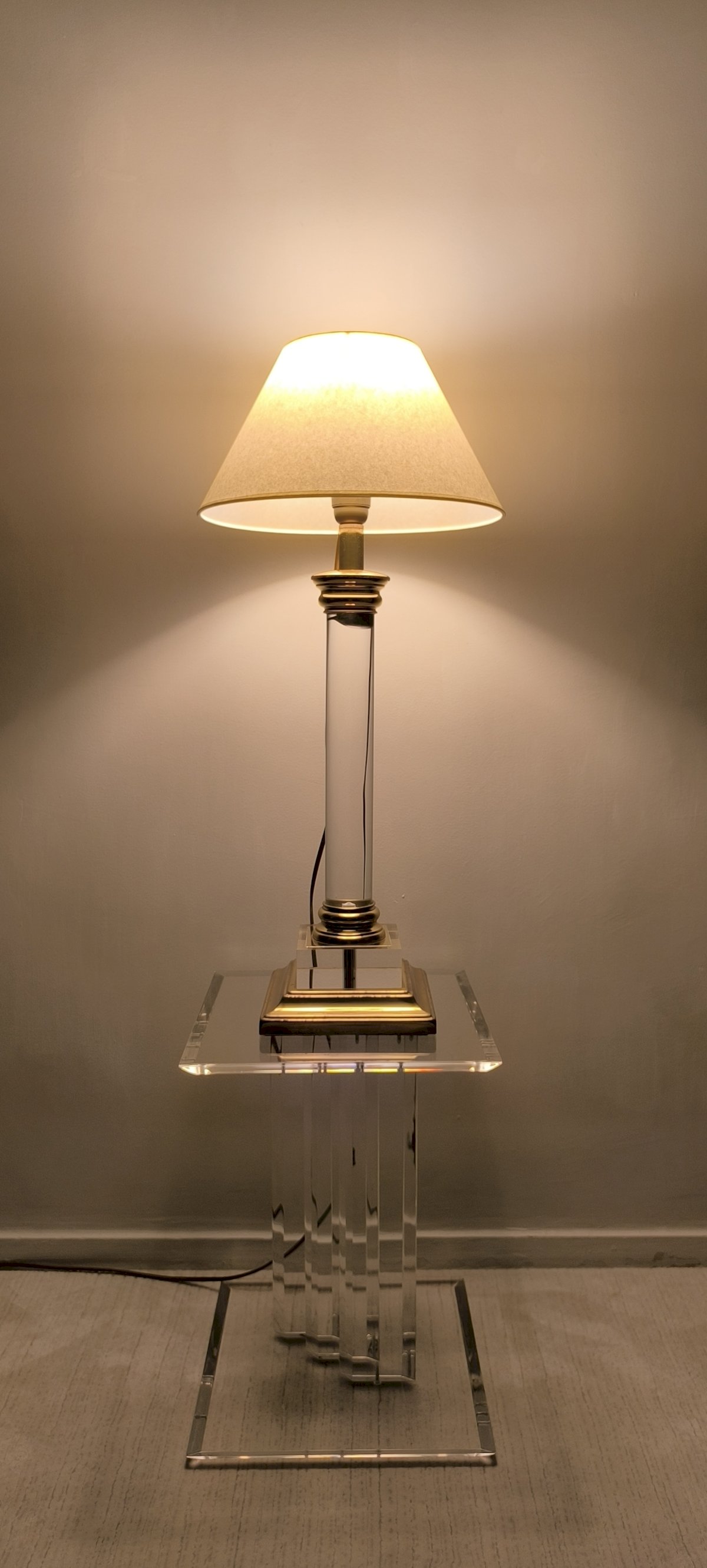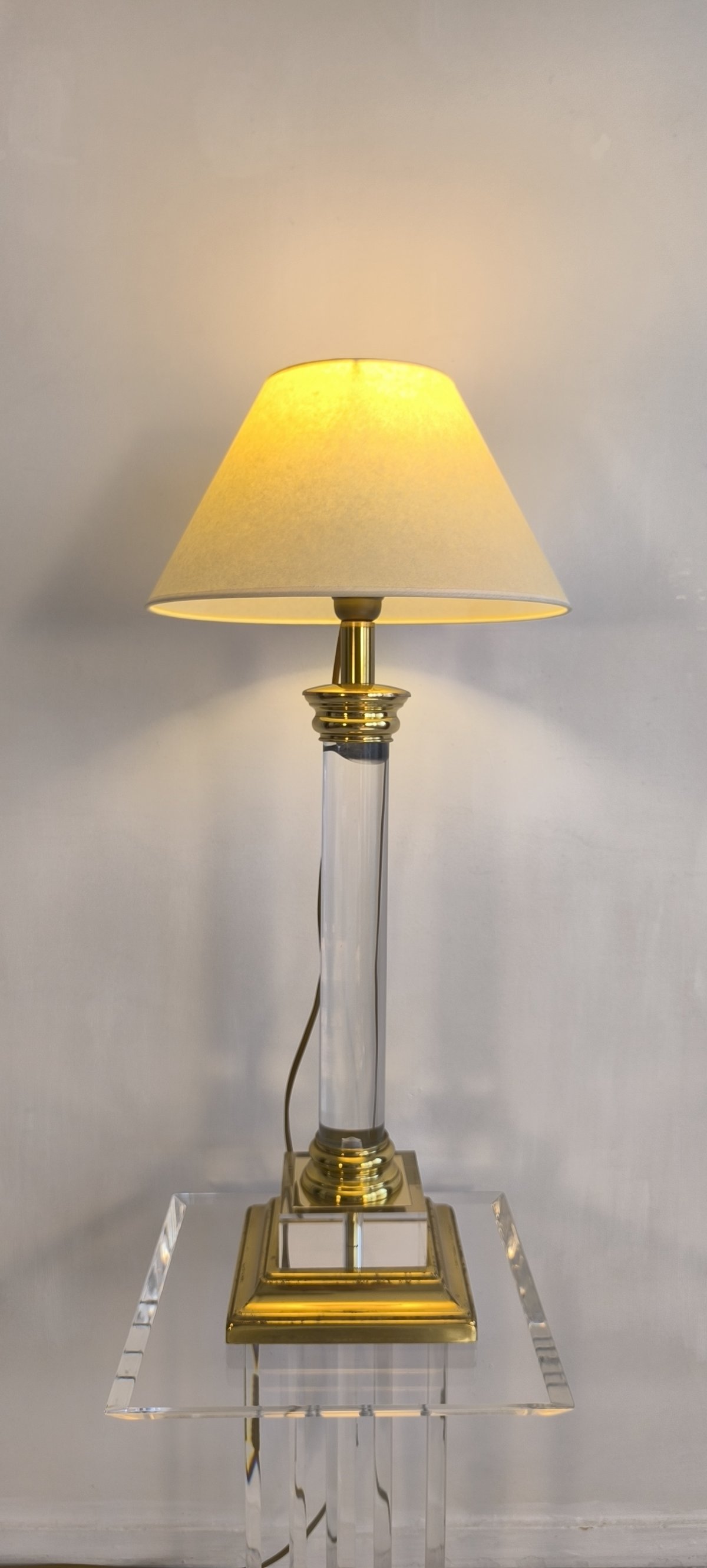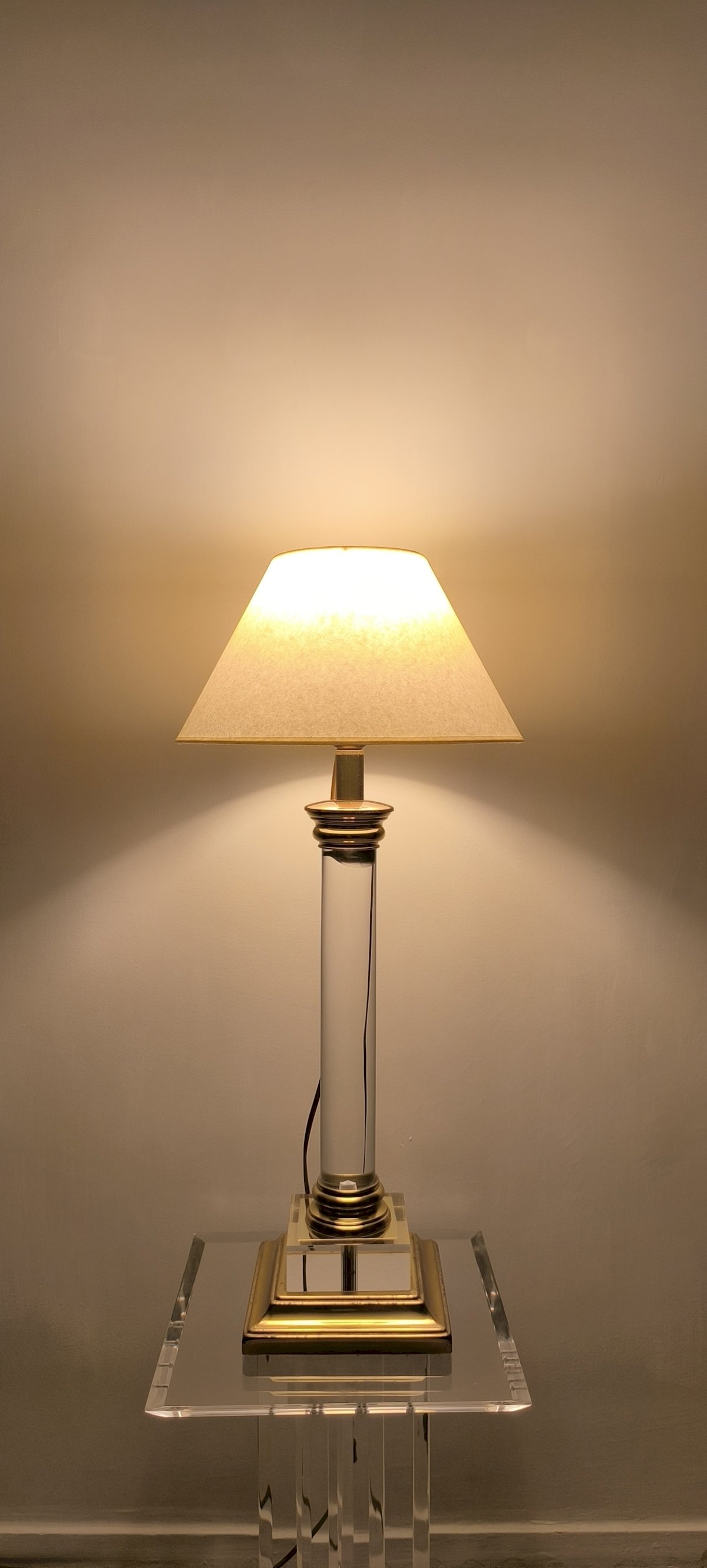 Sa silhouette élancée et le mélange des matériaux (laiton et transparence) lui permettent de s'intégrer aussi bien dans un salon classique, un bureau, une chambre que dans un intérieur plus contemporain ou "Hollywood Regency".
