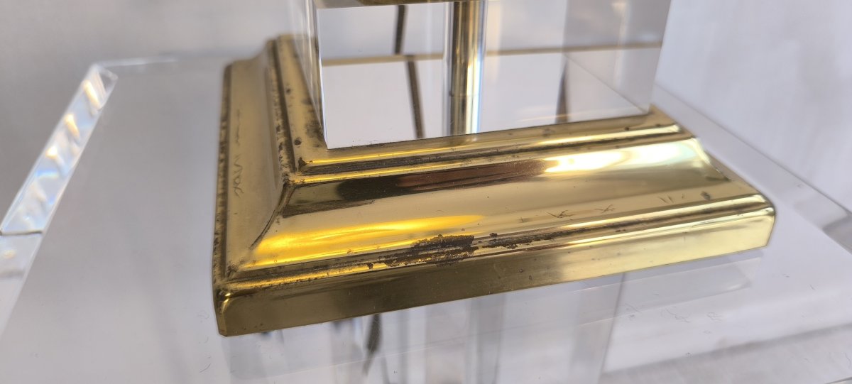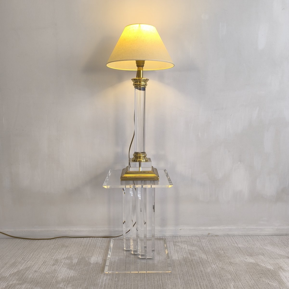 ?✨ Elégante lampe Colonne signée ‘’Le Dauphin’’ vintage 70/80 en altuglas et laiton abat-jour neuf ✨?