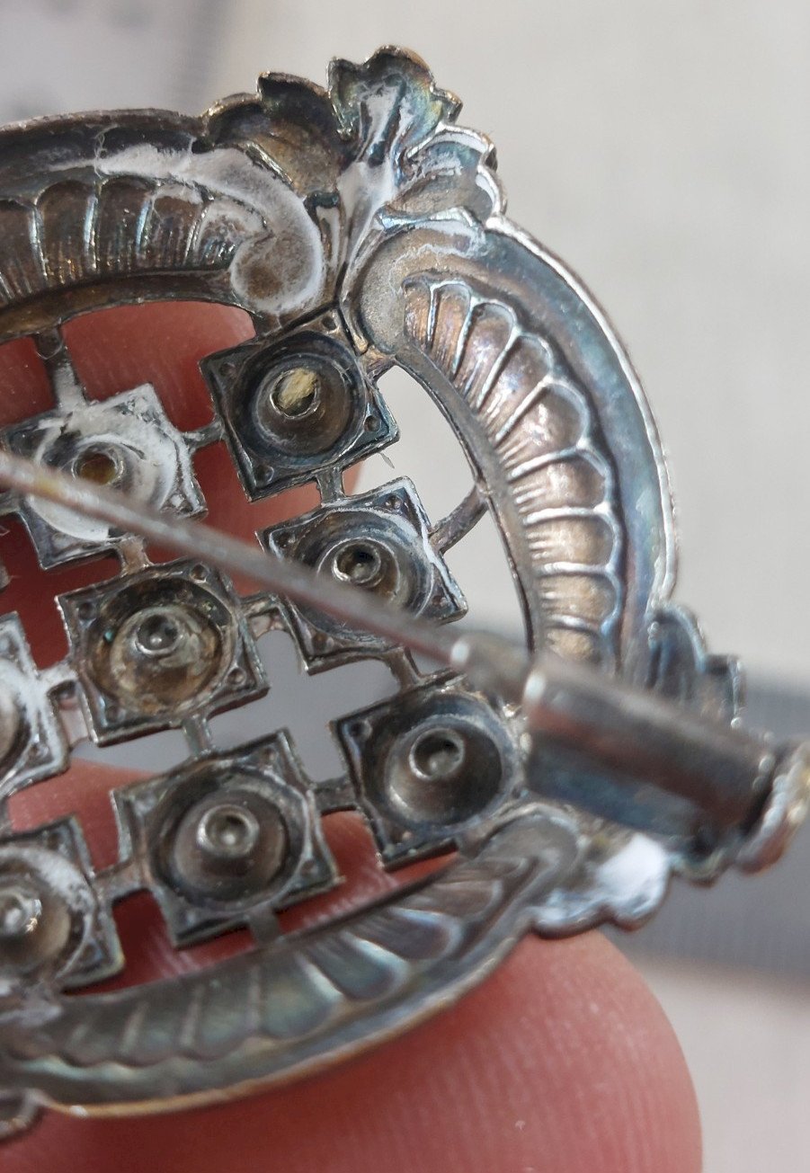 État:OccasionObjet ayant été porté. les éventuelles imperfections. Type:Broche Couleur dominante:Argenté