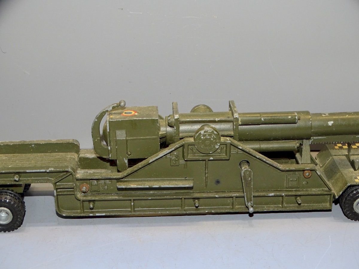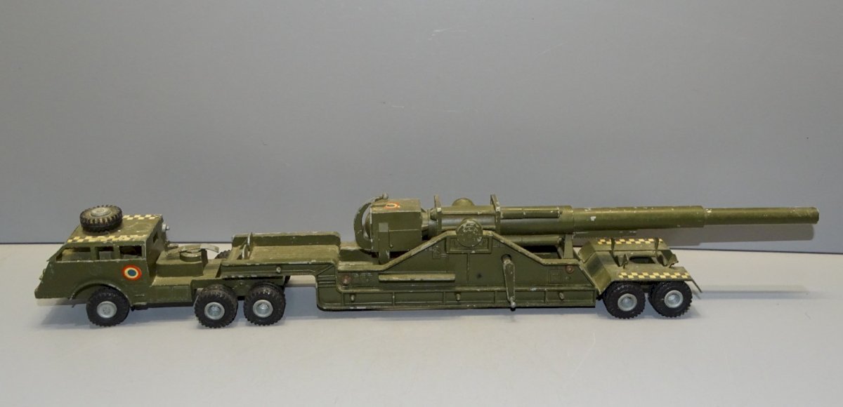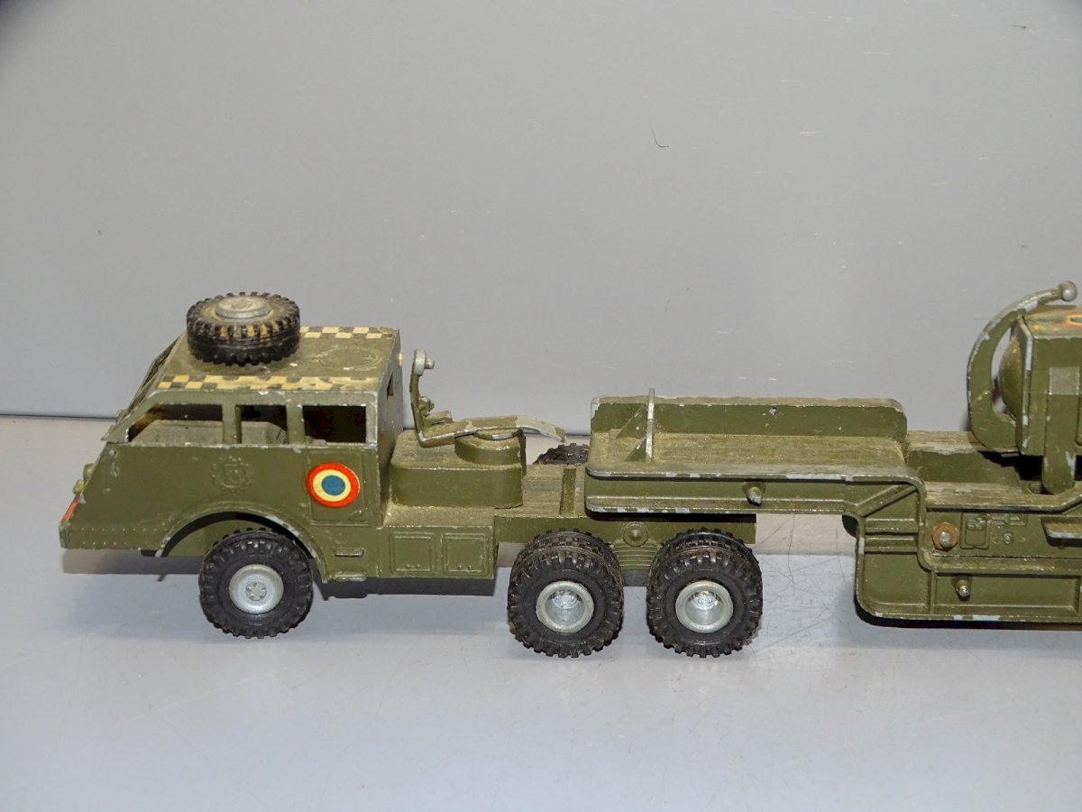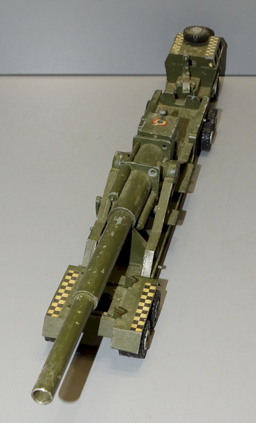 Old truck + trailer with Canon brand MP made in France - with paint wear - the zamac gears are worn and the cannon struggles to lift (see photos) - in playable condition, attic dust - Ref.: 1V240718/391 - Total Length 43.9 cm - Height 7.4 cm - Width 5.4 cm - Weight 796 g SHIPPING POSSIBLE VIA MONDIAL RELAY or COLISSIMO upon request VERY GOOD PACKAGING GUARANTEED THANK YOU for CAREFULLY LOOKING AT ALL the PHOTOS as THEY ARE AN INTEGRAL PART of the DESCRIPTION and ALLOW you to SEE the ITEM in the BEST LIGHT with ITS POSSIBLE SMALL DEFECTS - Condition: Used: Item that has been used. Check the seller's description for more details... Used: Item that has been used. any imperfections. Vehicle type: Truck Brand: MP France