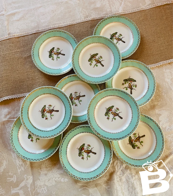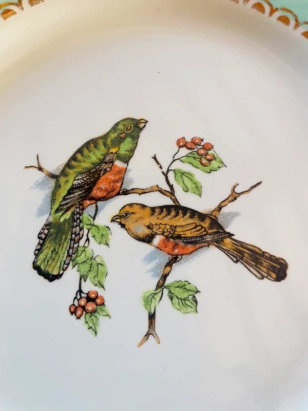 10 dessert plates "Les Oiseaux" ? Model from the Badonviller pottery, unmarked Very good condition (2 small repairable chips on two plates but not visible from the top or the side; Minor flaw) Diameter 18.5cm Fast and careful shipping ?✨?
