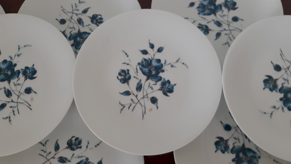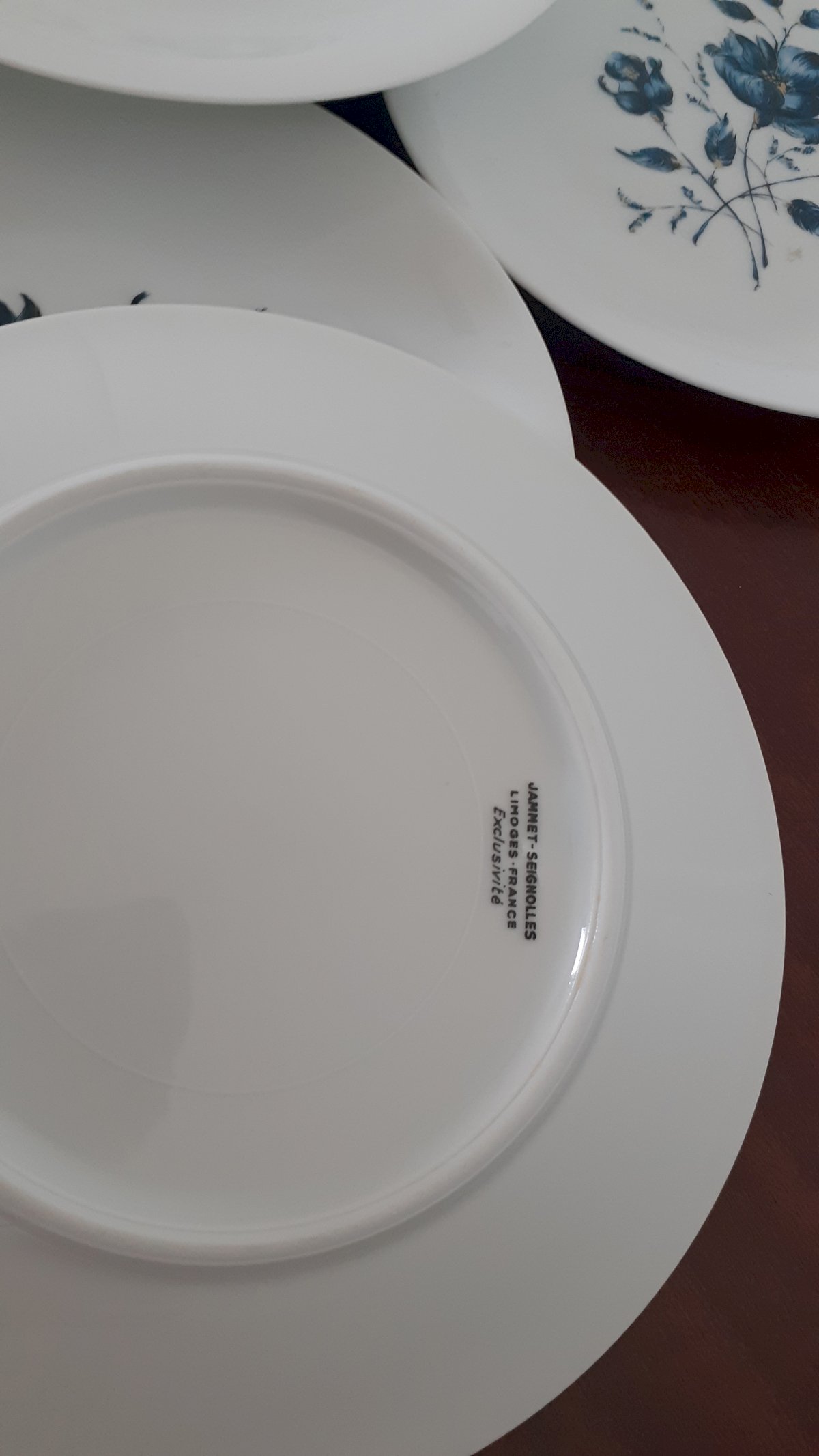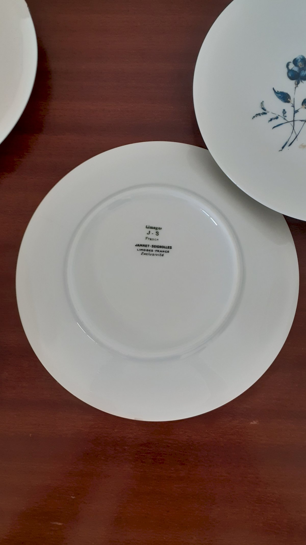 10 beautiful Limoges porcelain plates in blue and gold, stamped Jammet Seignolles in excellent condition.